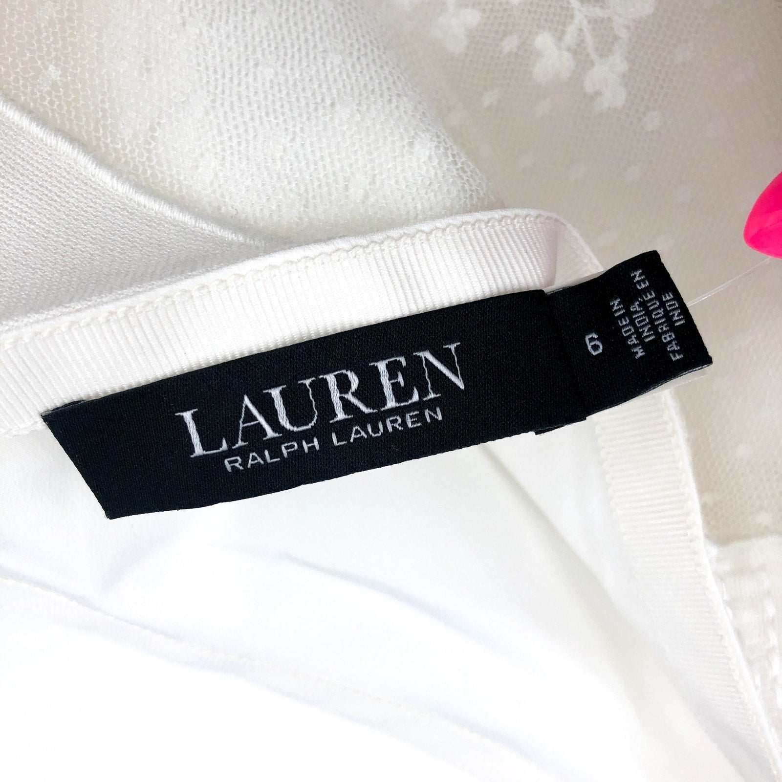 LAUREN RALPH LAUREN Women's Mesh Lace Midi Flared Skirt Size 6 White