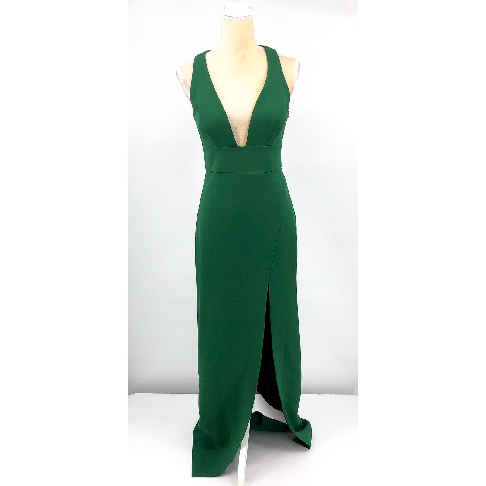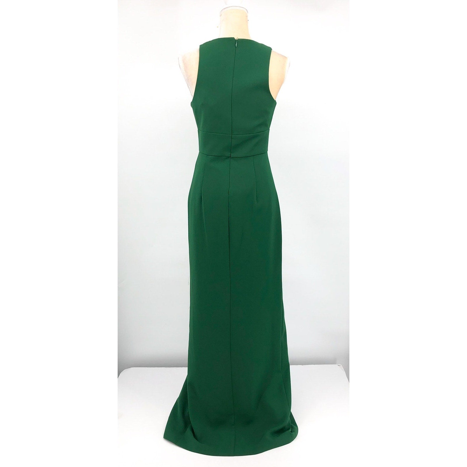LIV FOSTER Women's Column Gown Size 4 Basil Green Plunging V Neck NWT