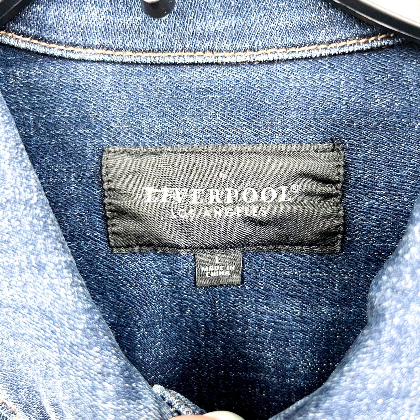 LIVERPOOL Women's Classic Jean Jacket Large Blue Glenrock Stretch Denim NWT