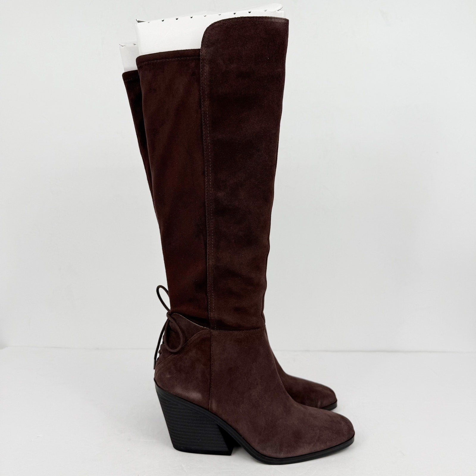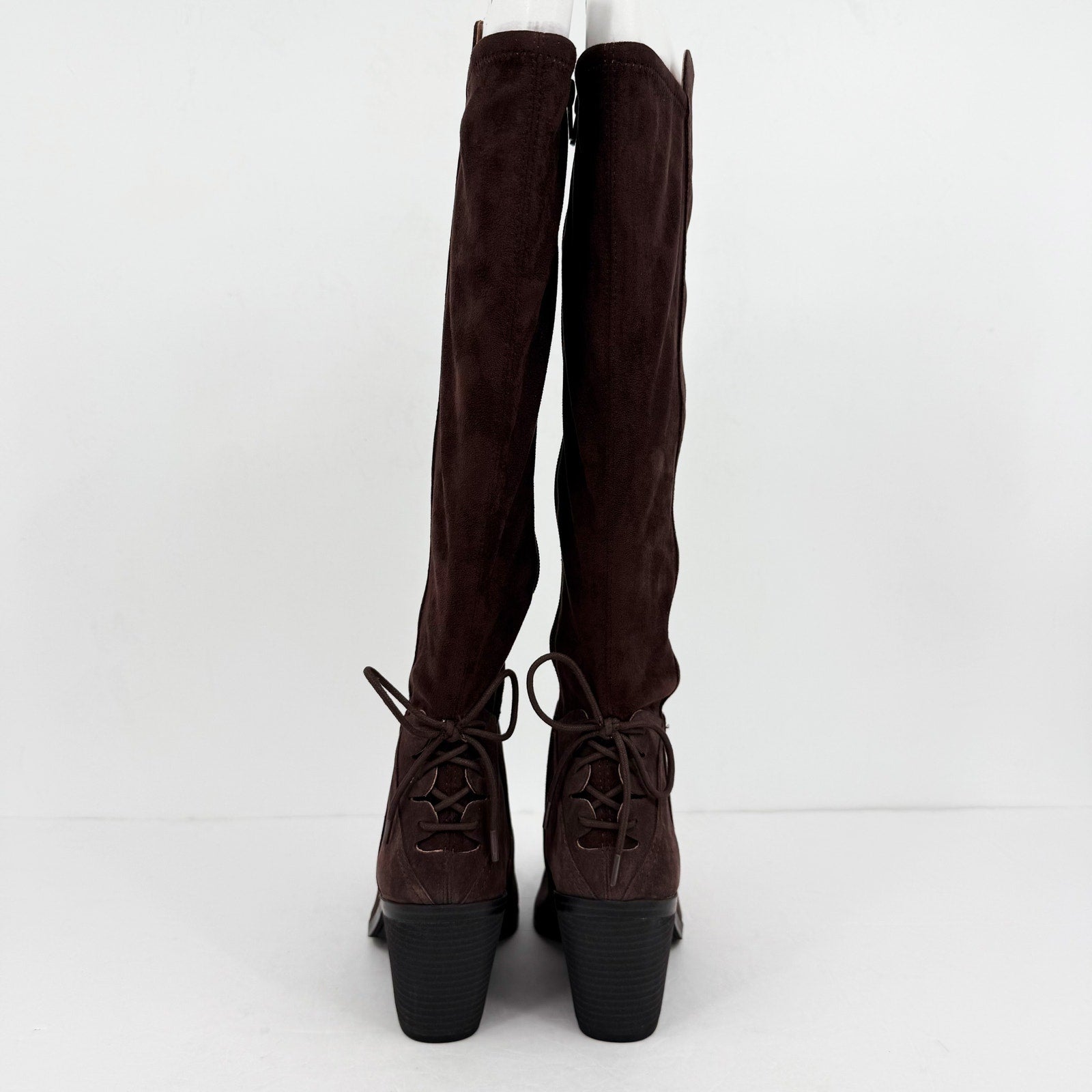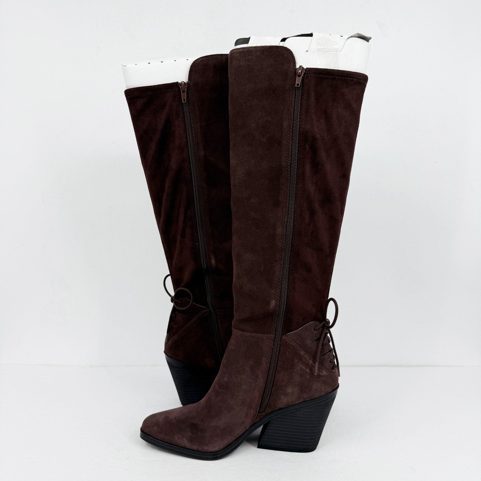 Lucky Brand Womens Mekinna Heeled Knee High Boots US 8.5 Dark Brown Suede NIB