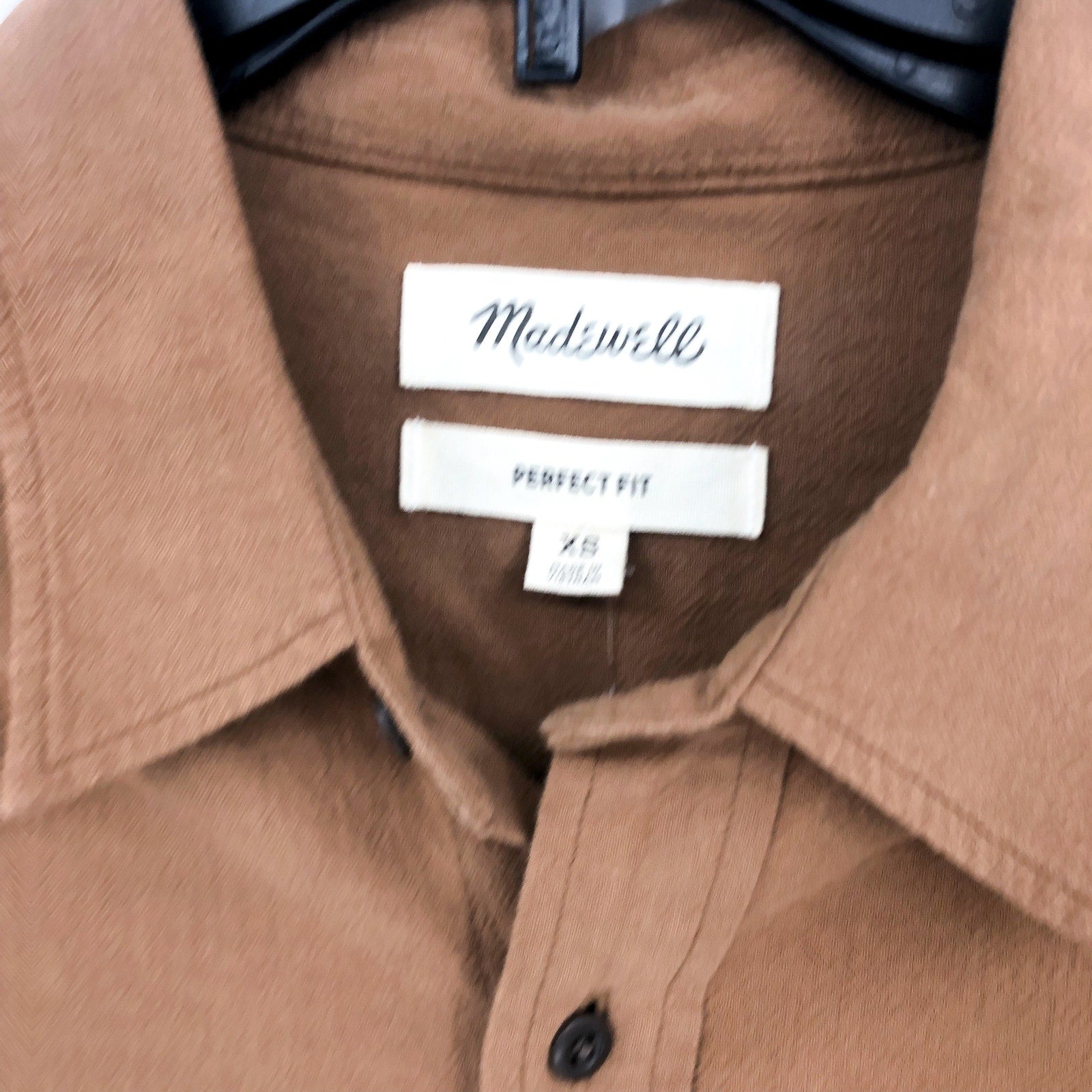 MADEWELL Men's Crinkle Cotton Perfect Fit Shirt XS Brown Short-Sleeve NJ719 NWT