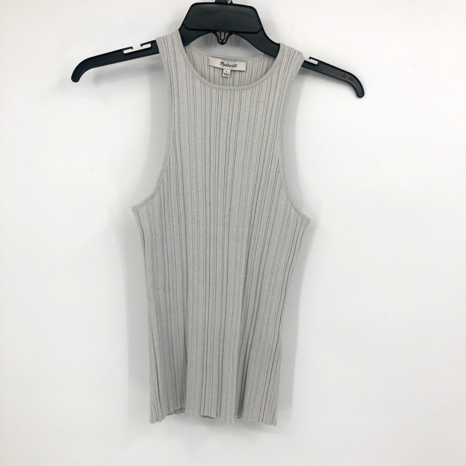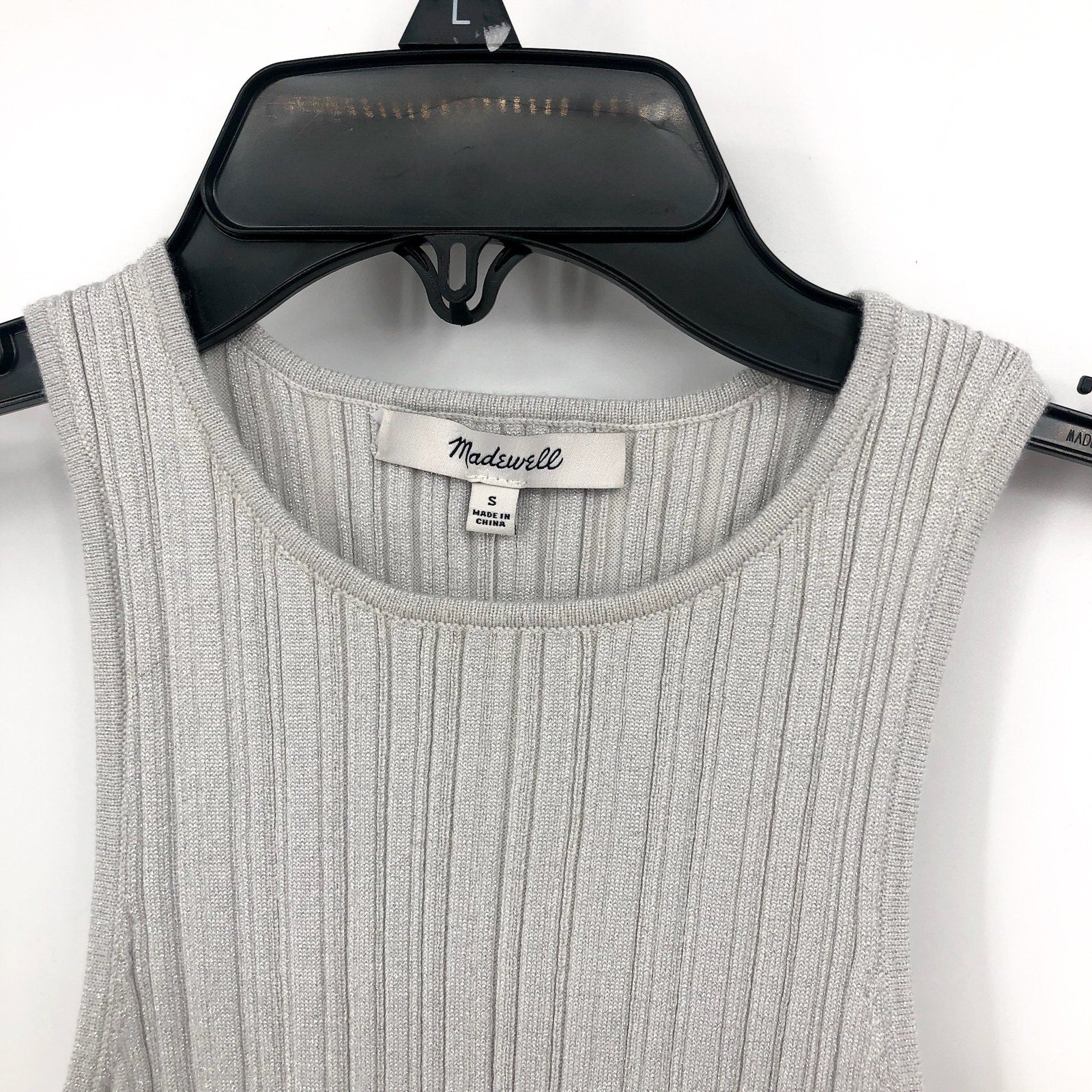 MADEWELL Signature Shimmer Cutaway Sweater Tank Small Silver Vapor Knit NWT
