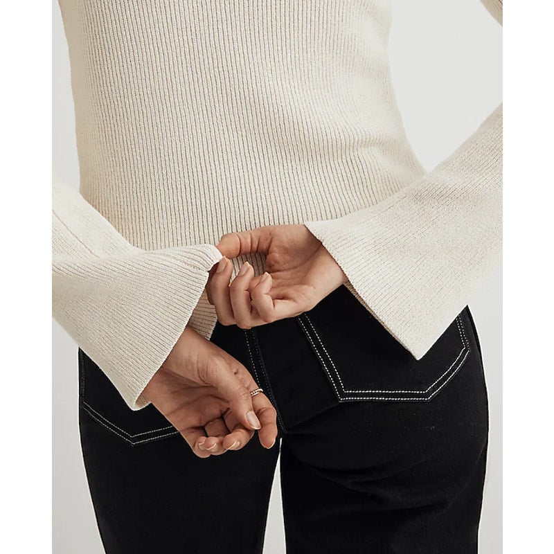 MADEWELL Womens Flared-Sleeve V-Neck Sweater Medium Antique Cream NO063 NWT