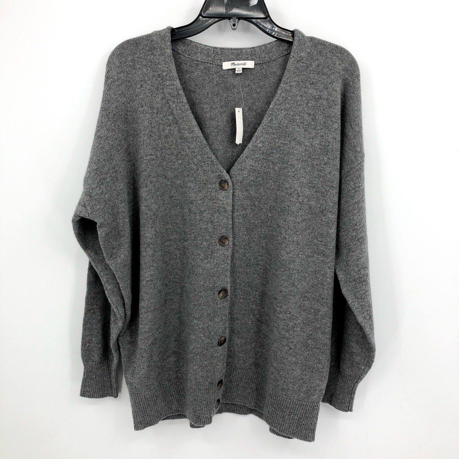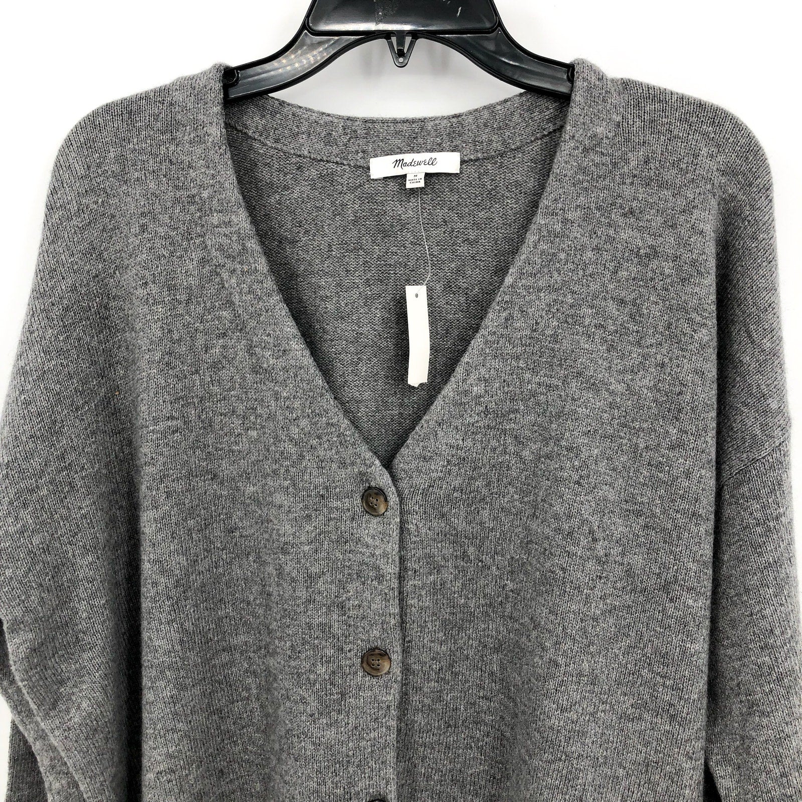 MADEWELL Women's V-Neck Relaxed Cardigan Medium Grey Merino Wool NM610 NWT