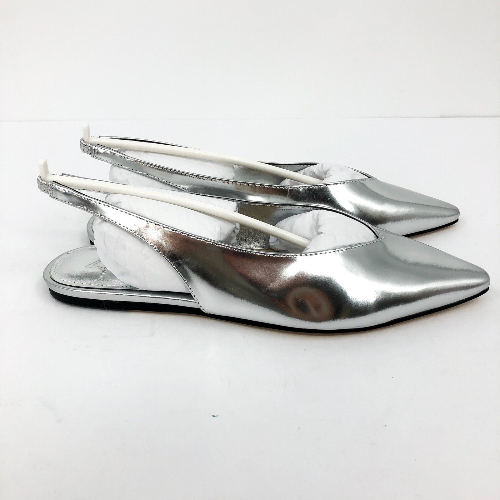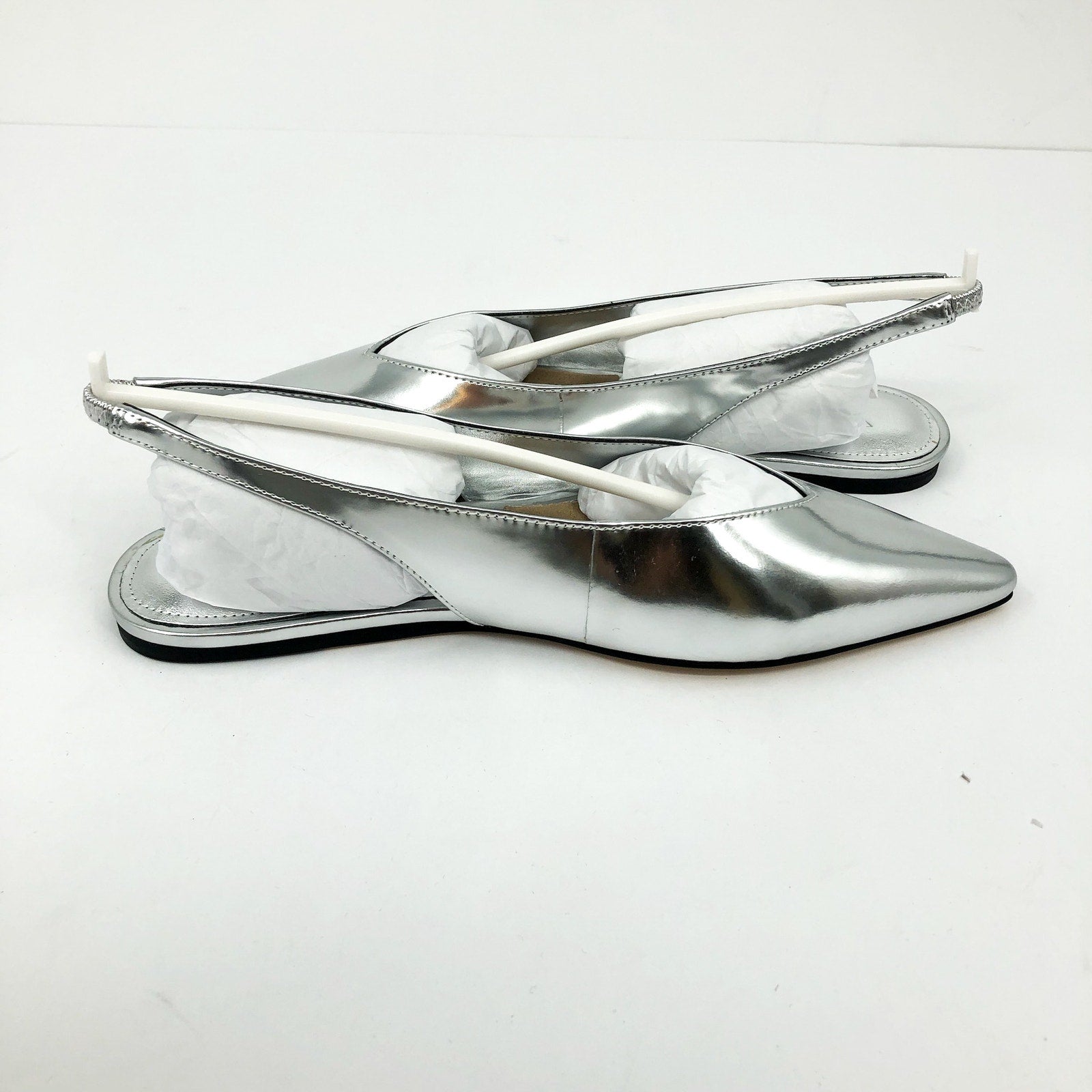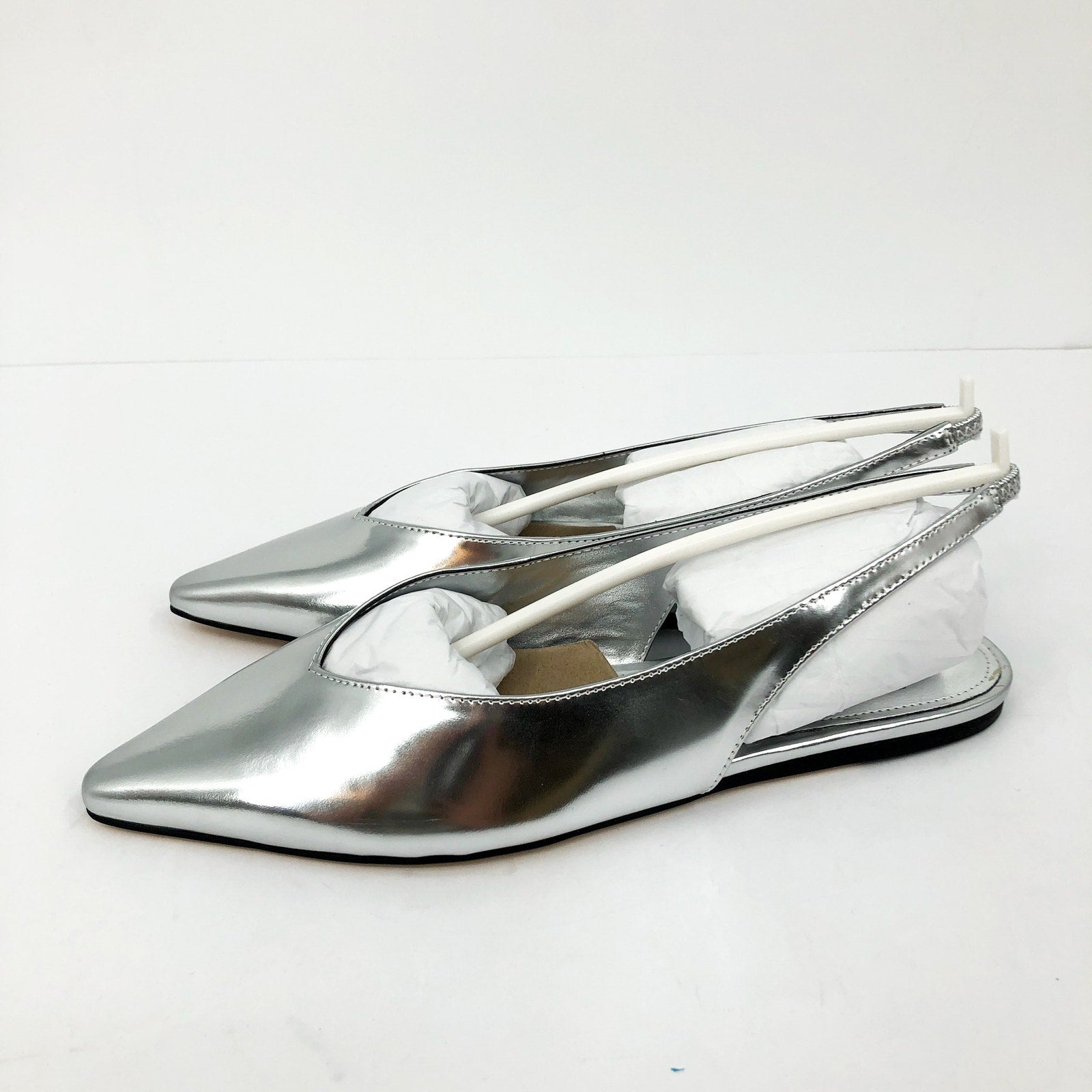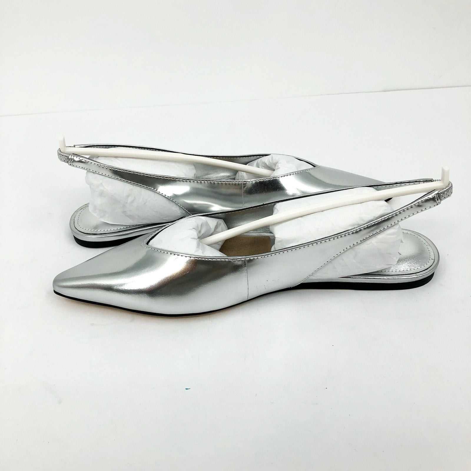 Marc Fisher Womens Graceful Slingback Flats US 7 M Silver Metallic Leather NWOB