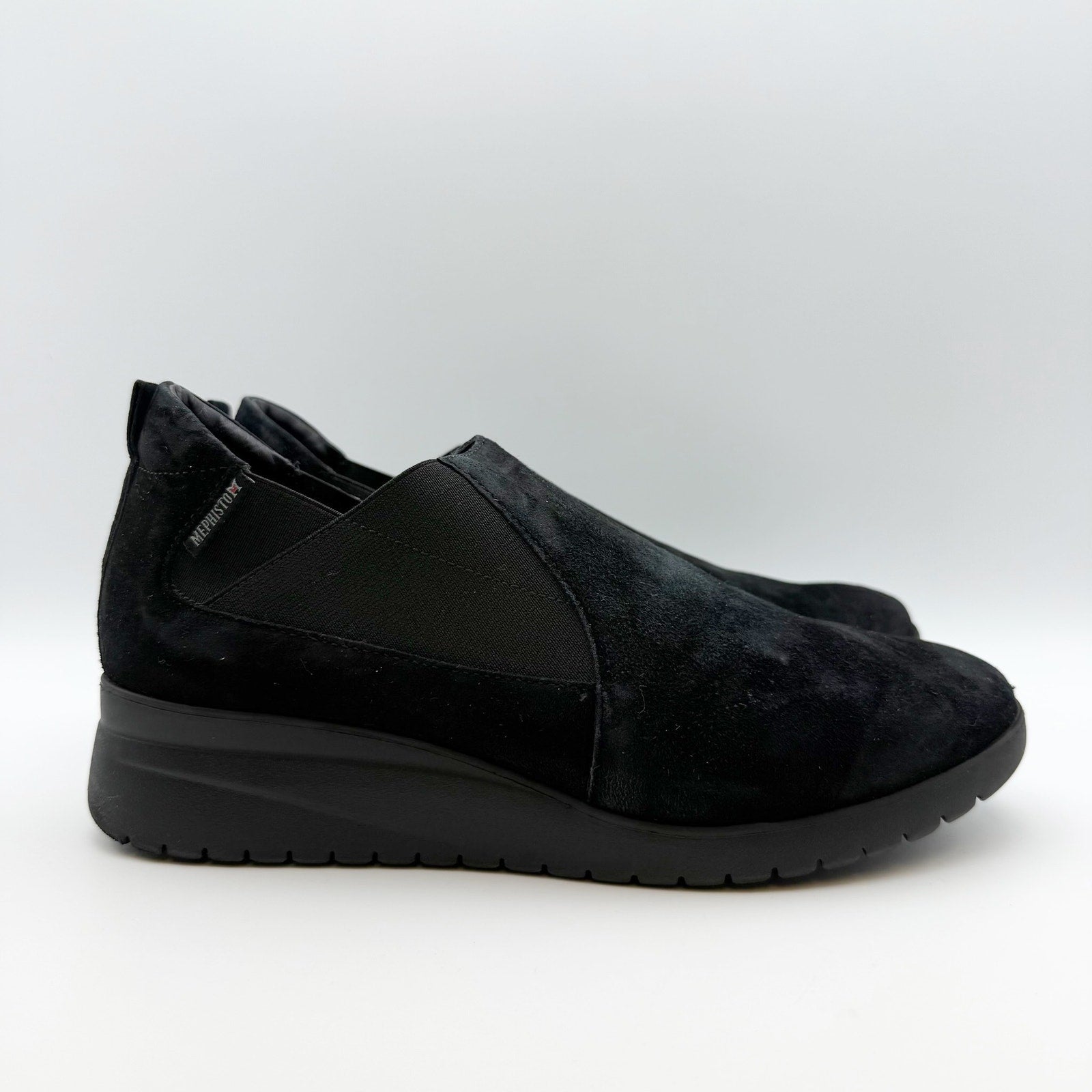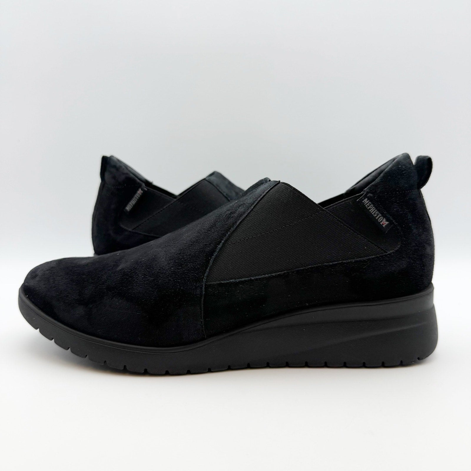 Mephisto Ibelina Women’s Wedge Slip-on Sneaker Size 8.5 Black Suede Leather NIB