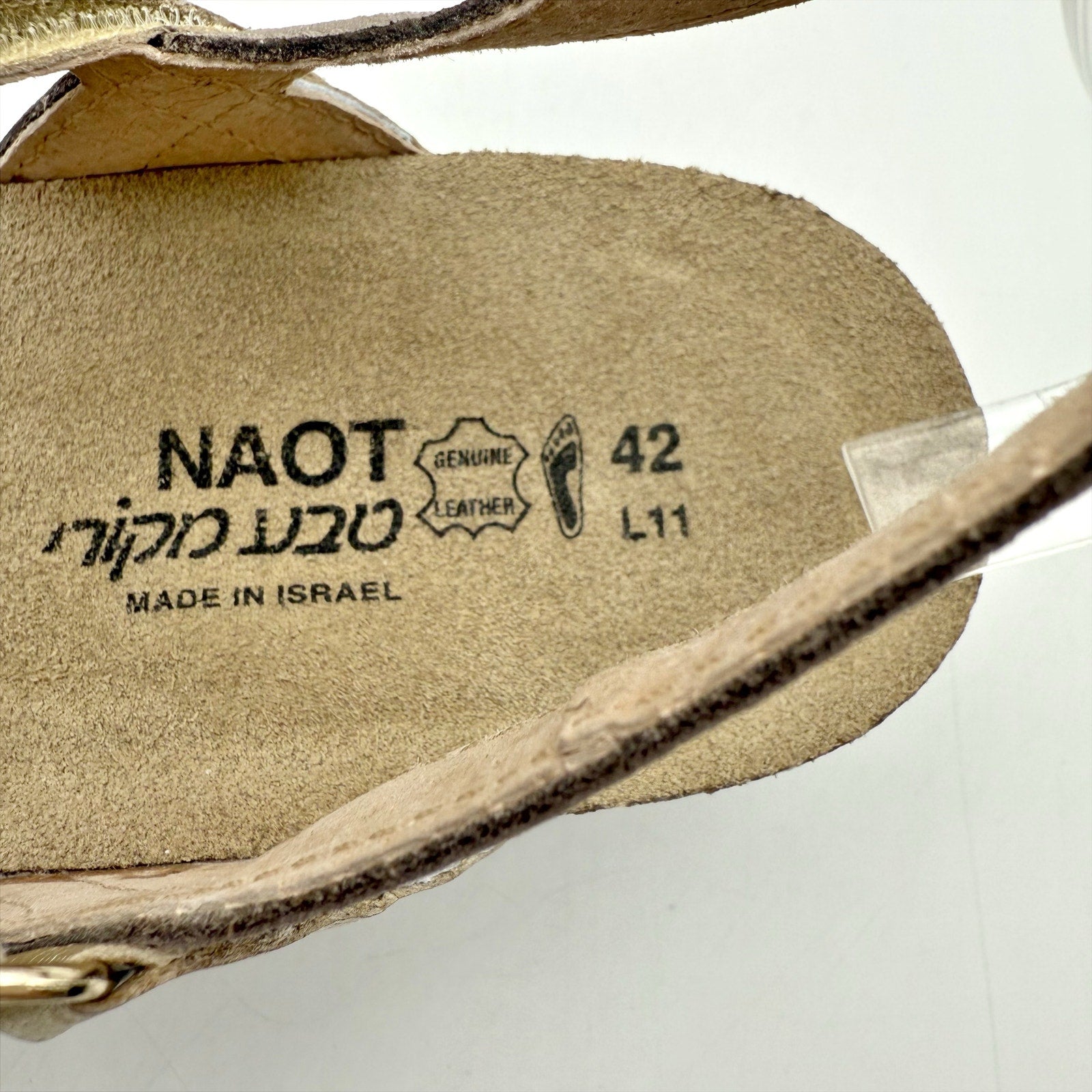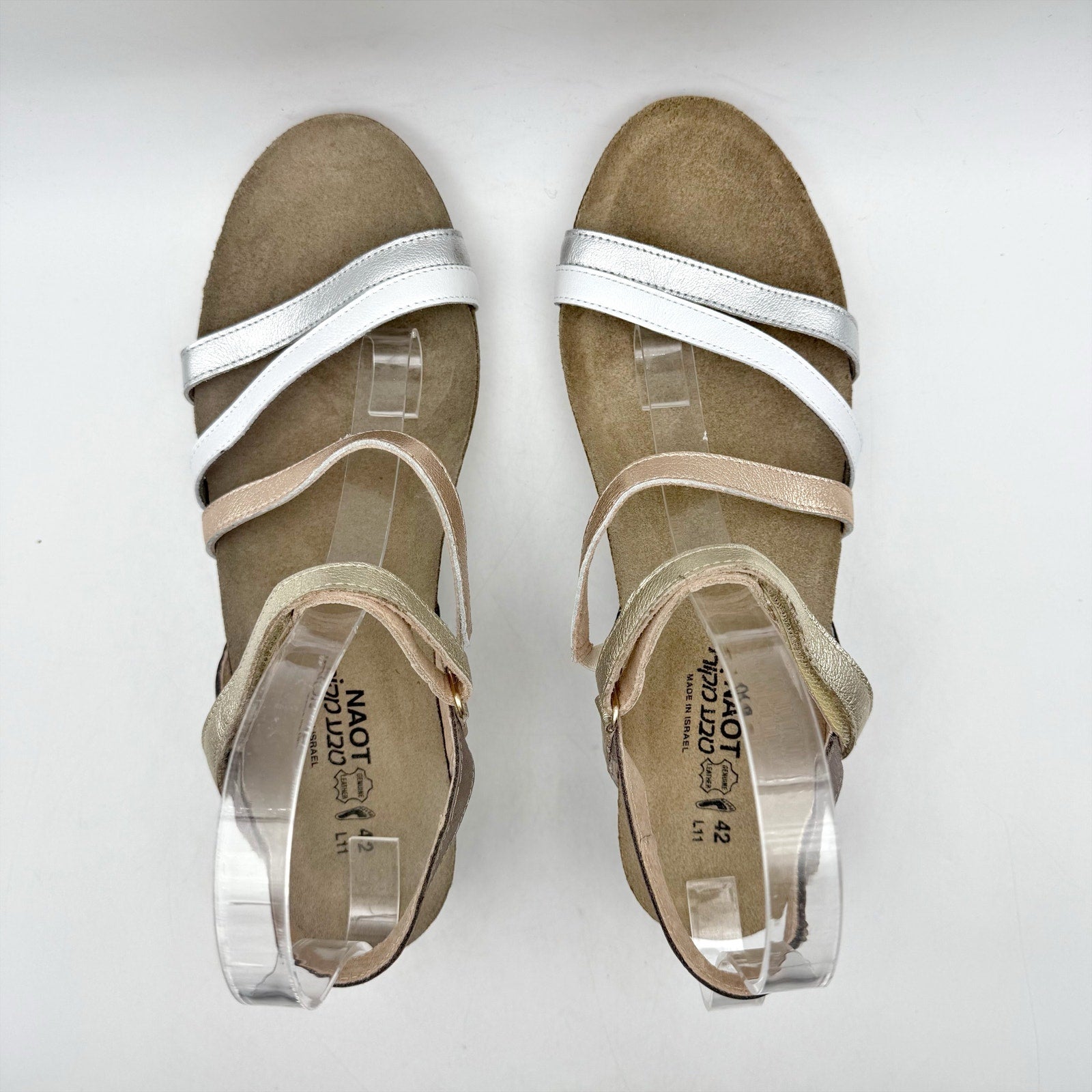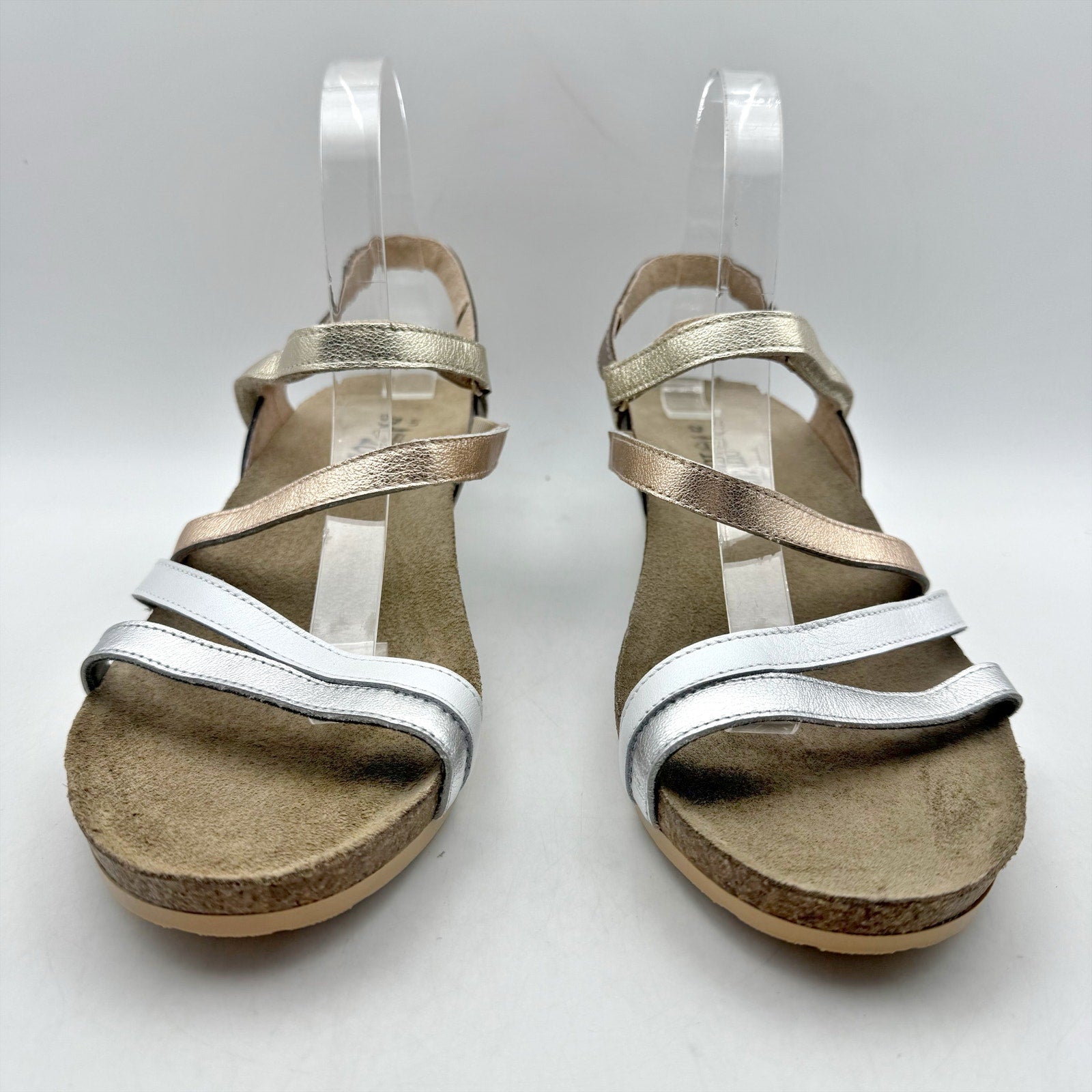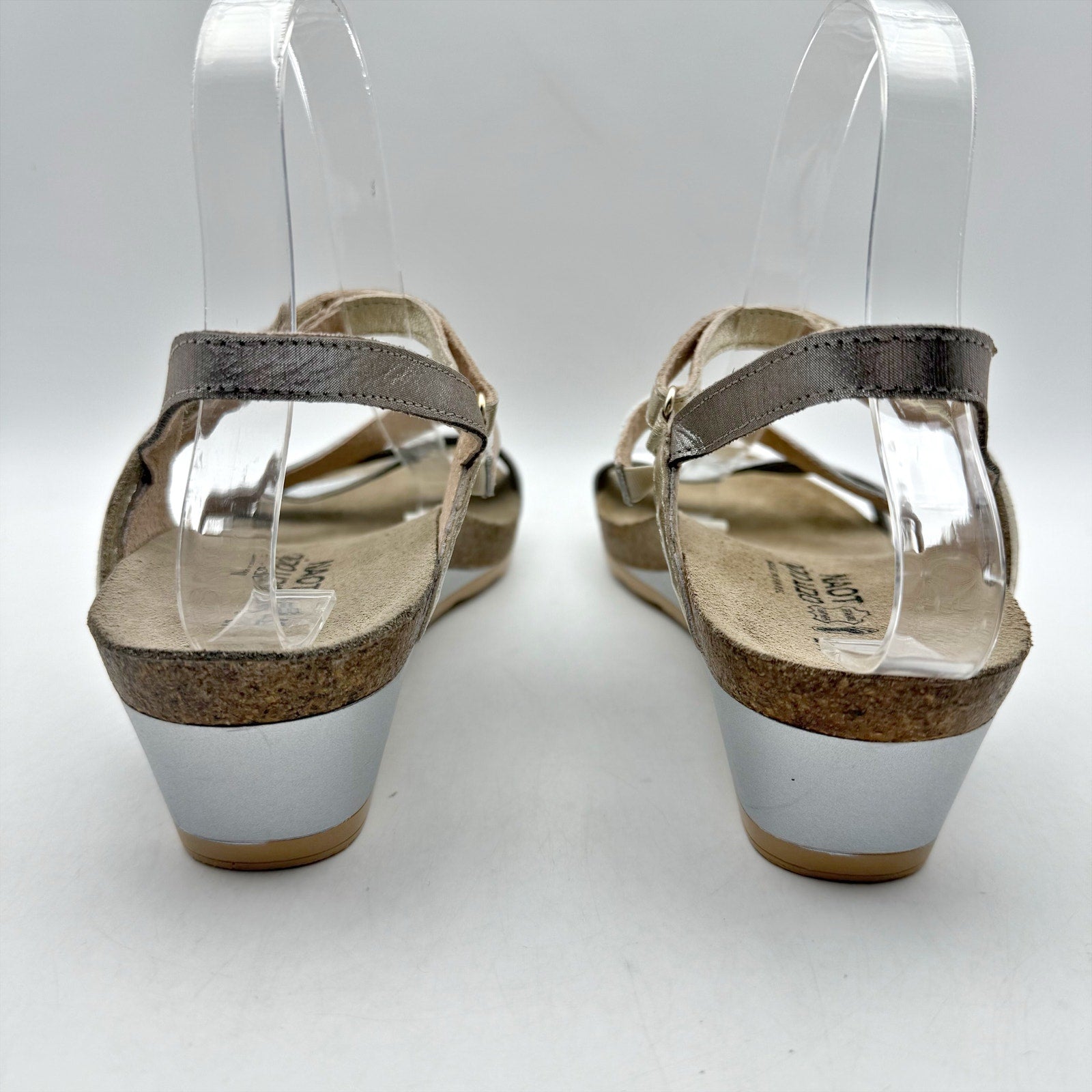 Naot Womens Hero Wedge Sandal US 11 EU 42 Silver Hook Loop Closure Leather NWOB