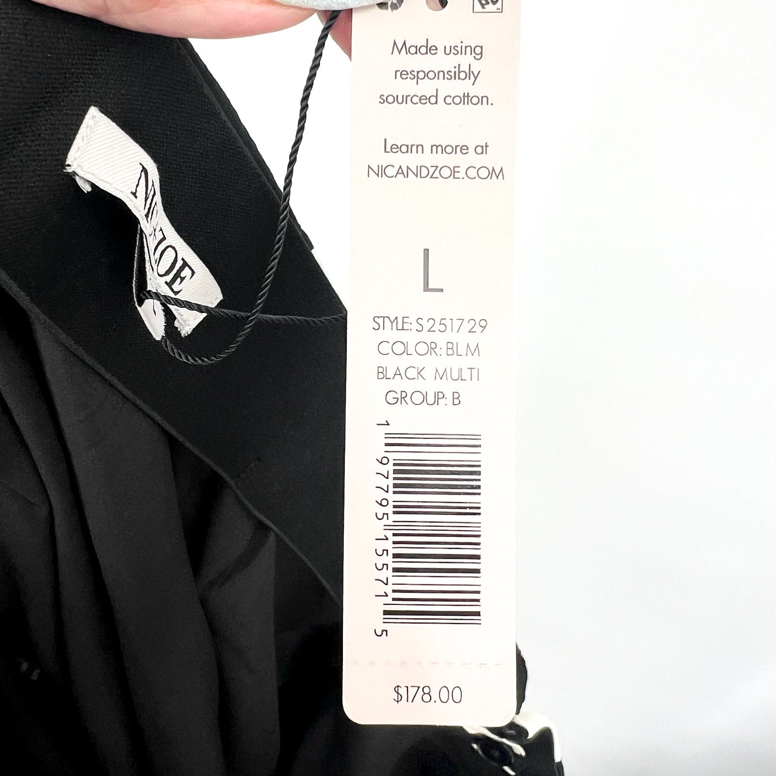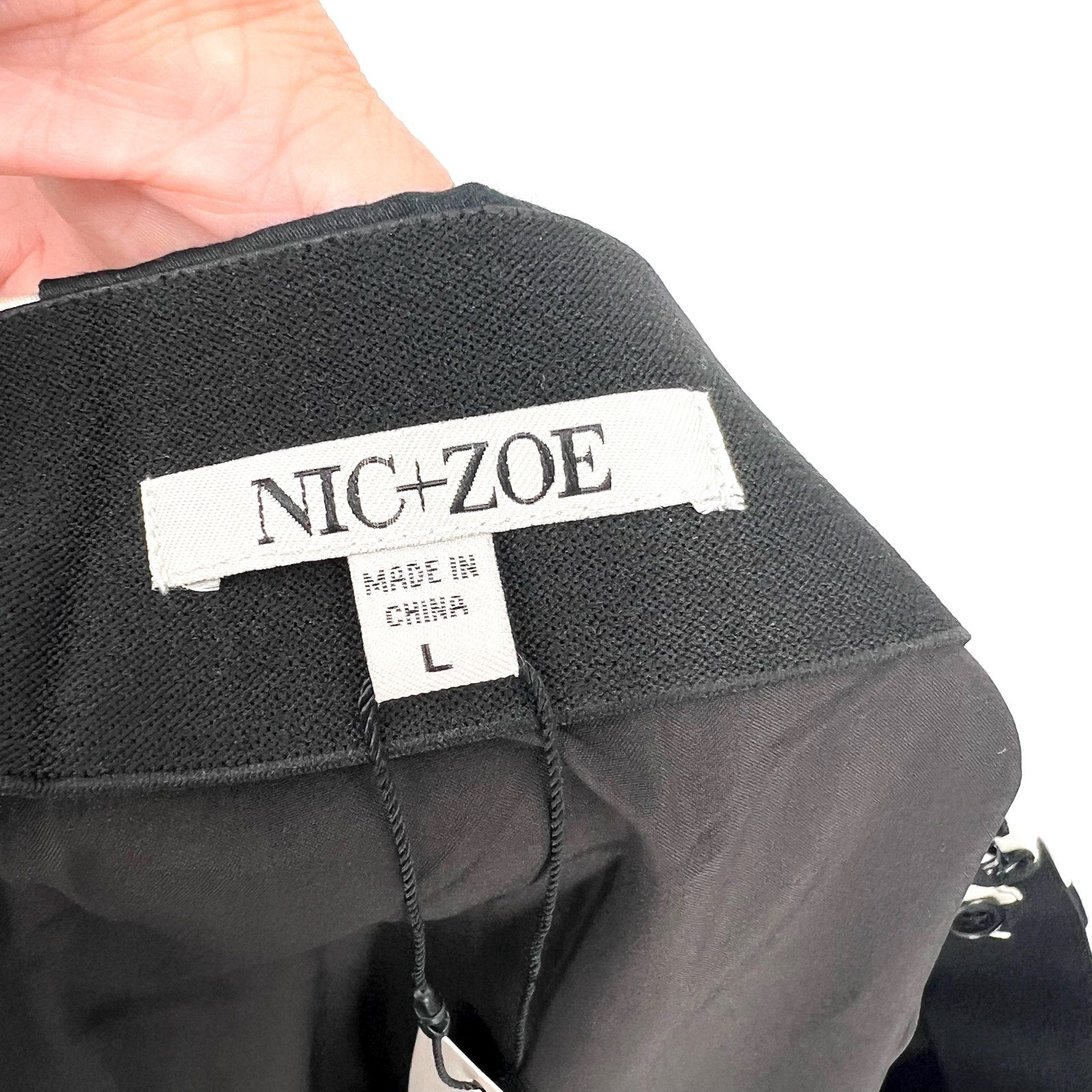 NIC + ZOE Evening Petal Bubble Midi Skirt Large Black White Floral Print NWT