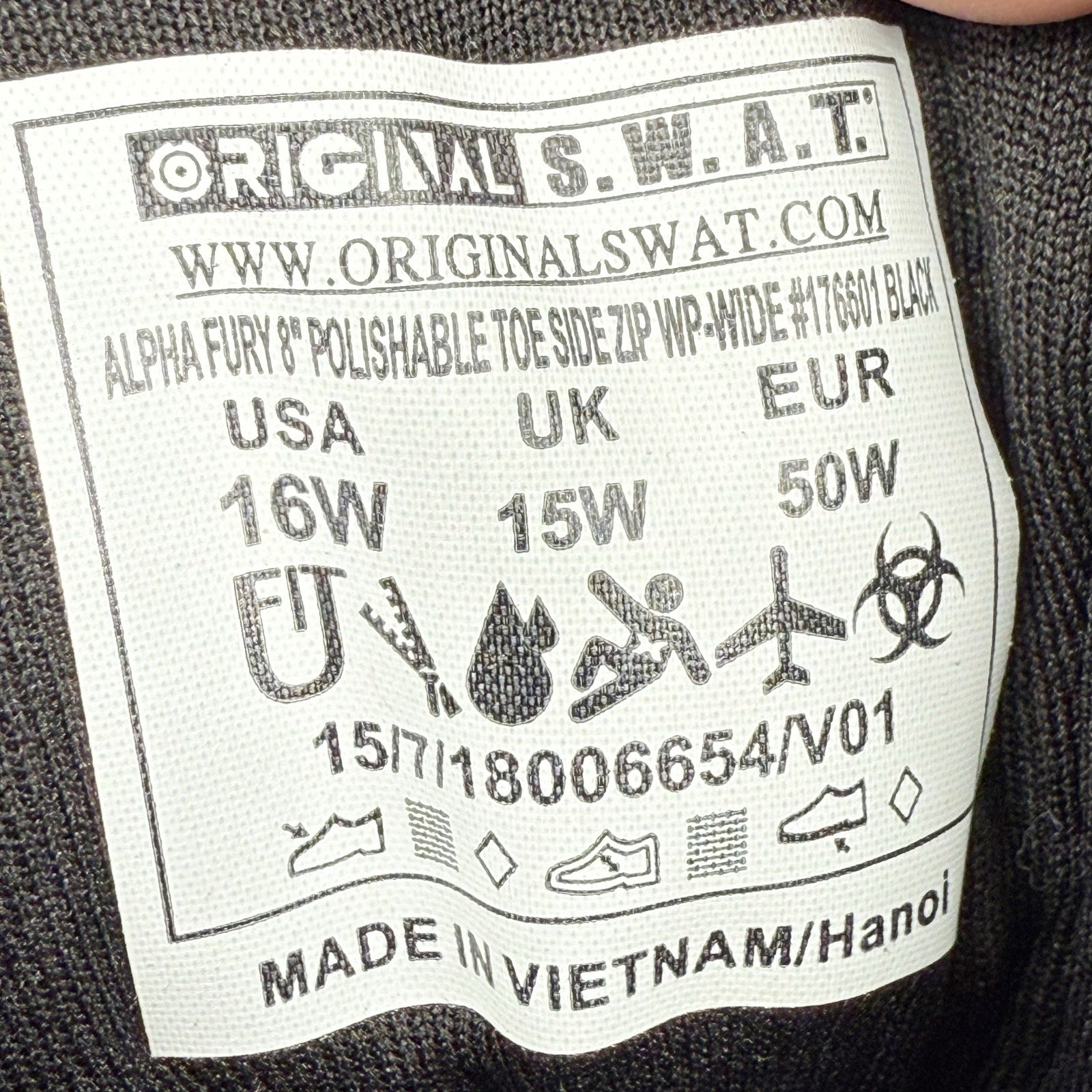 Original S.W.A.T. Men Alpha Fury 8" Boot US 16 Wide Black Waterproof Leather NIB