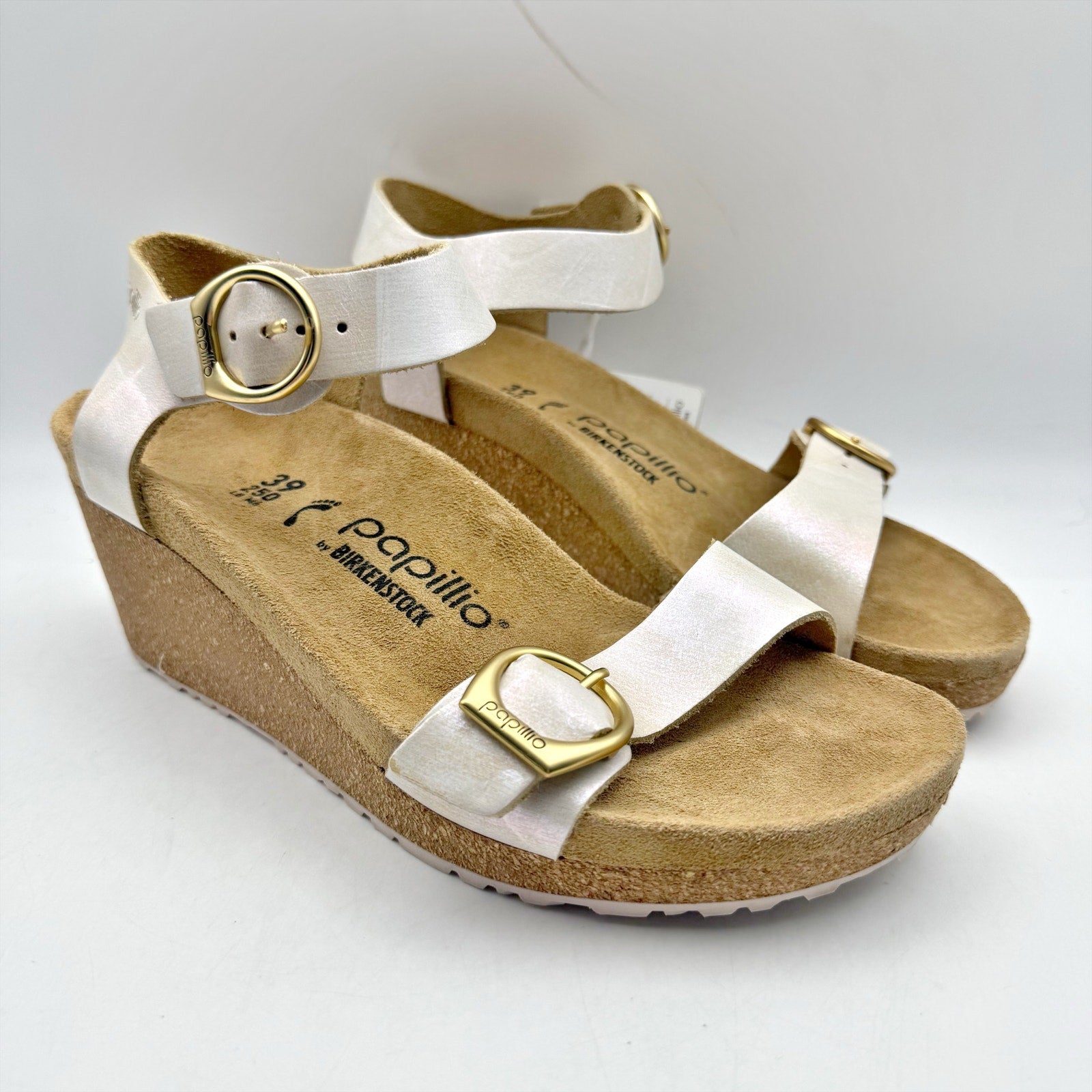 Papillio by Birkenstock Womens Soley Wedge Sandal EU 39 US 8 Silver Leather NWOB