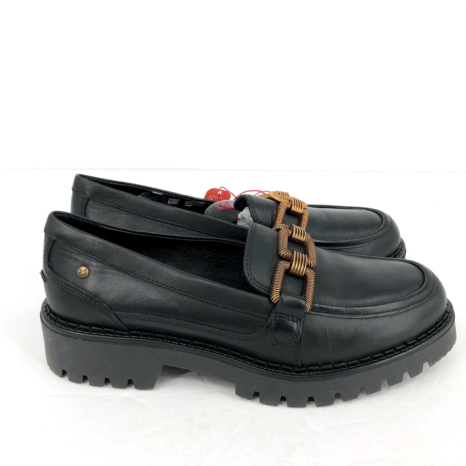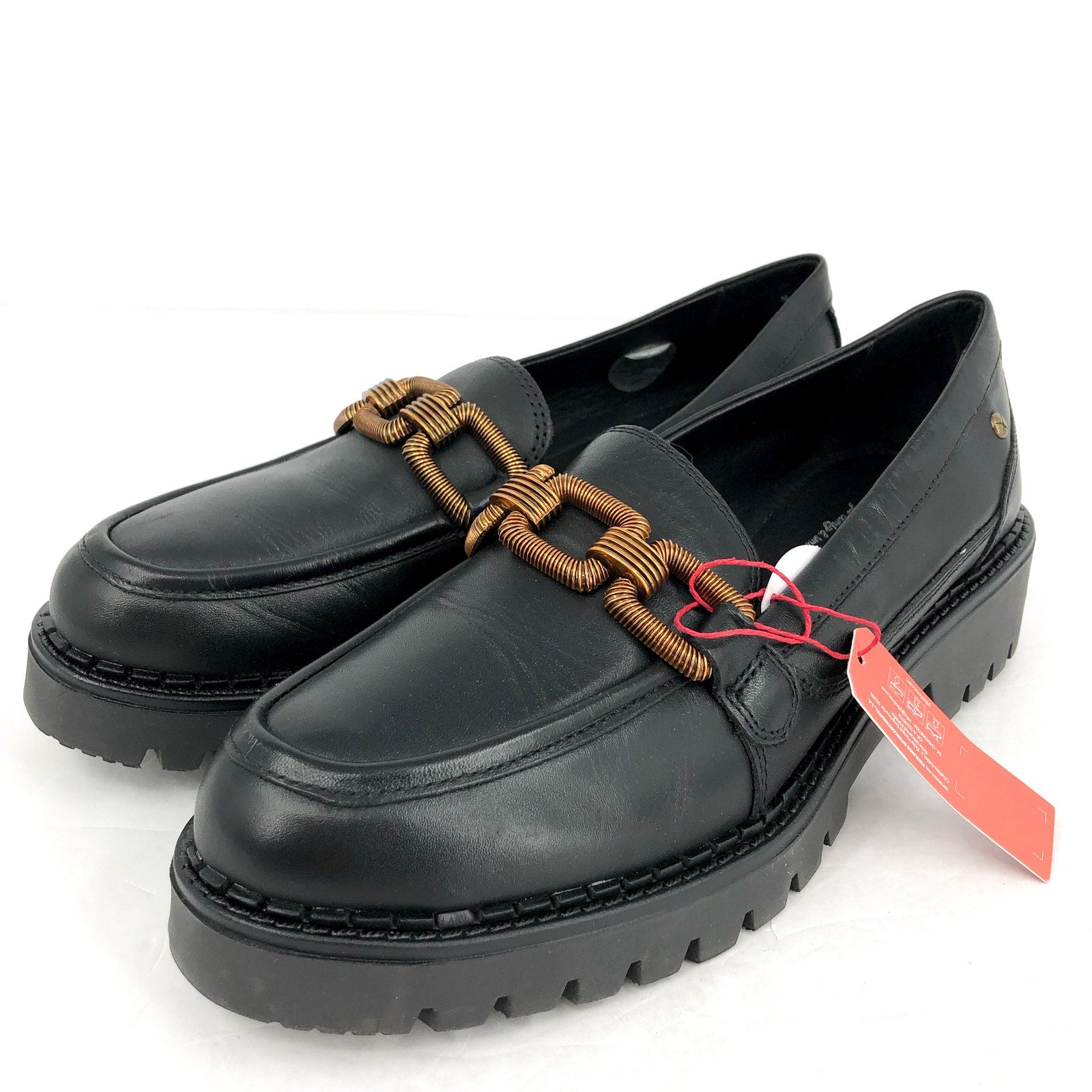 PIKOLINOS Women Aviles Platform Loafer EU 39 US 8.5 Black Leather Chain Link NIB
