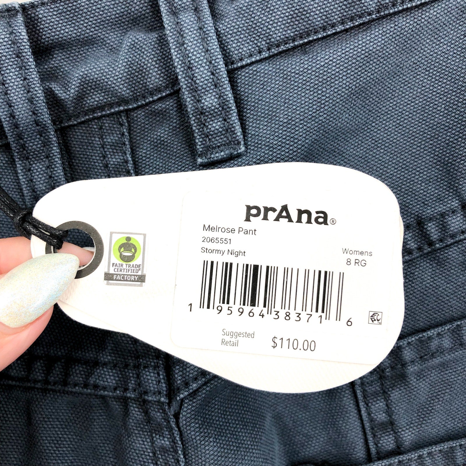 PRANA Womens Melrose Relaxed Pant Size 8 Reg Blue Stormy Night Barrel NWT