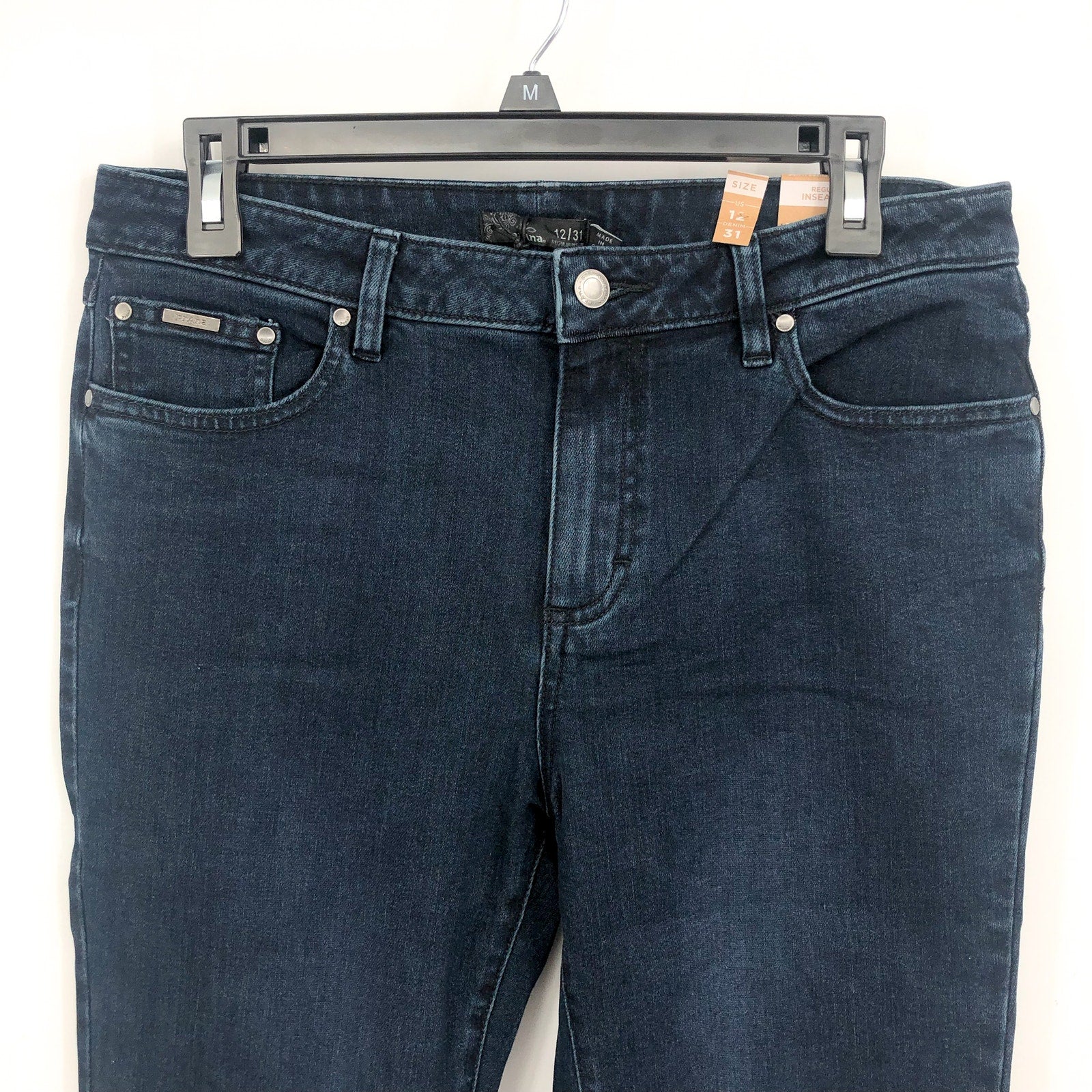 PRANA Women's Sienna Jeans Size 12 Deep Blue Mid Rise Skinny Stretch NWT