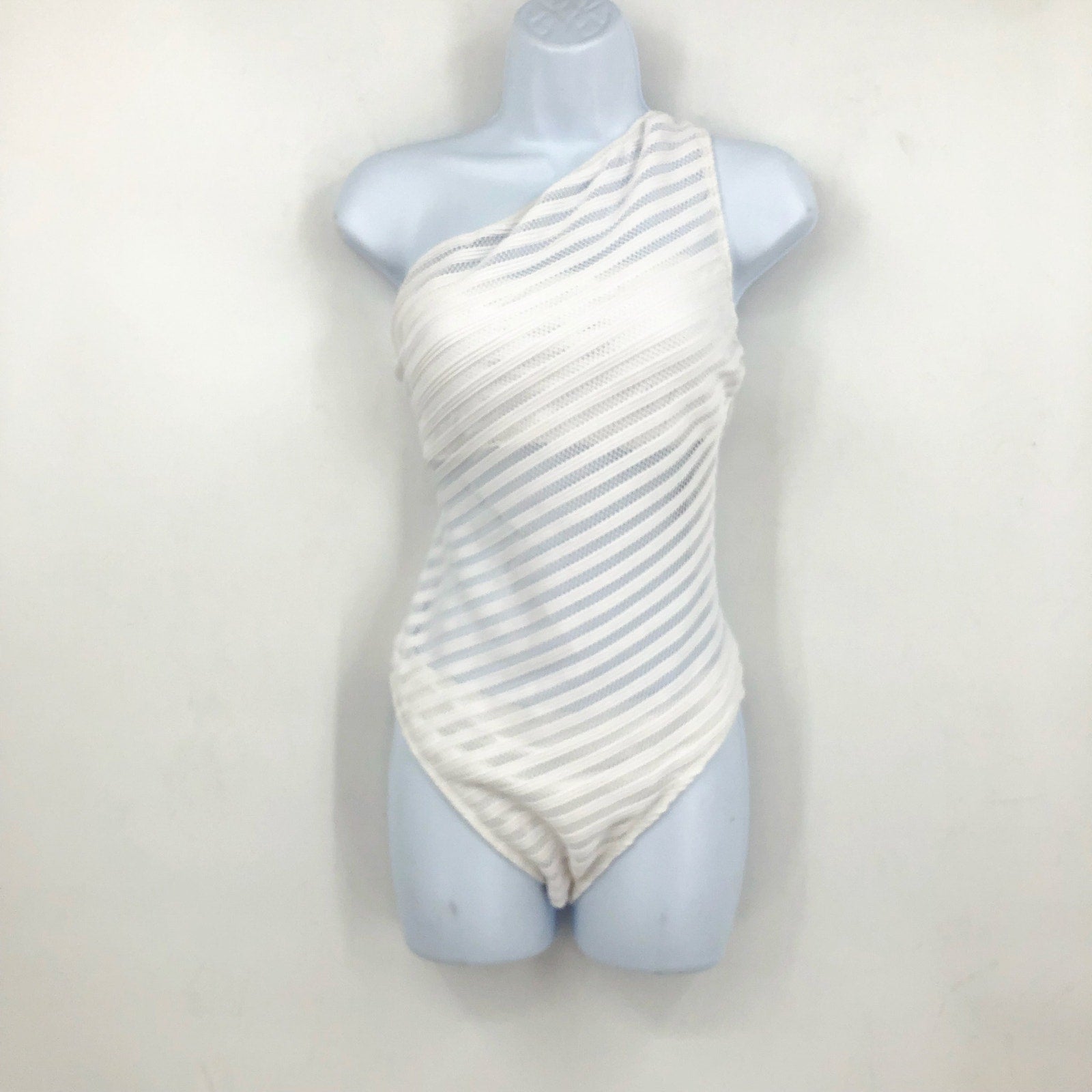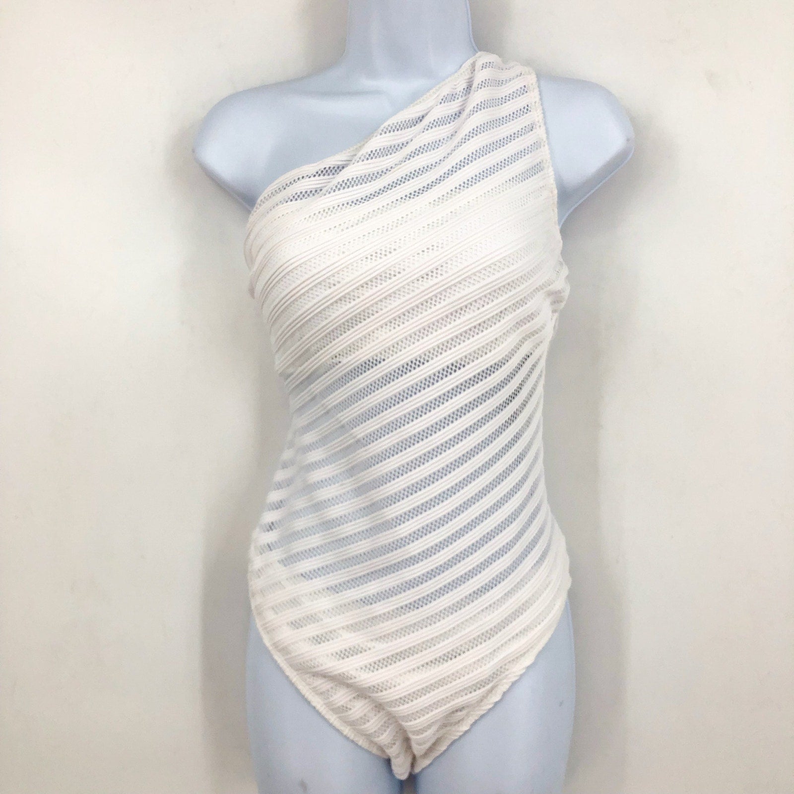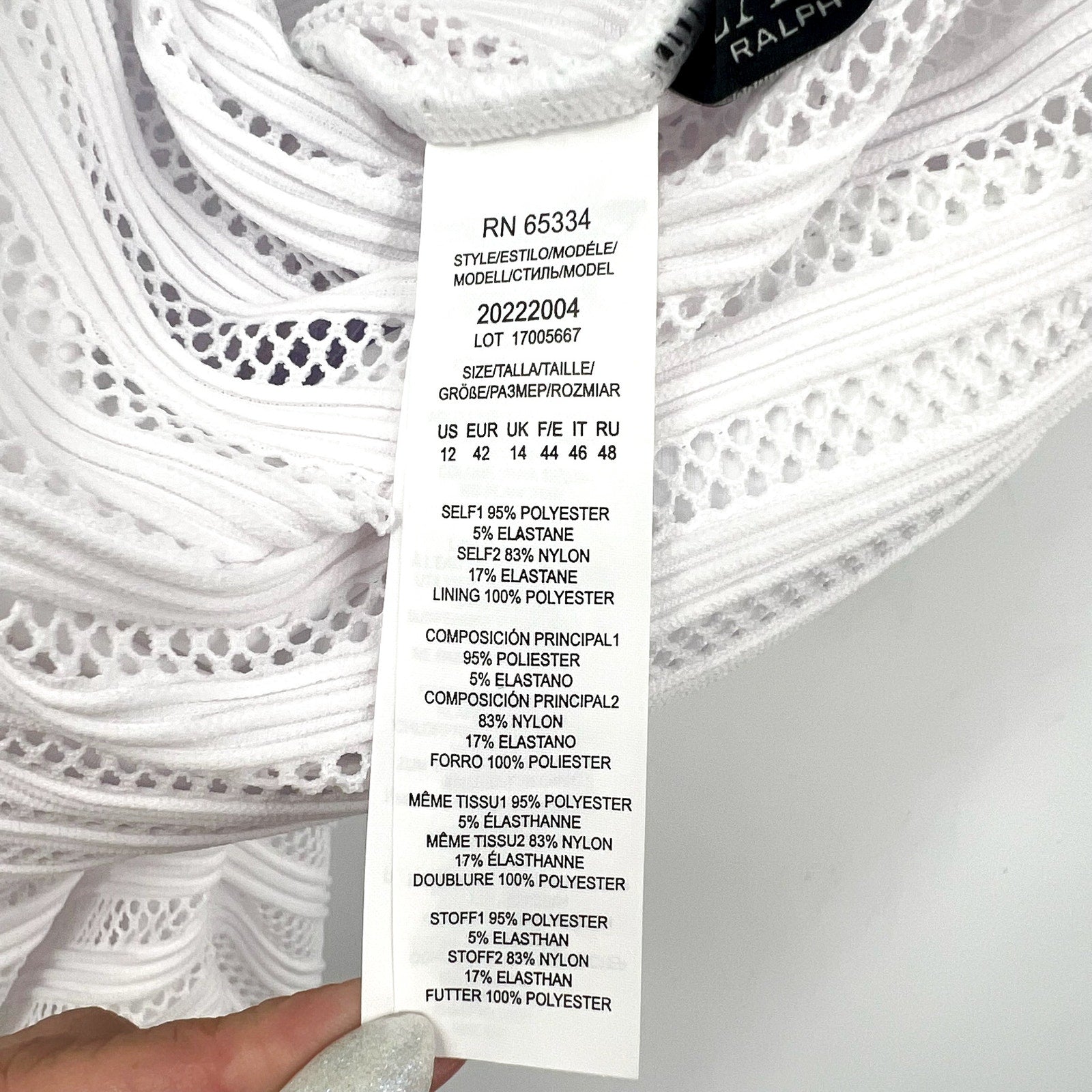 RALPH LAUREN Ottoman Mesh One-Piece Swimsuit Size 12 White One Shoulder NWT