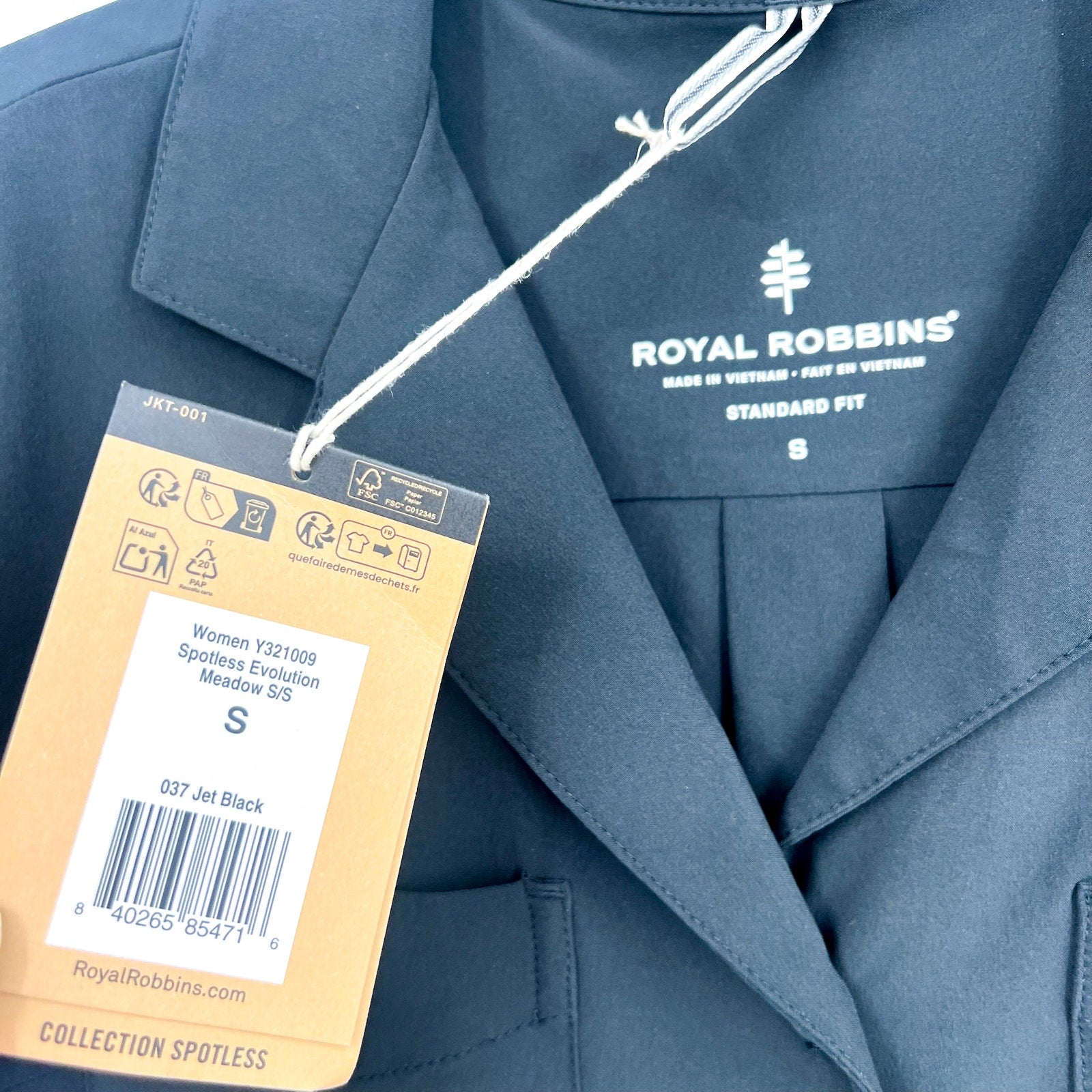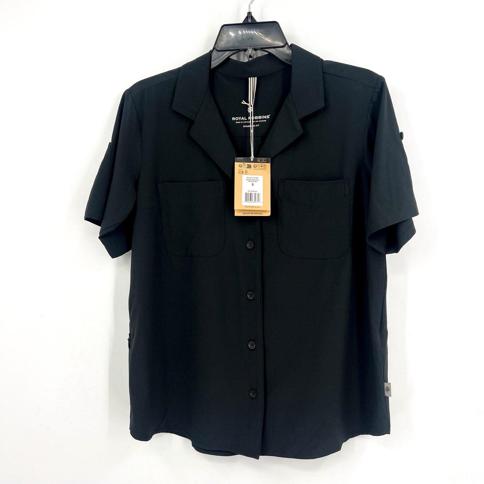 ROYAL ROBBINS Spotless Evolution Meadow Short Sleeve Shirt Small Jet Black NWT