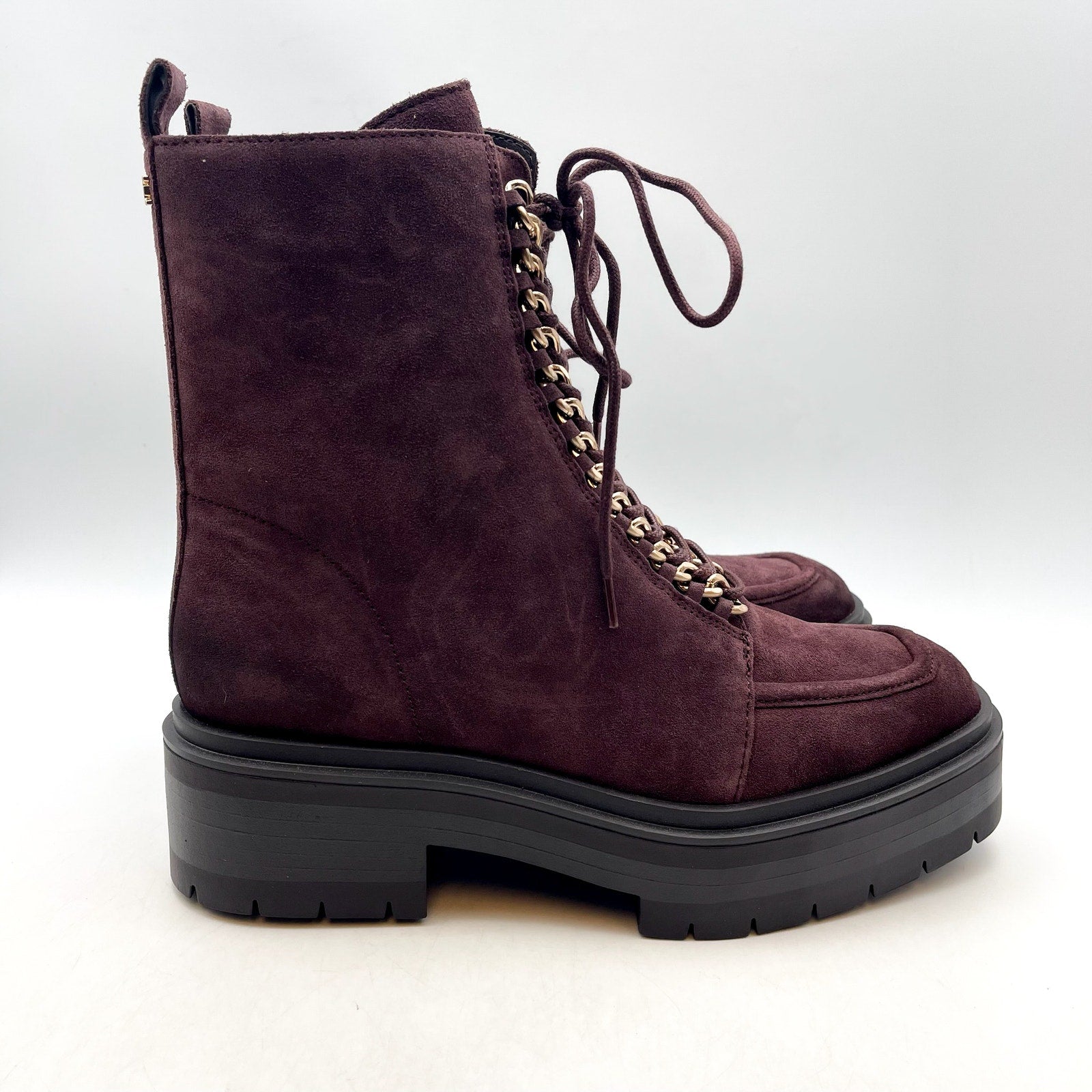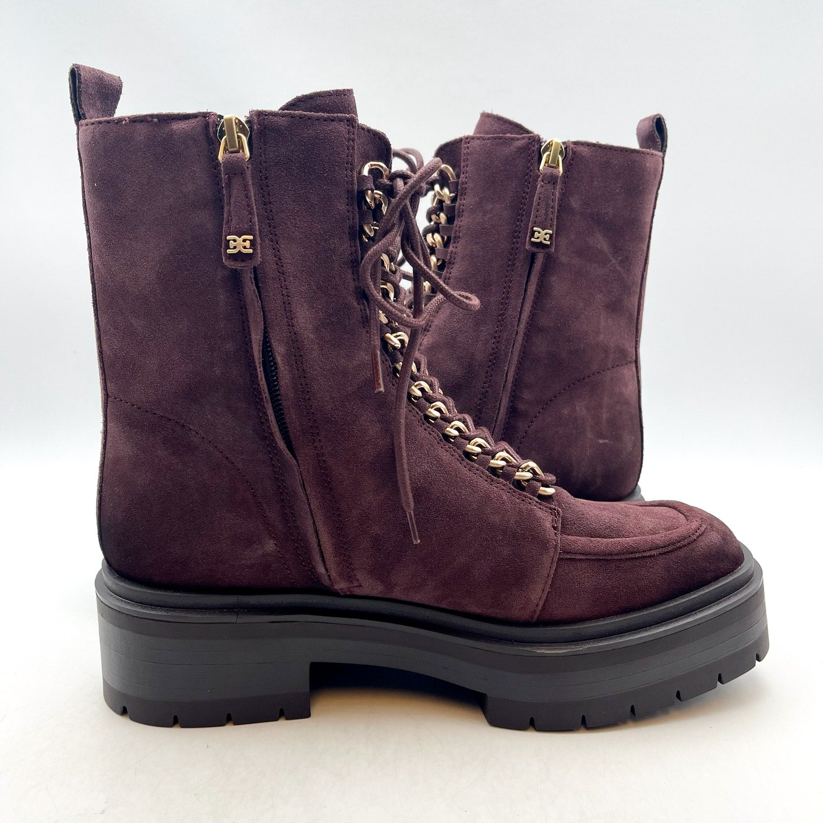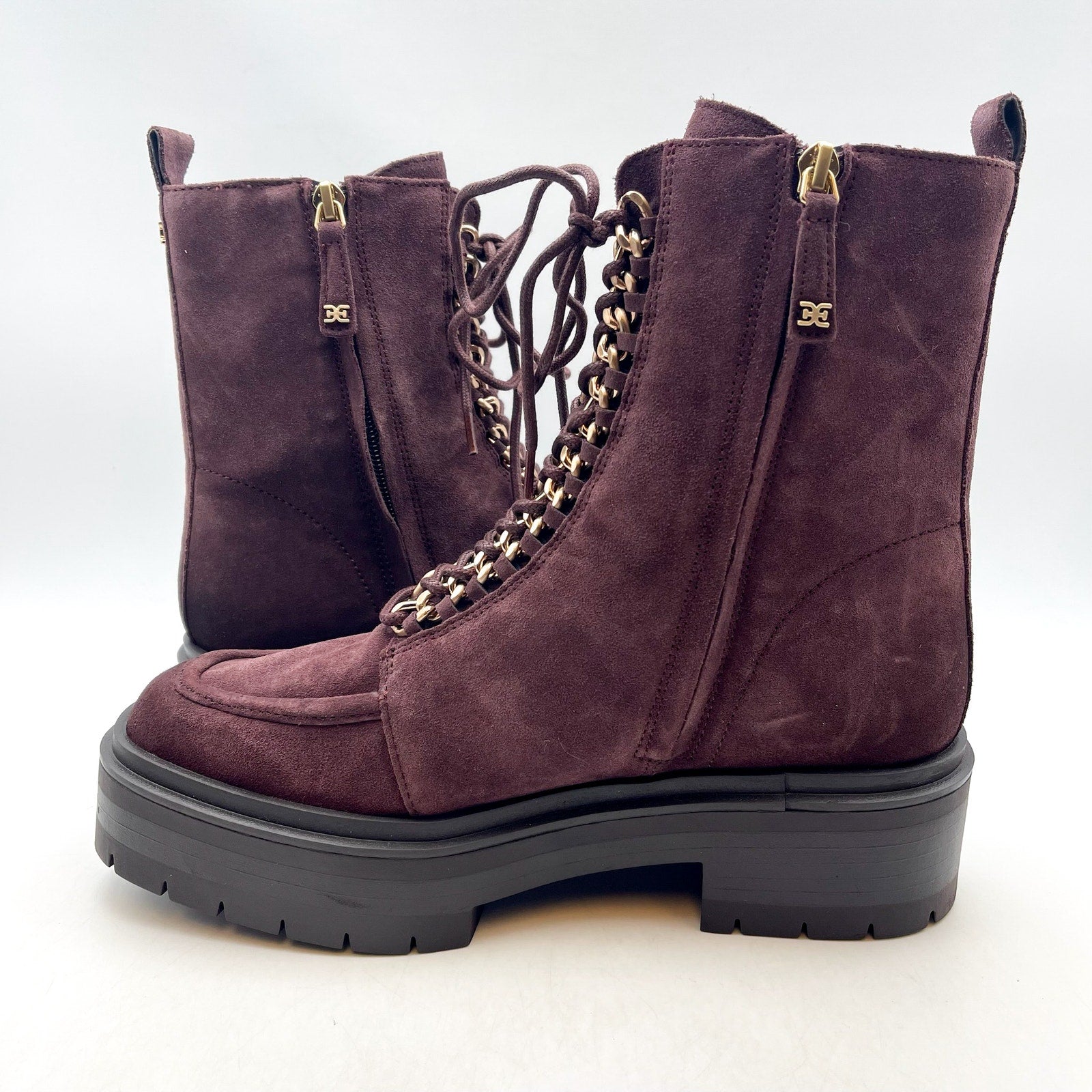 Sam Edelman Women Lovrin Platform Combat Boot US 8 M EU 38.5 Burgundy Suede NWOB