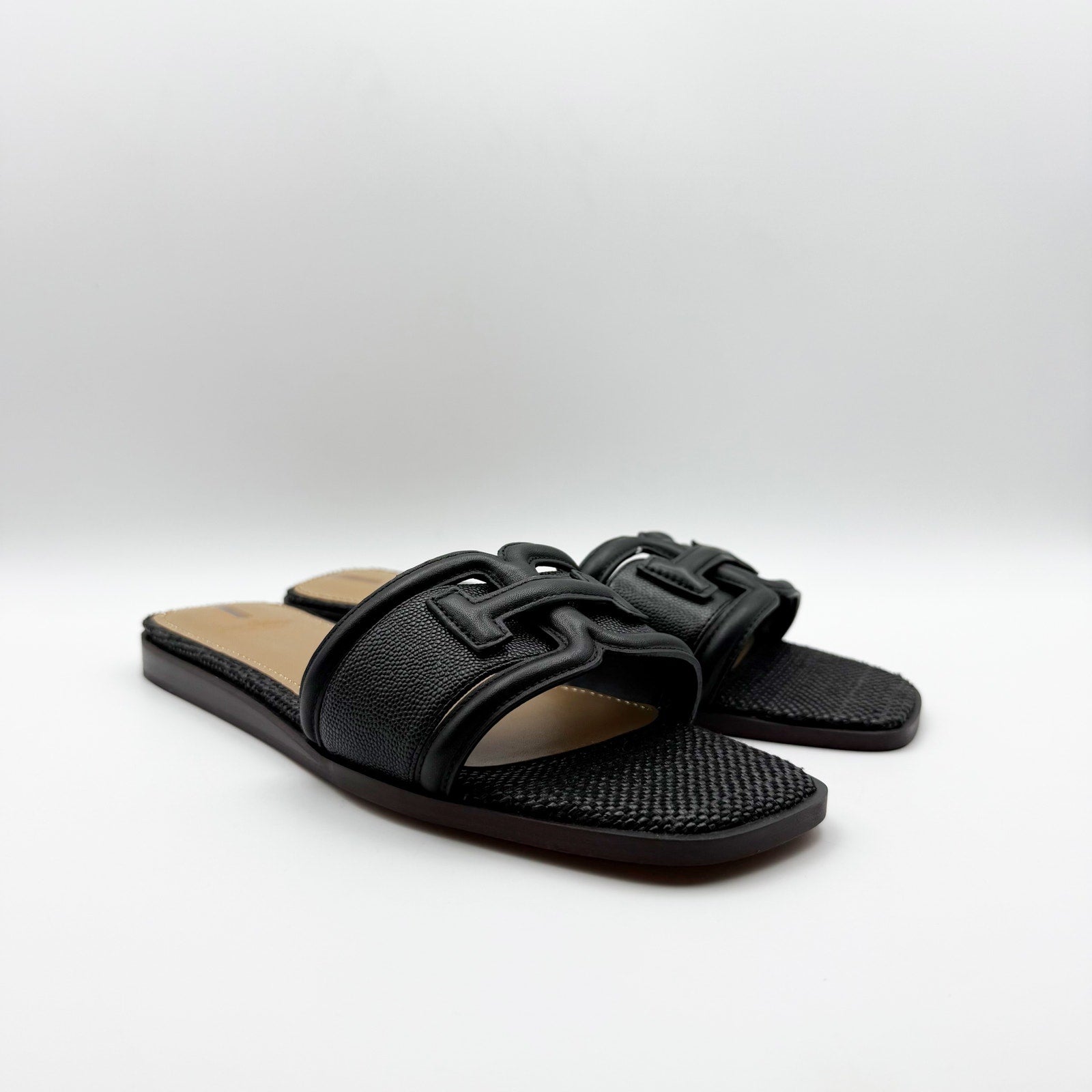 Sam Edelman Womens Irina Sandals US 9 EU 40 Black Leather Slip on Slide NIB