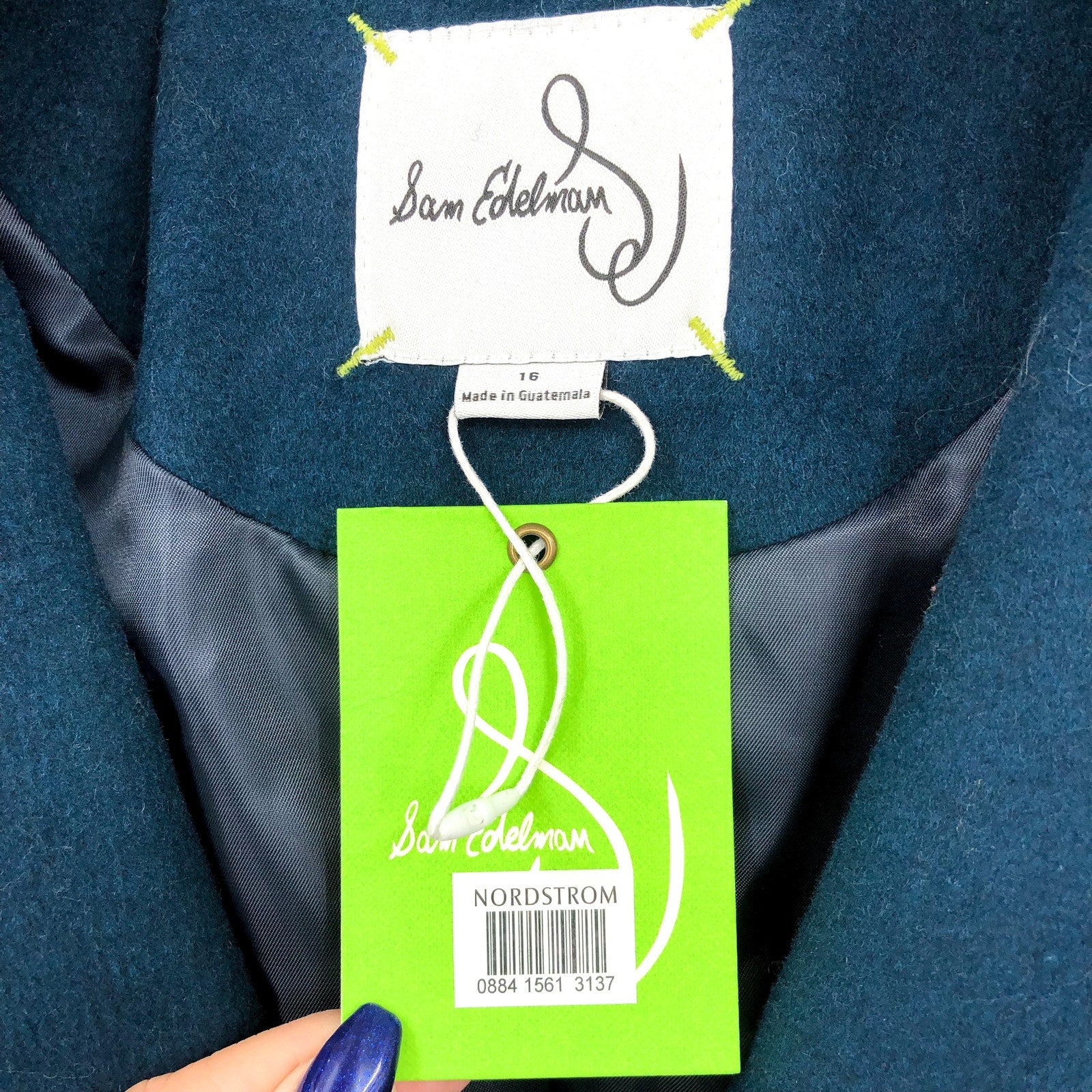 SAM EDELMAN Women's Longline Coat Size 16 Teal Blue Wool Blend NWT