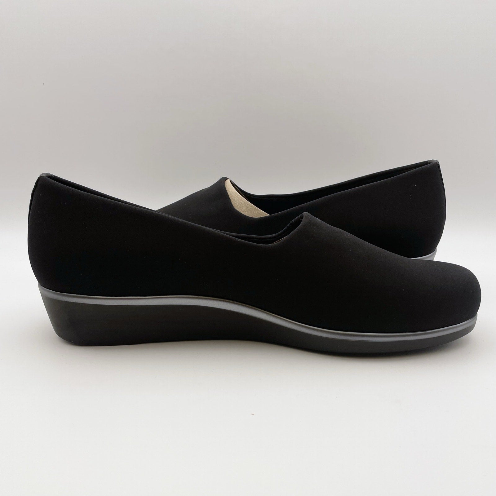 SAS Womens Bliss Slip on Wedge Loafer US 11.5 M Black Leather Lined NIB