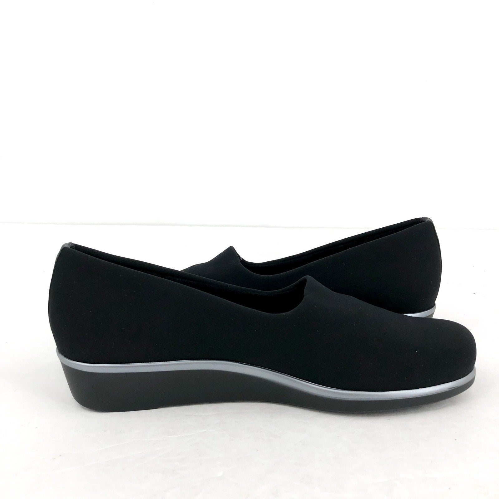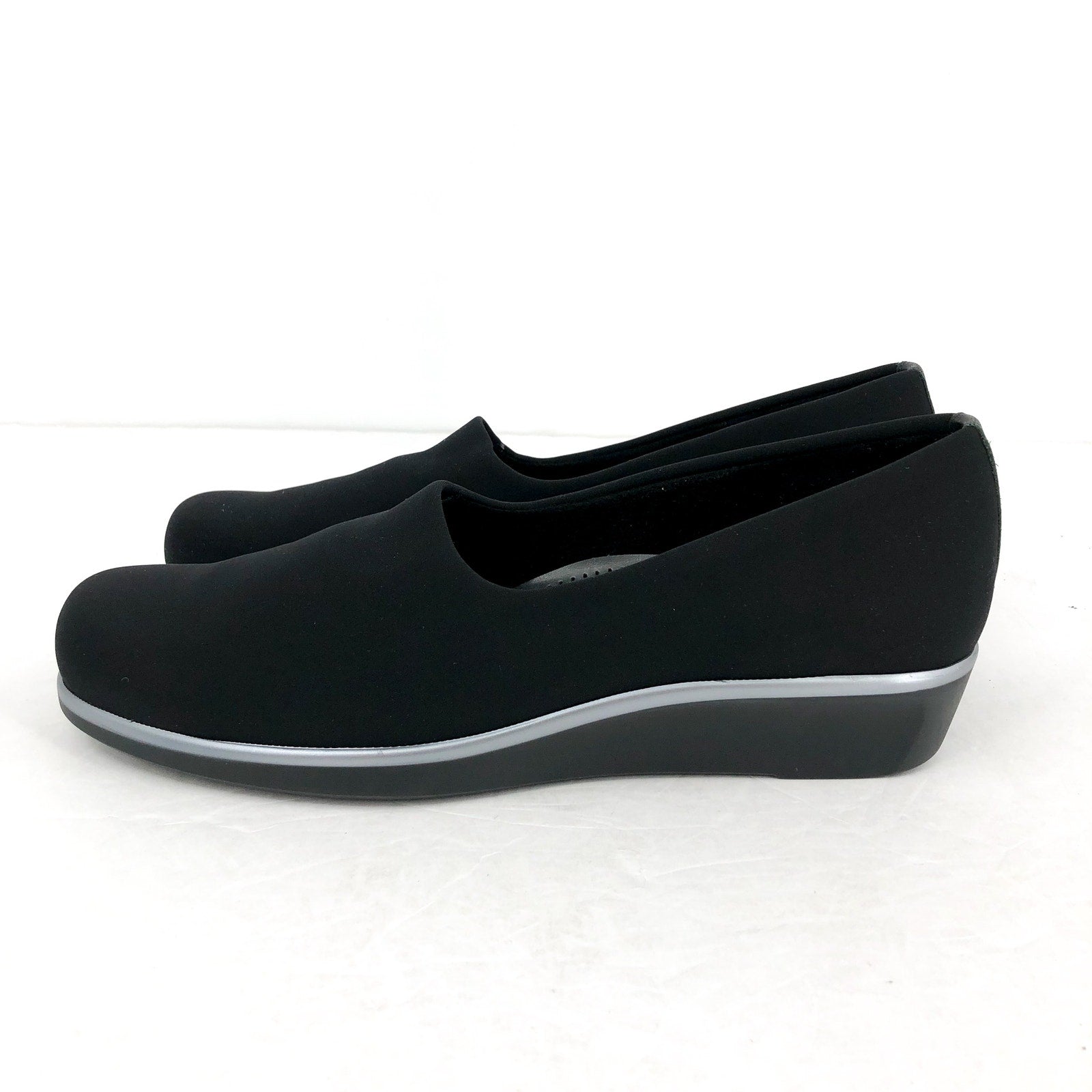 SAS Womens Bliss Wedge Slip On Shoes Size 9.5 SLIM Black Leather Comfort NIB