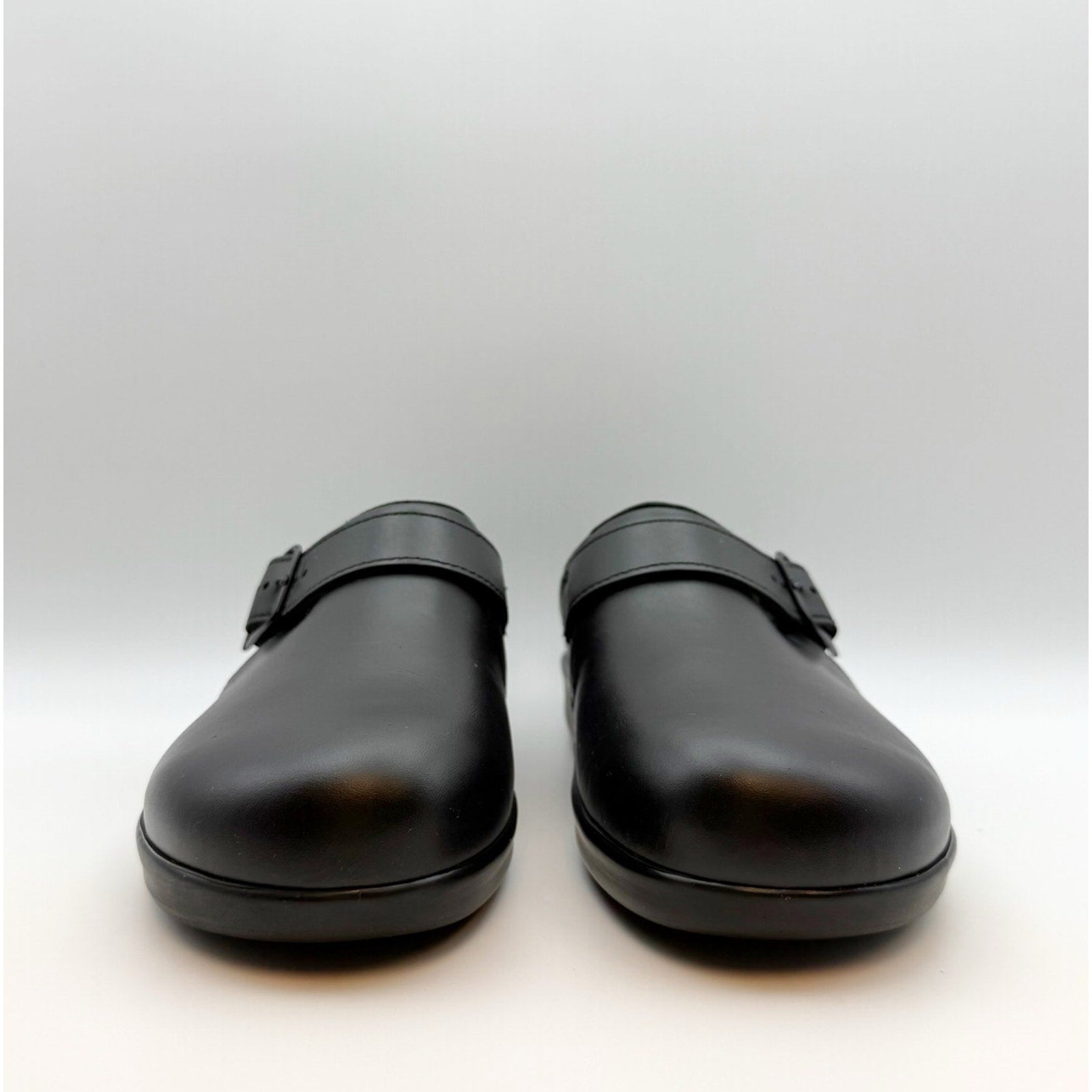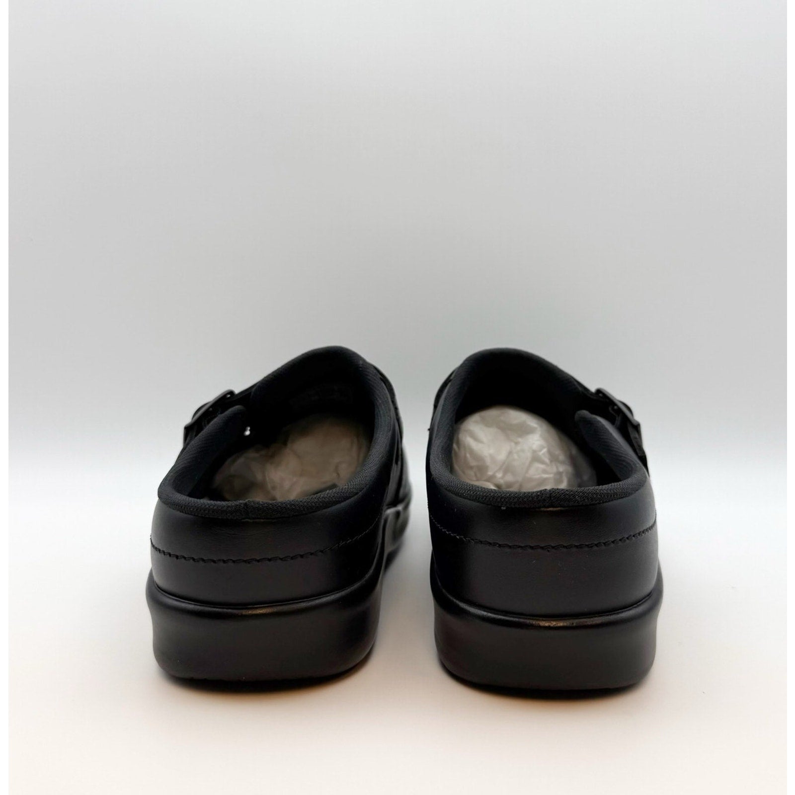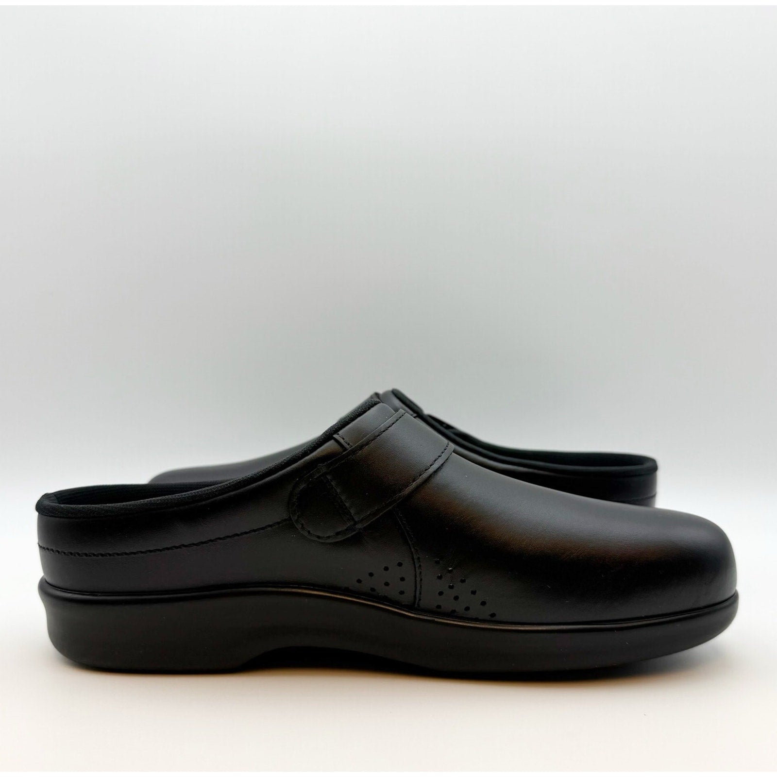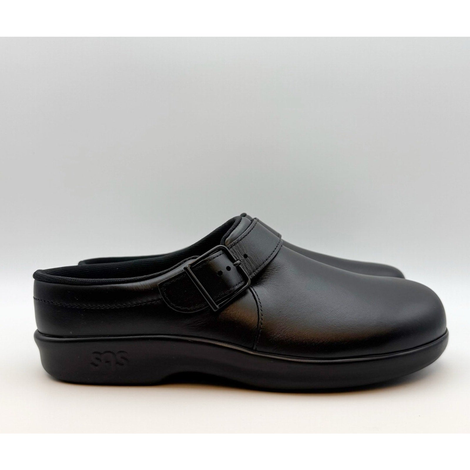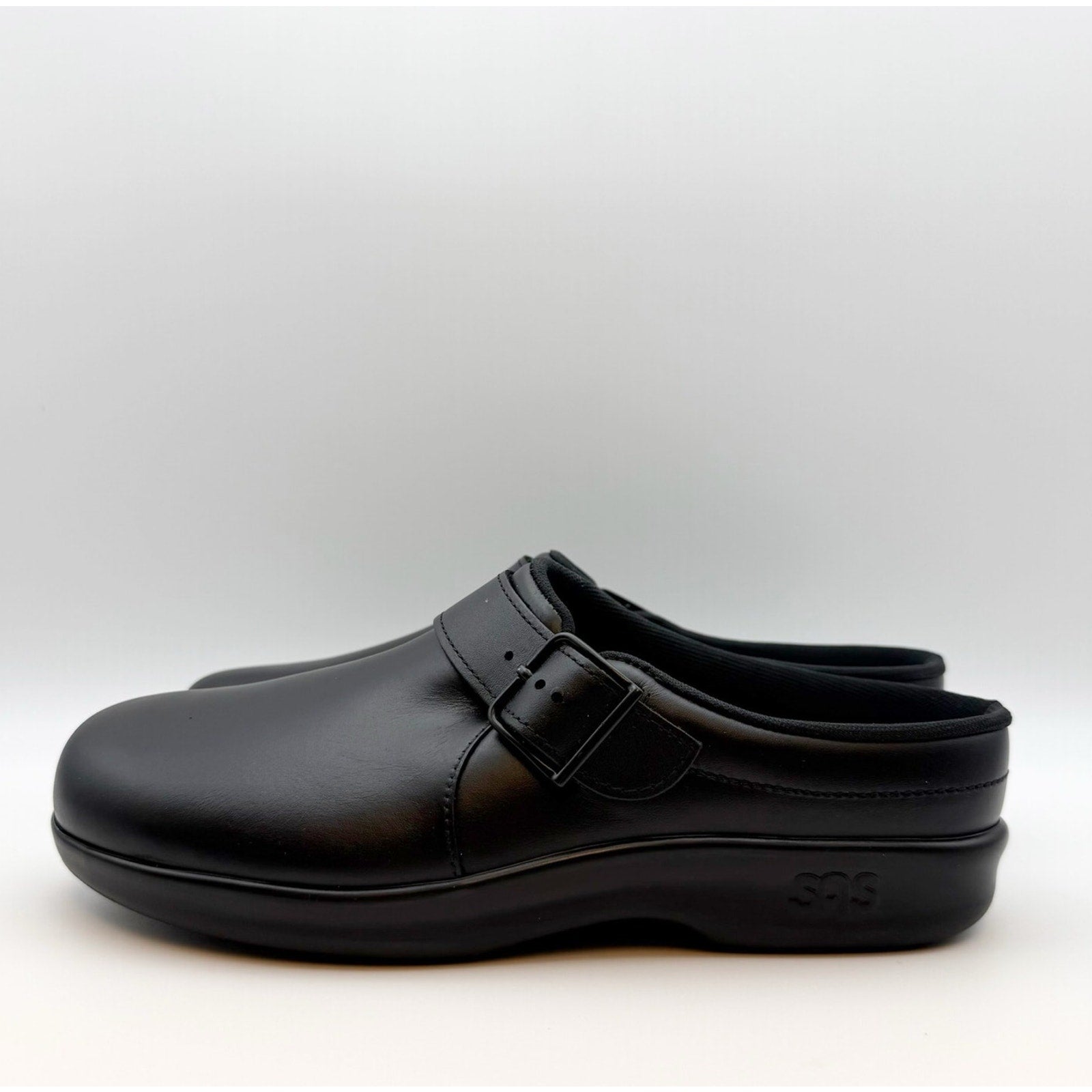SAS Womens Comfort Clog US 10.5 M Black Leather Slip On Buckle Detail NIB