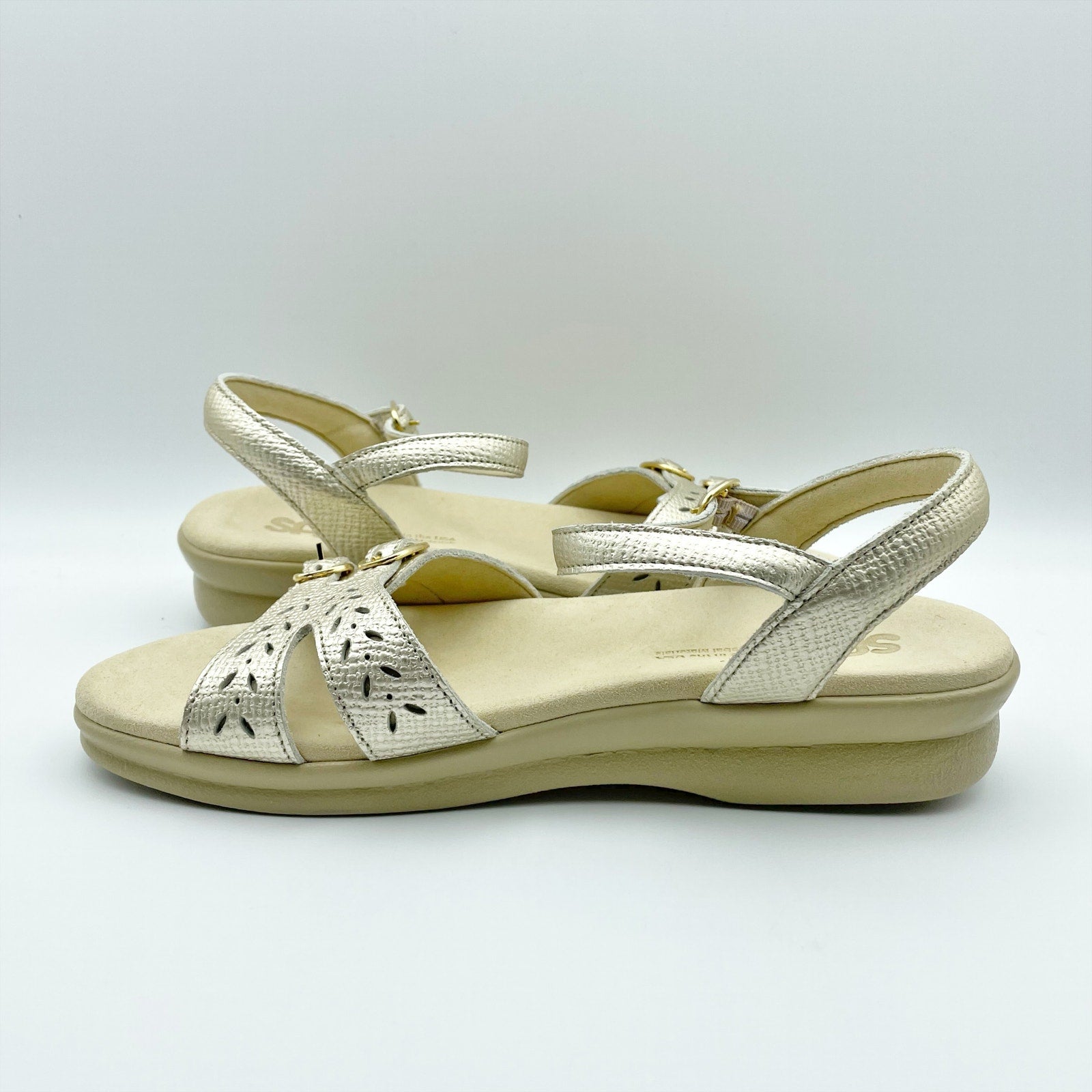 SAS Womens Duo Comfort Sandal US 9 M EU 40 Gold Suede 3-Strap Comfort NIB