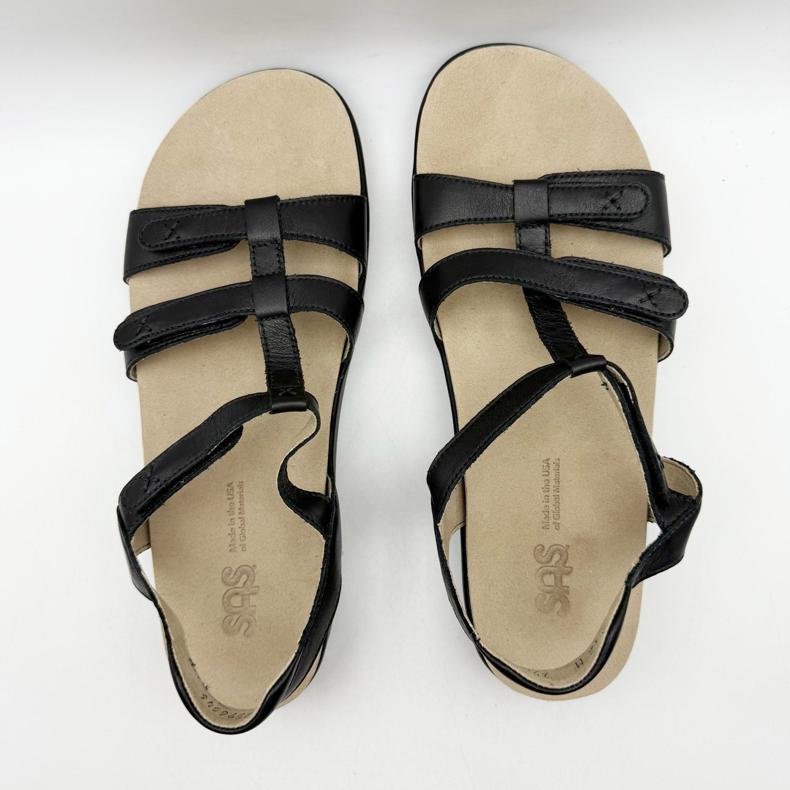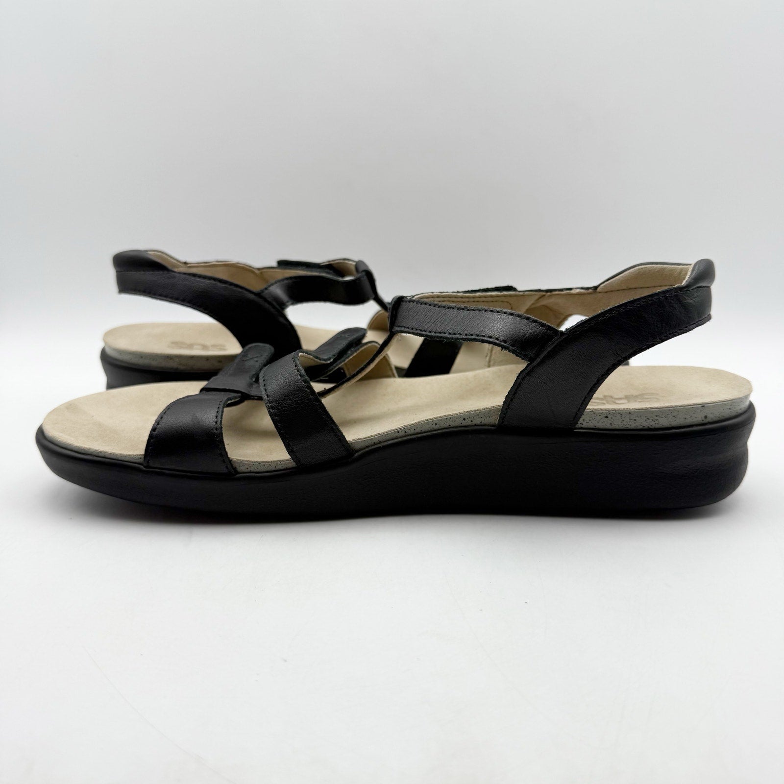 SAS Womens Sorrento Adjustable Comfort Sandal US 12 M Black Leather NIB