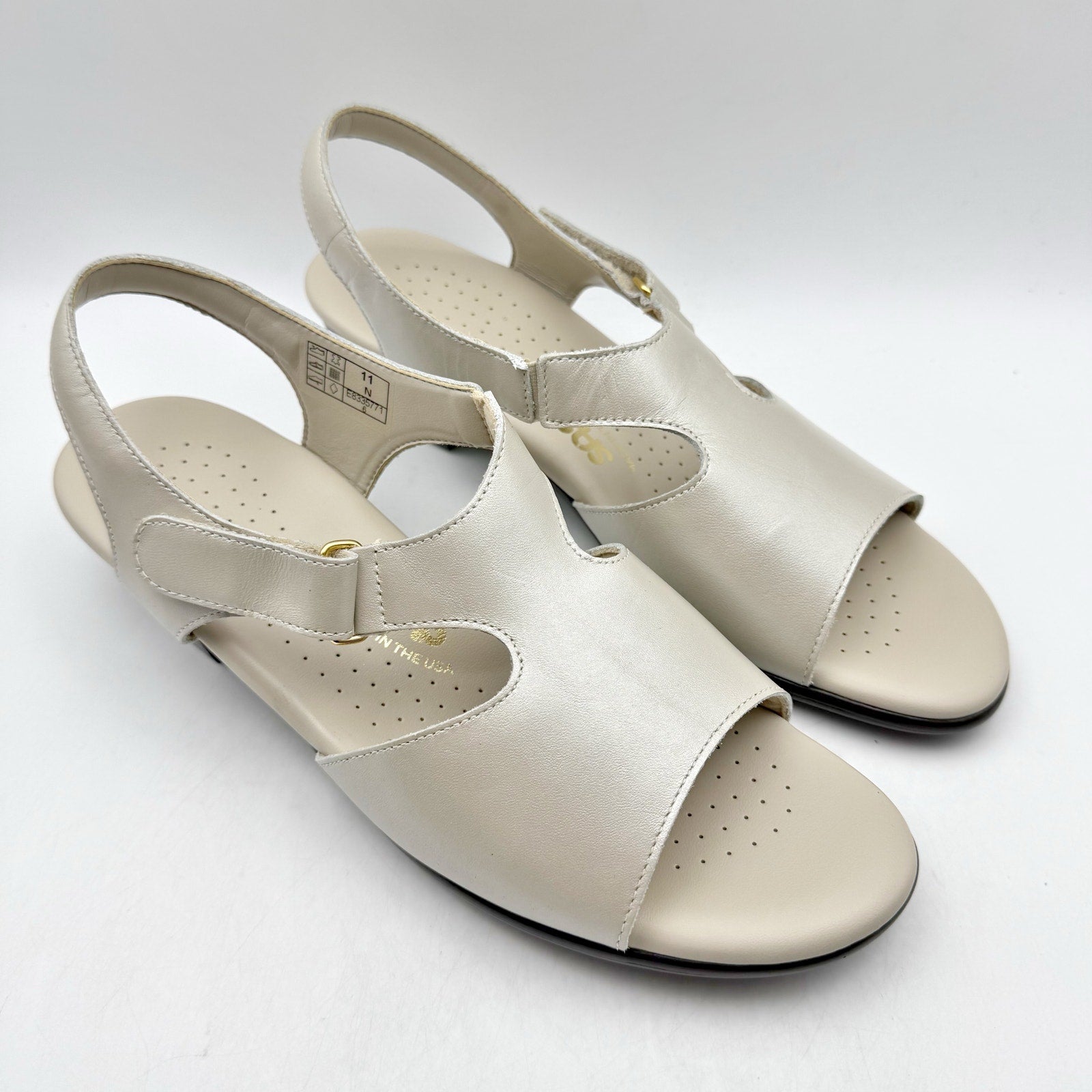SAS Womens Suntimer Heeled Sandal US 11 Narrow Cream Leather NIB