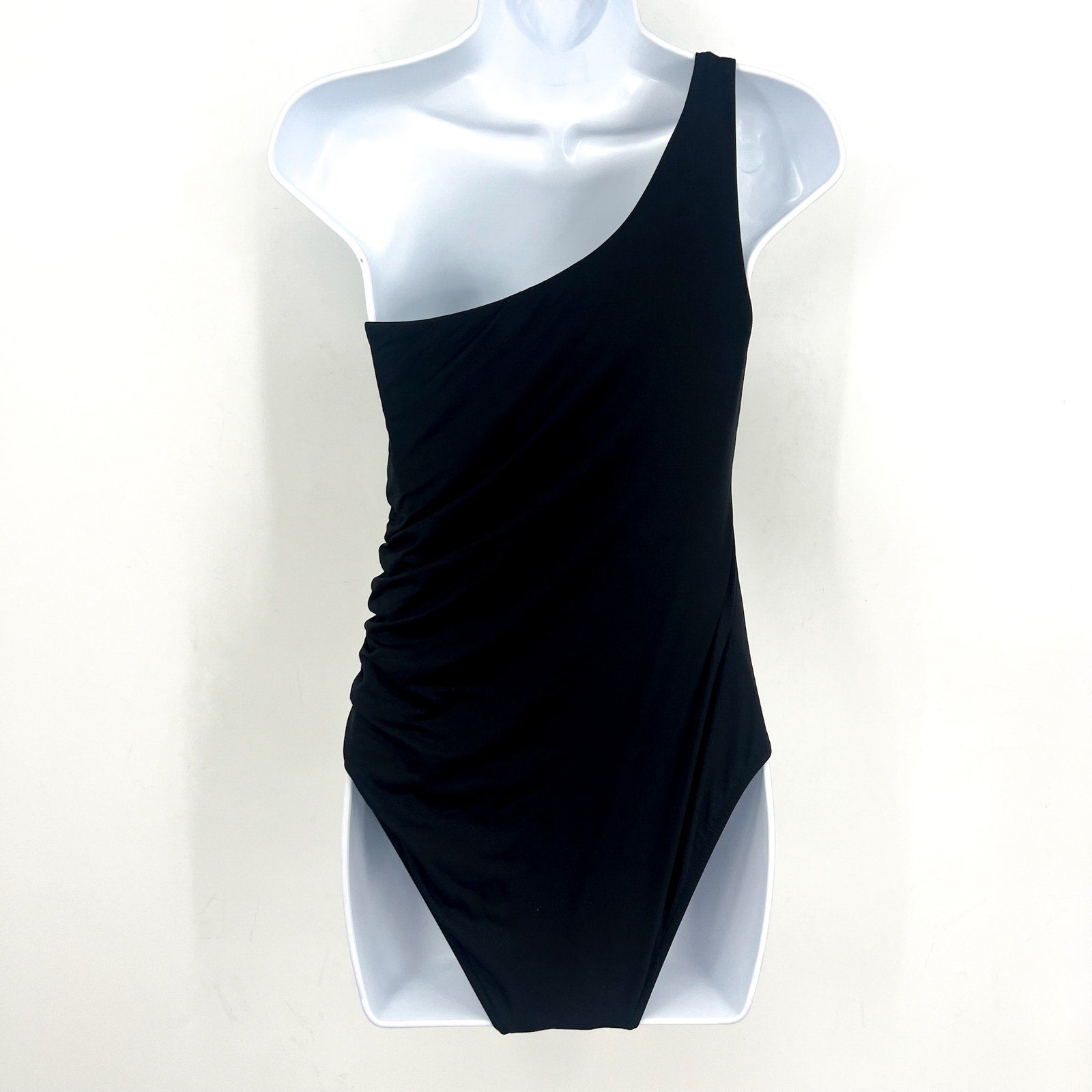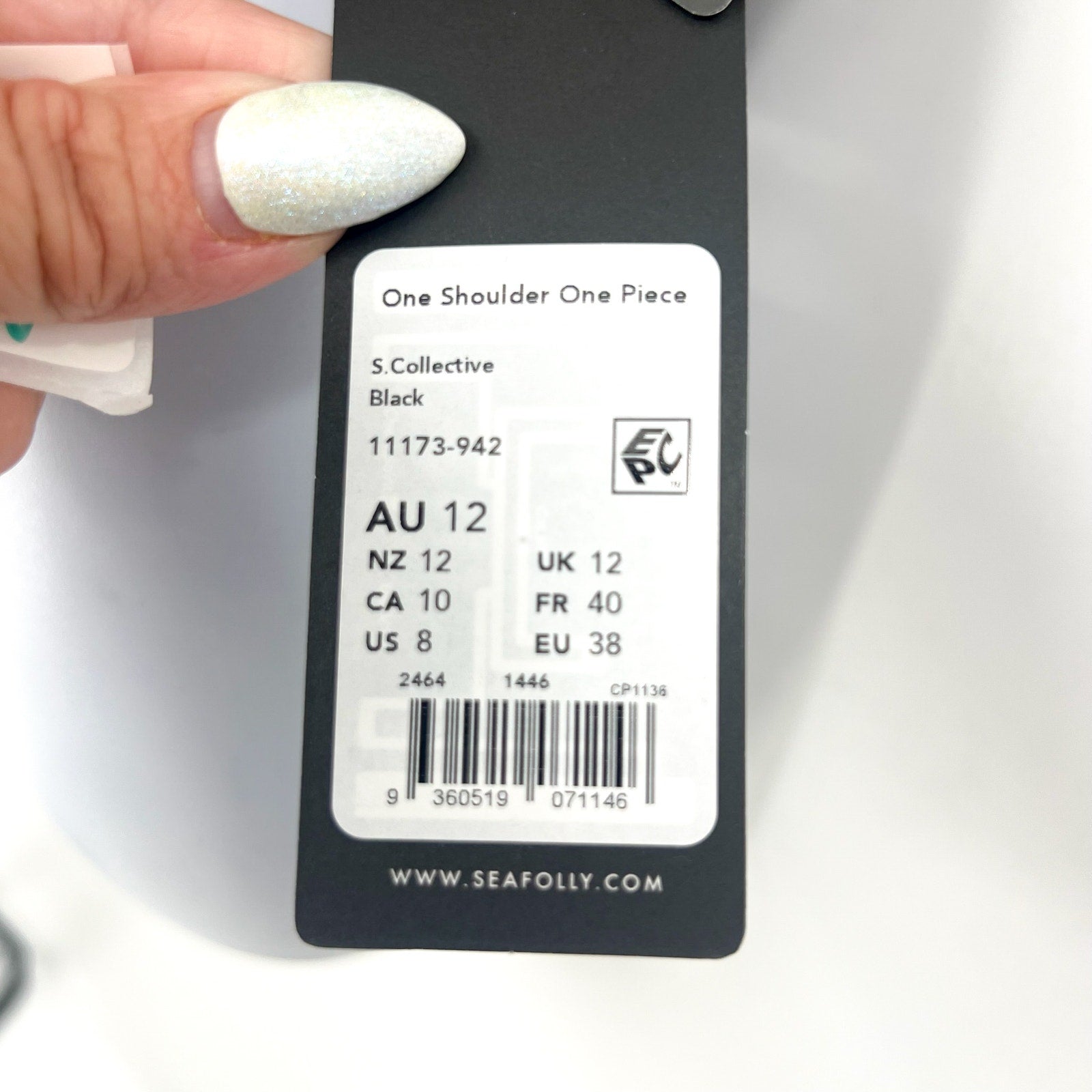 SEAFOLLY COLLECTIVE One Shoulder One Piece Size 8 Black Ruched NWT