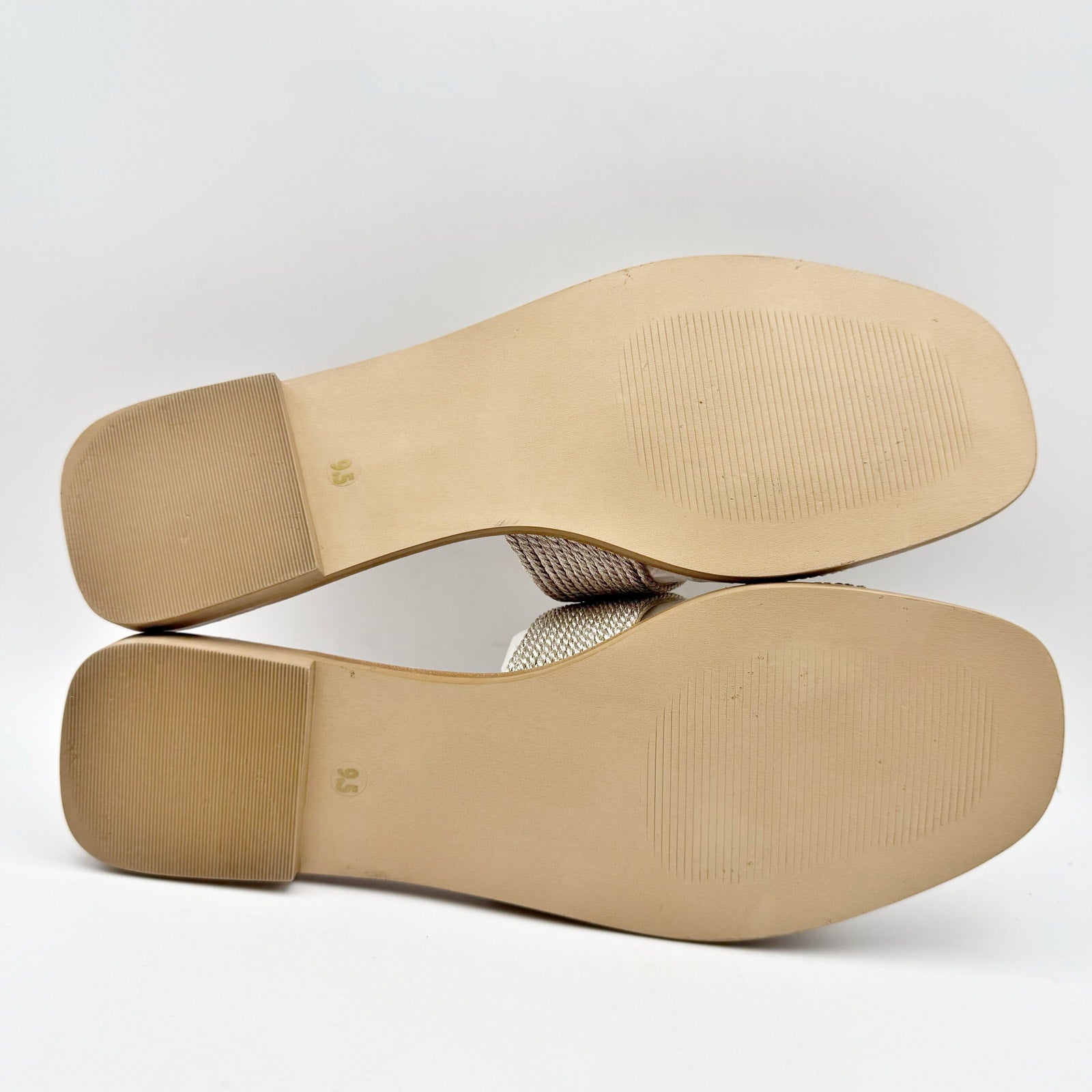Steve Madden Womens Hadyn Braided Slide Sandals US 9.5 M Tan Metallic NIB