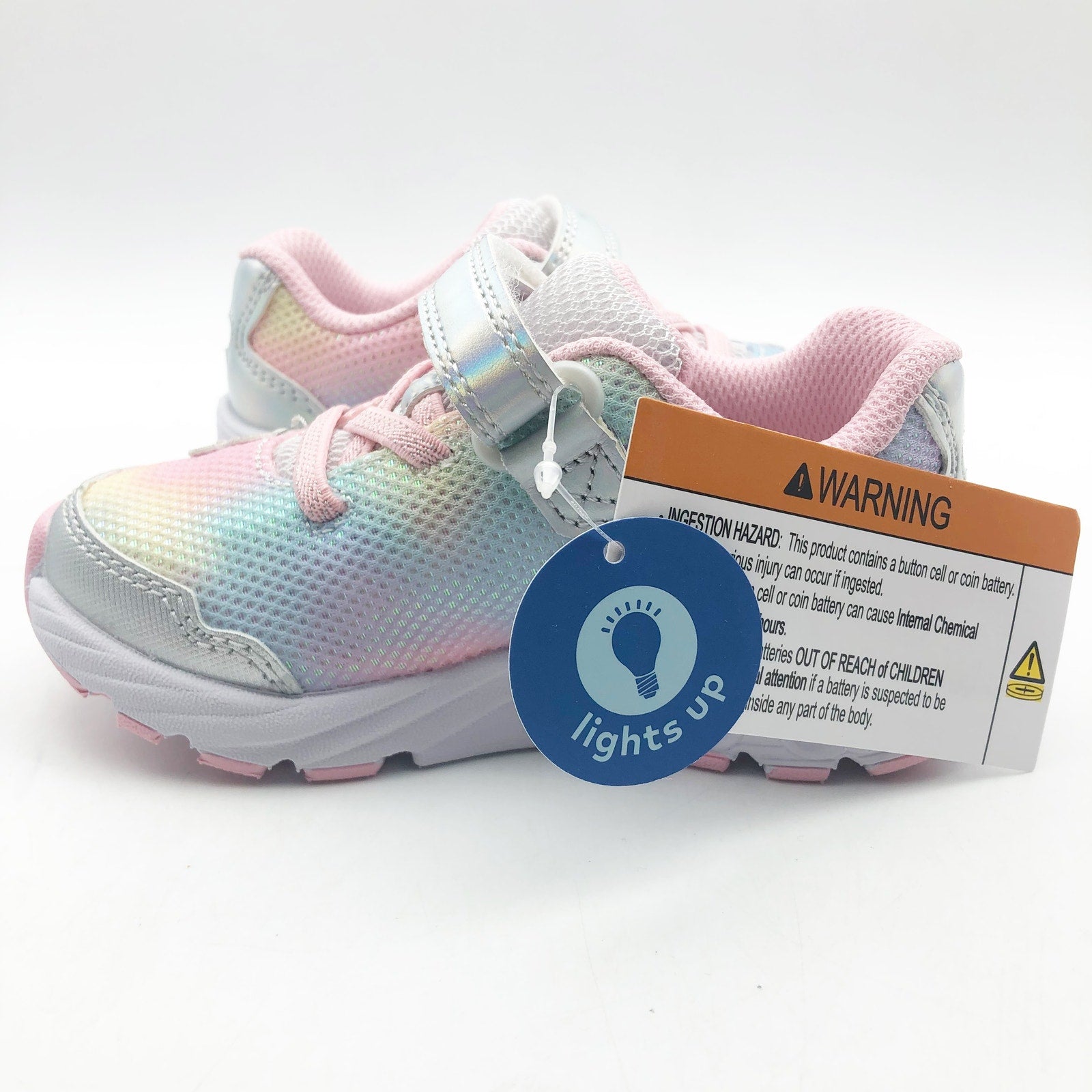 Give your little one's ensembles a colorful touch with the Stride Rite® SR Lighted Glimmer 2.0 Shoes. The rainbow-inspired footwear features breathable mesh upper construction with lace-up closure and hook-and-loop ankle strap for an adjustable fit.