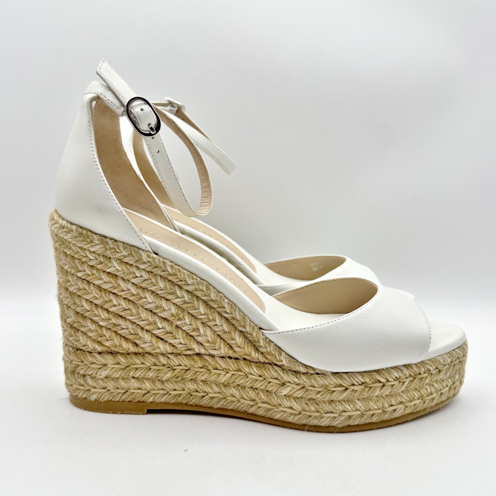Stuart Weitzman Womens Nudistcurve Espadrille Wedge Sandals US 9 B White NWOB