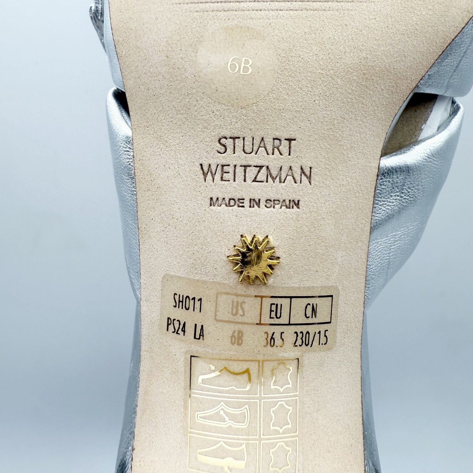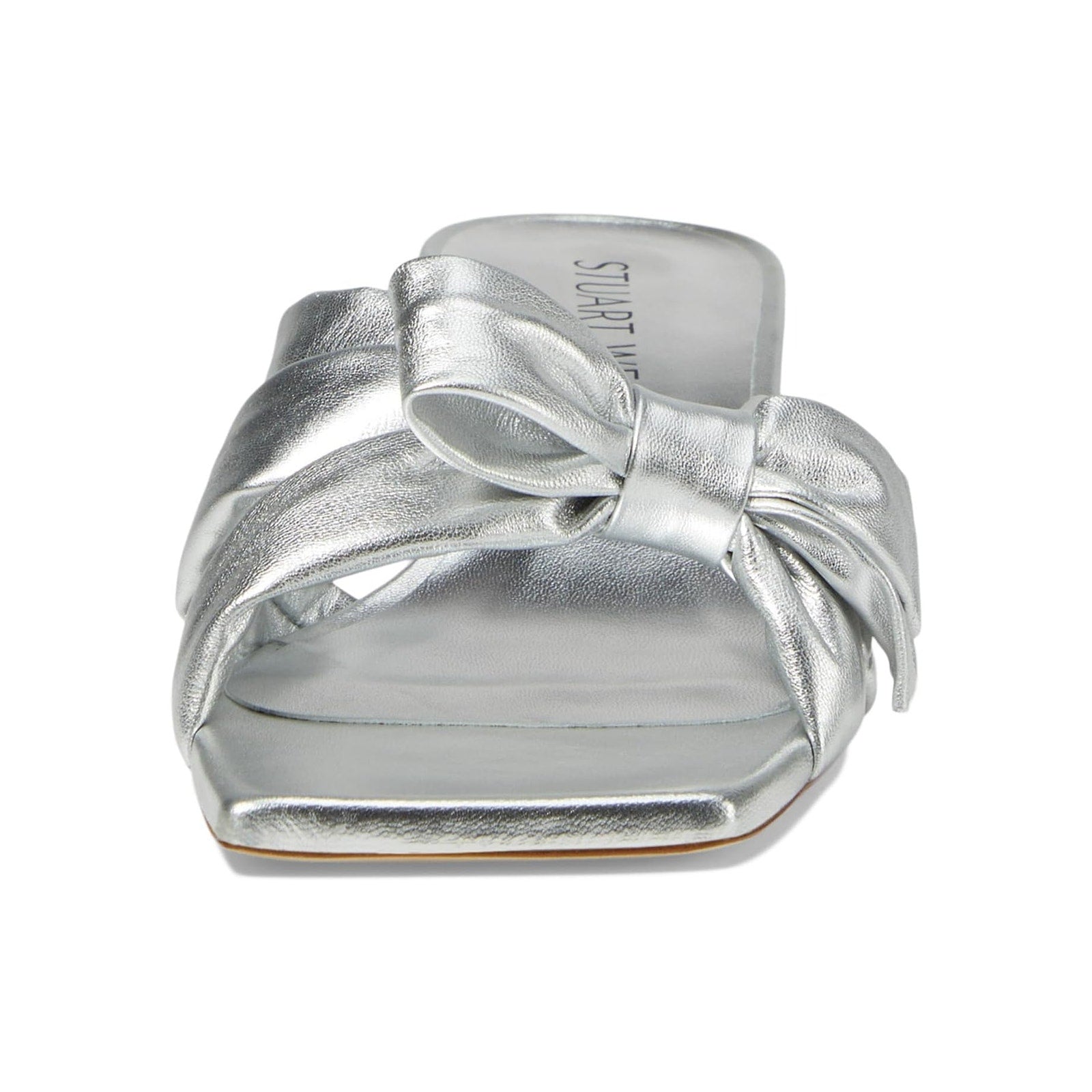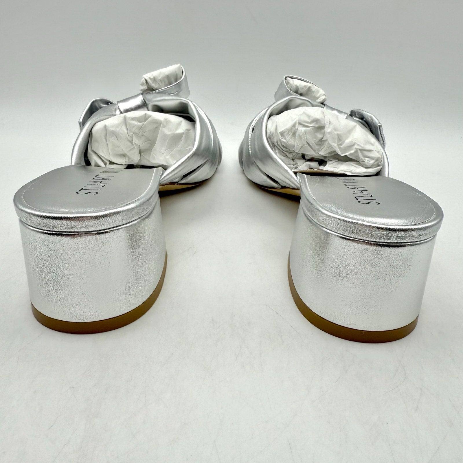 Stuart Weitzman Womens Sofia 45 Slide High Heels Size 6 Silver Leather Bow NIB