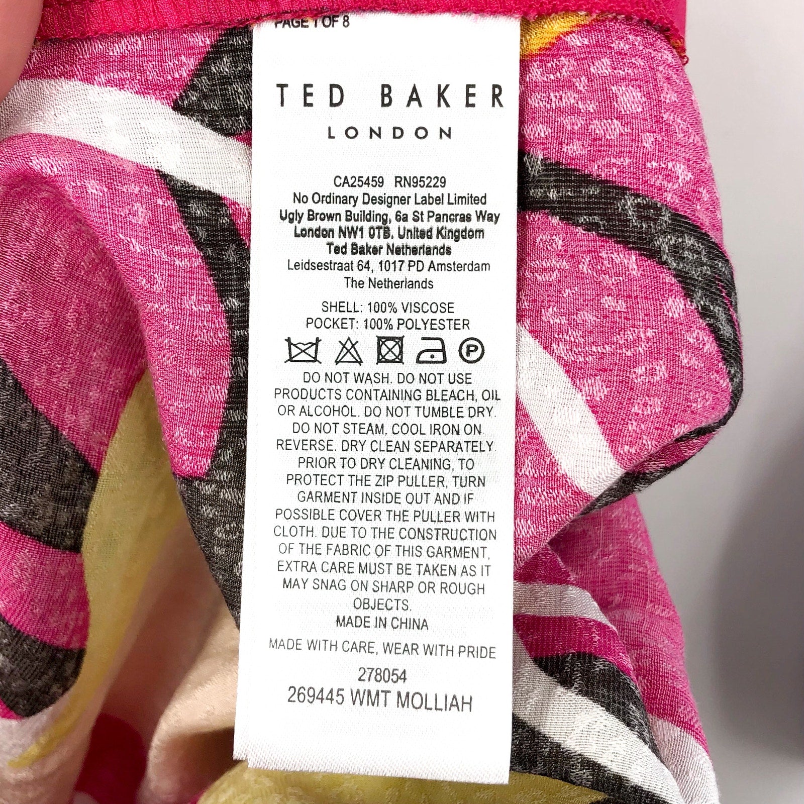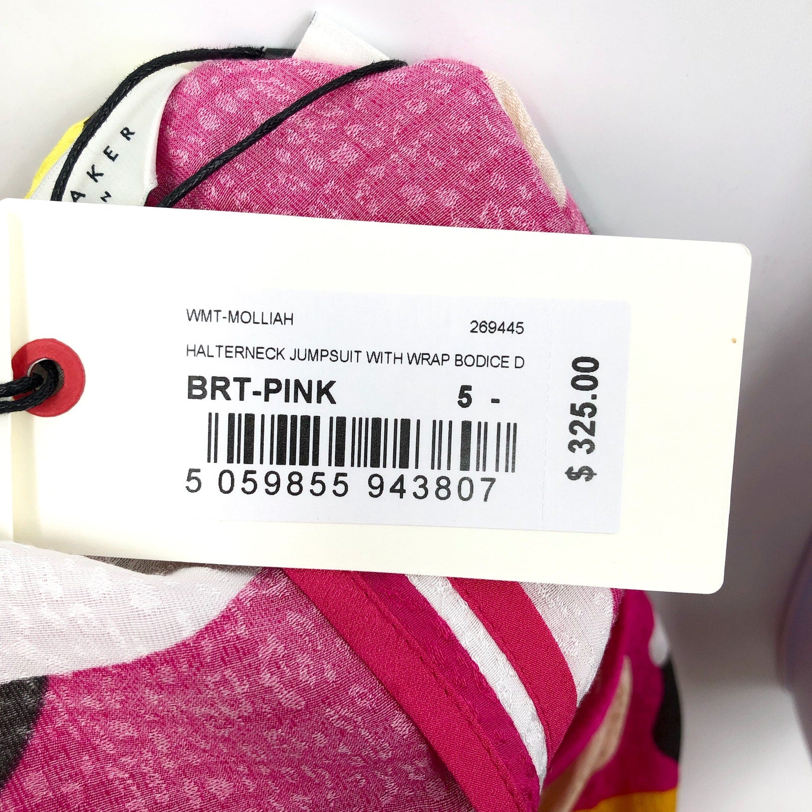 TED BAKER Molliah Halterneck Jumpsuit Size 5 US 12 Bright Pink Wrap Bodice