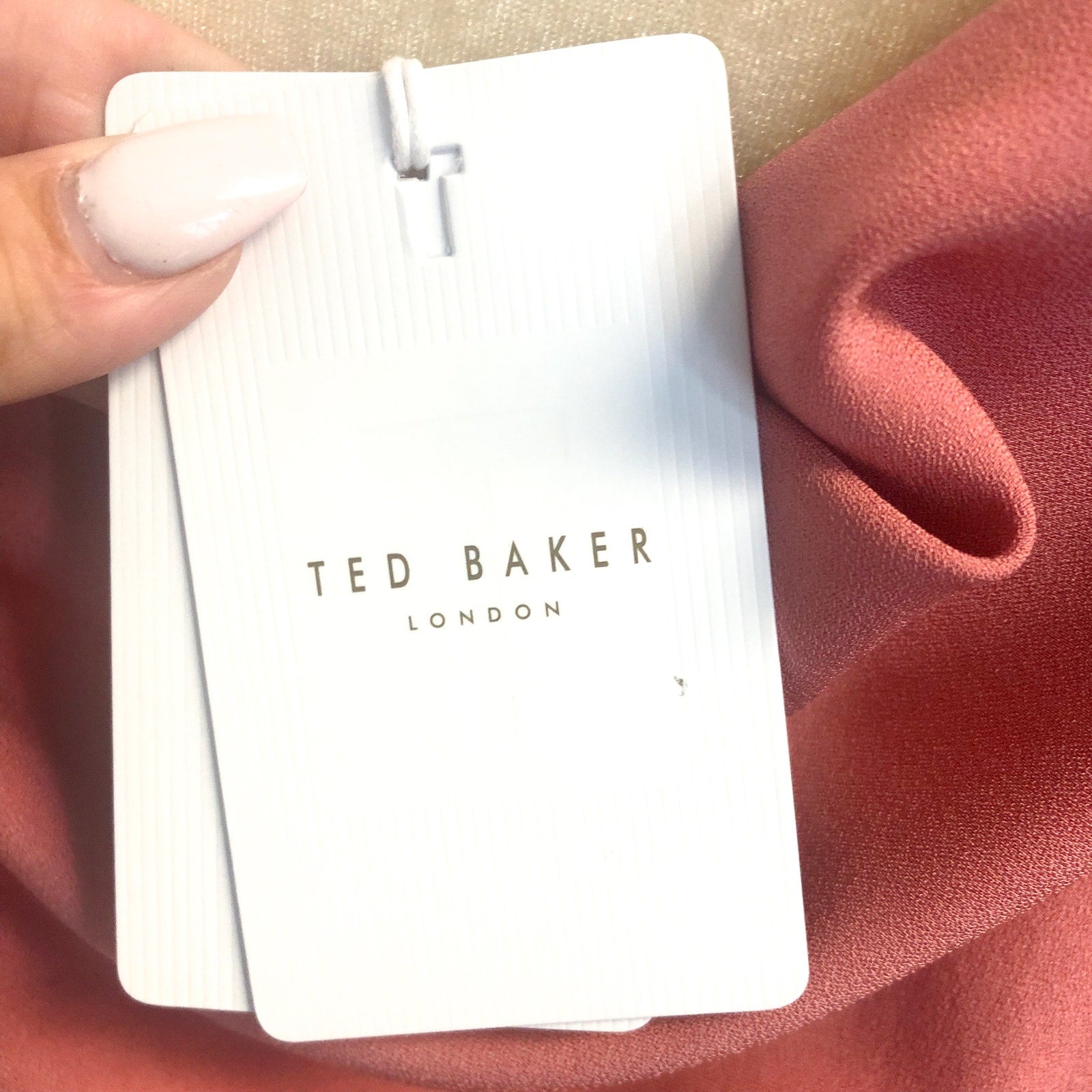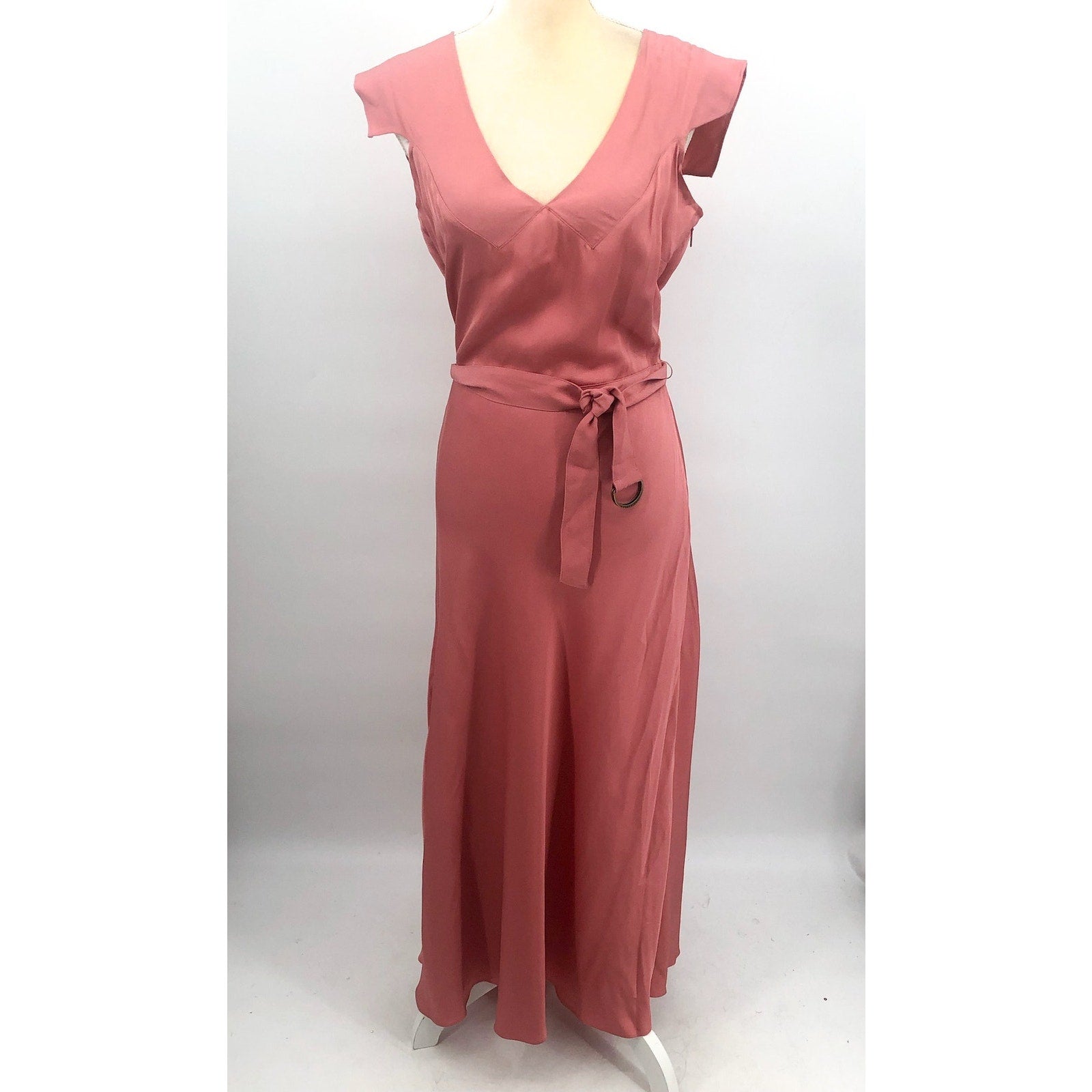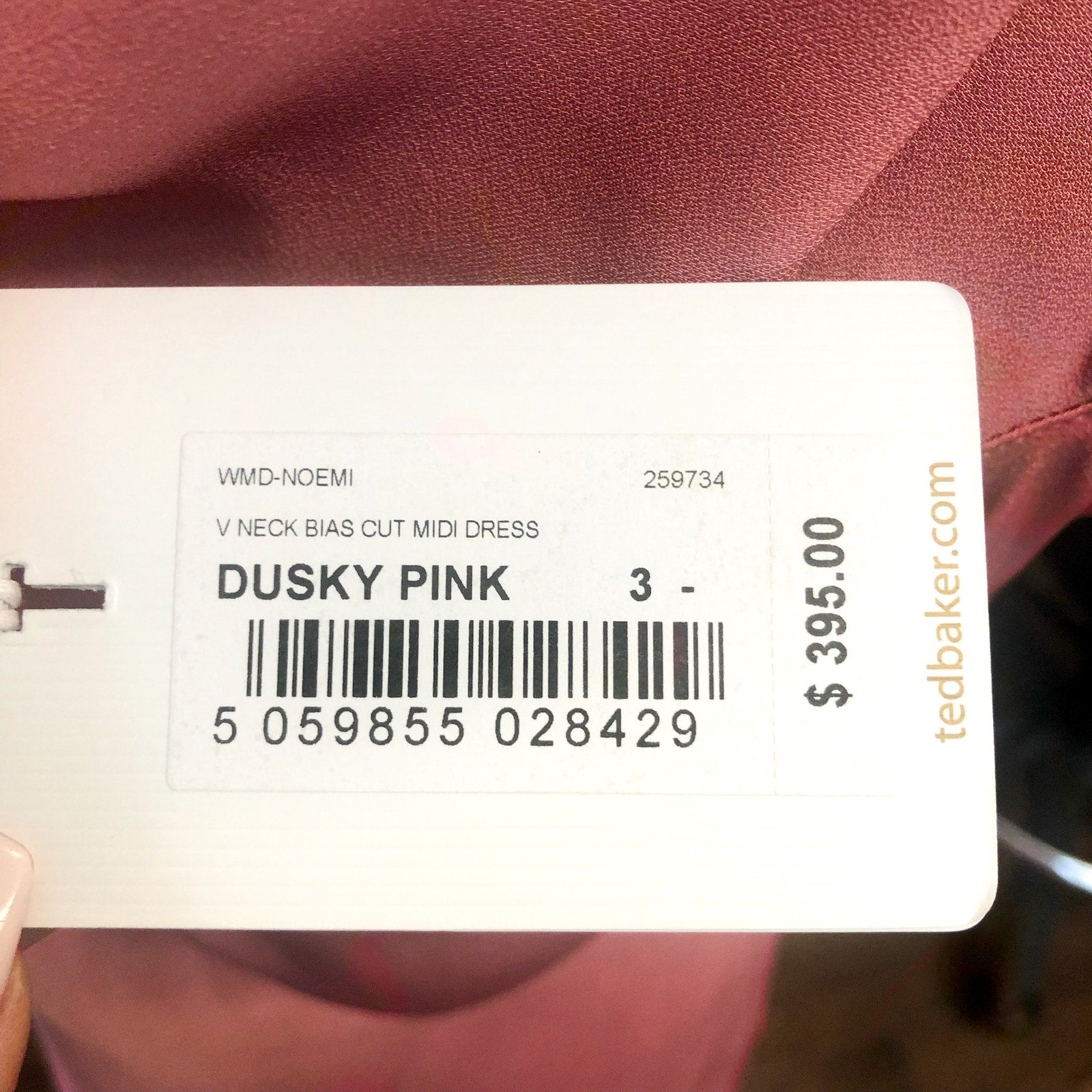 TED BAKER Women's Noemi Midi Dress Size 3 US 8 Dusky Pink V-Neck Bias Cut NWT