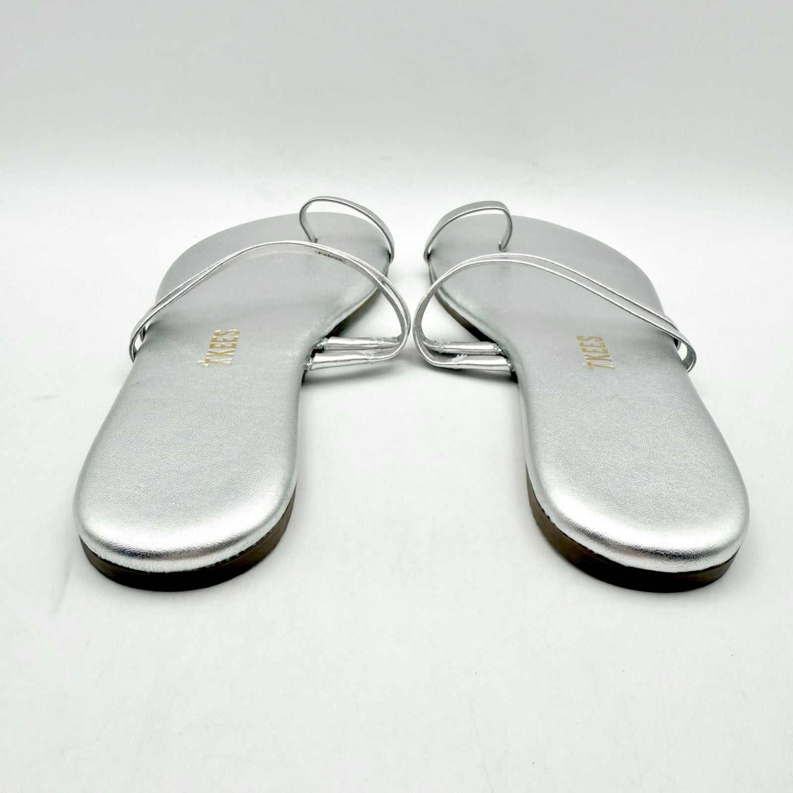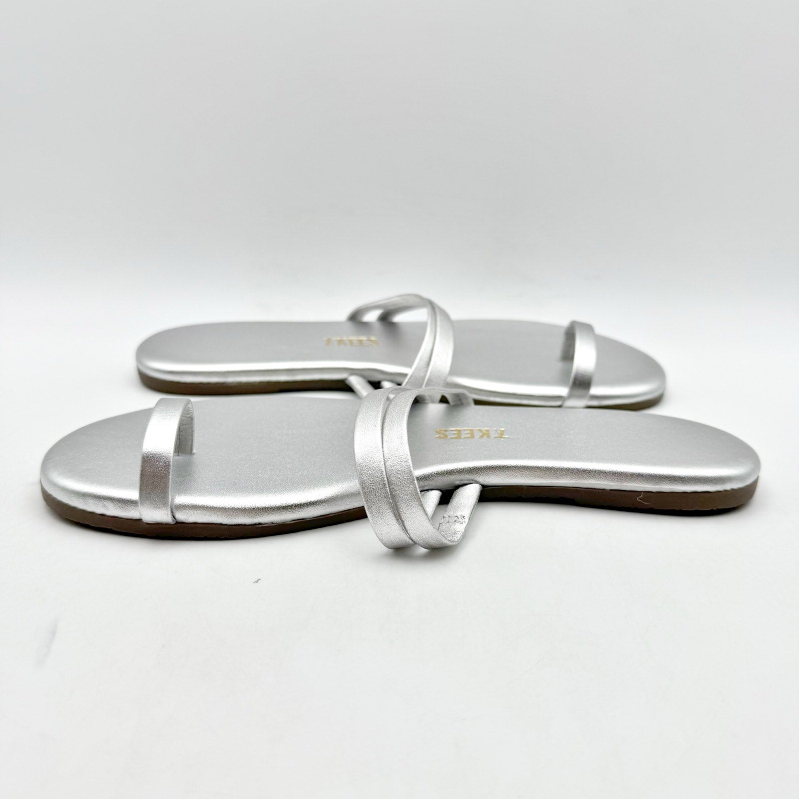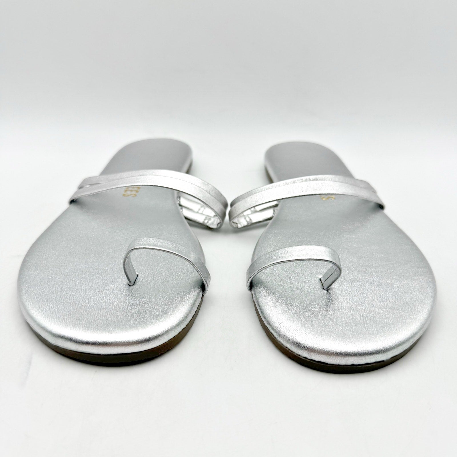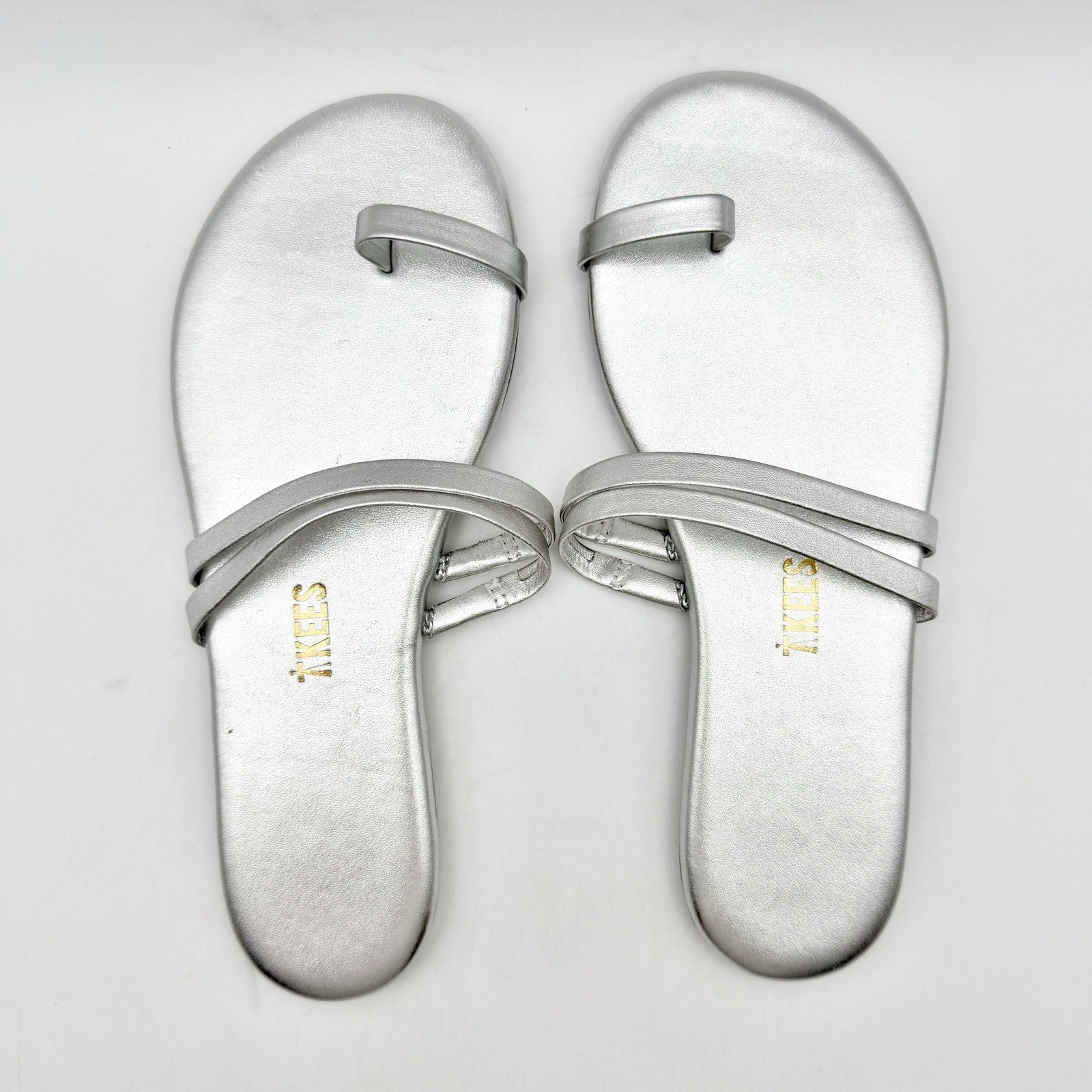 TKEES Womens Leah Flat Sandals US 5 EU 36 Silver Slip On NWOB