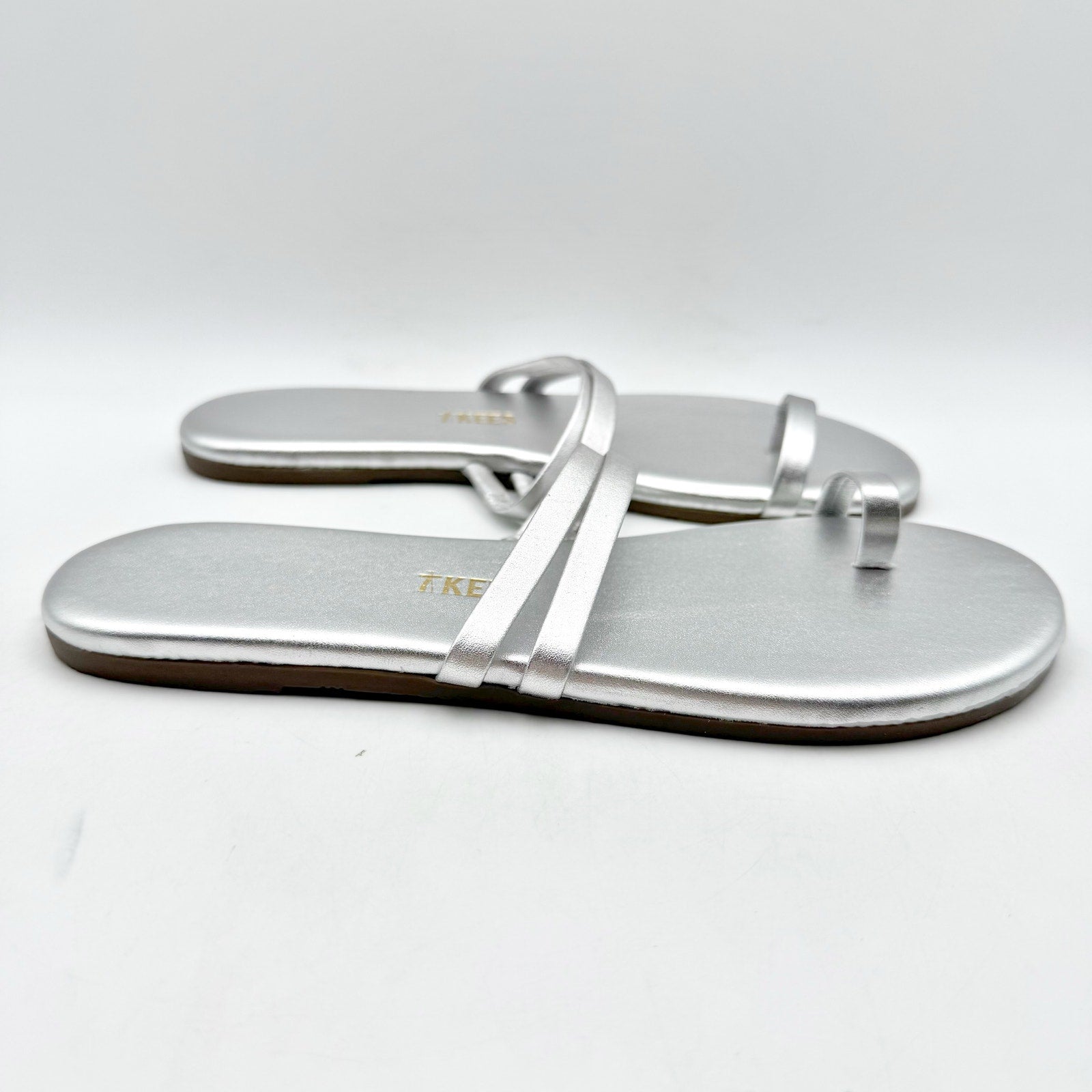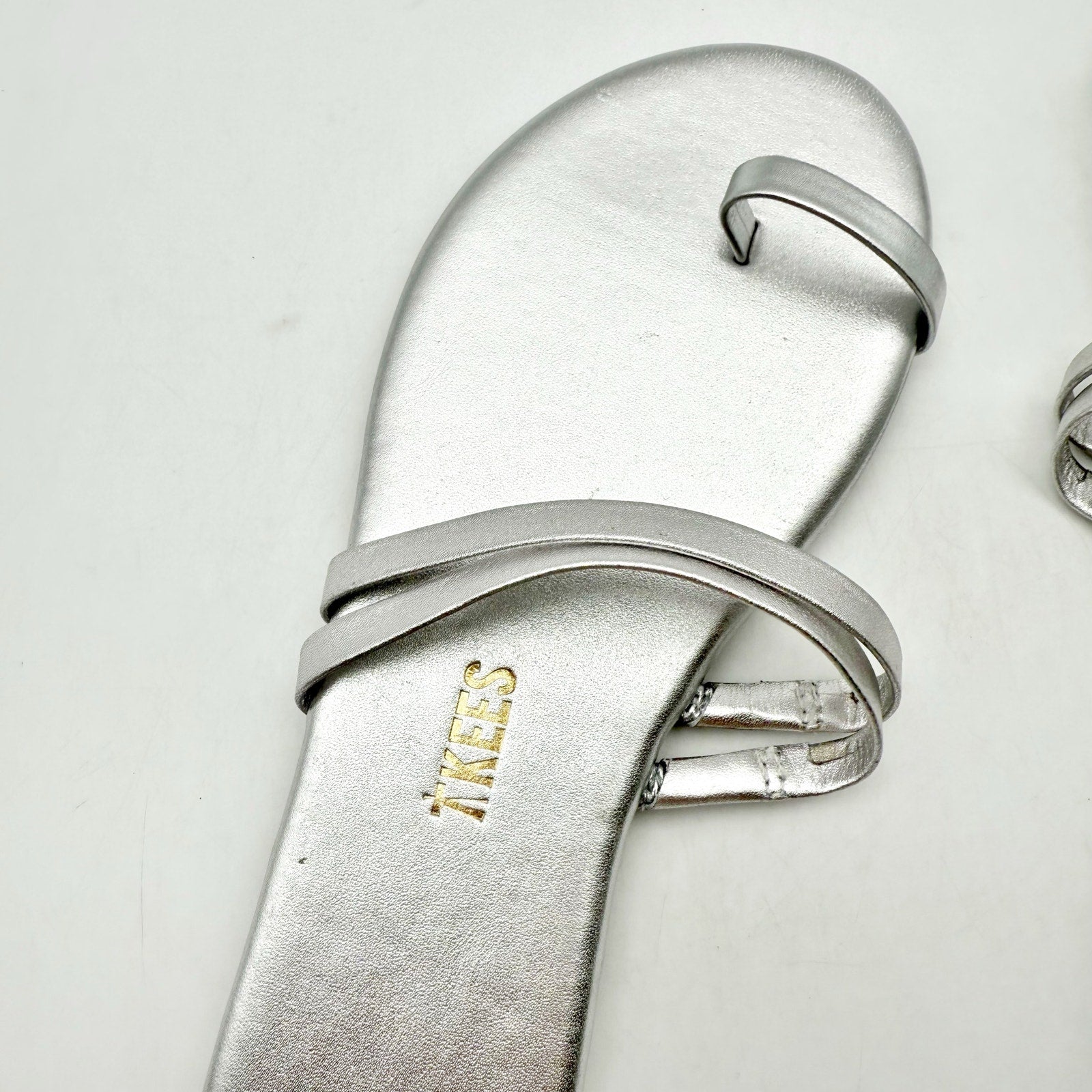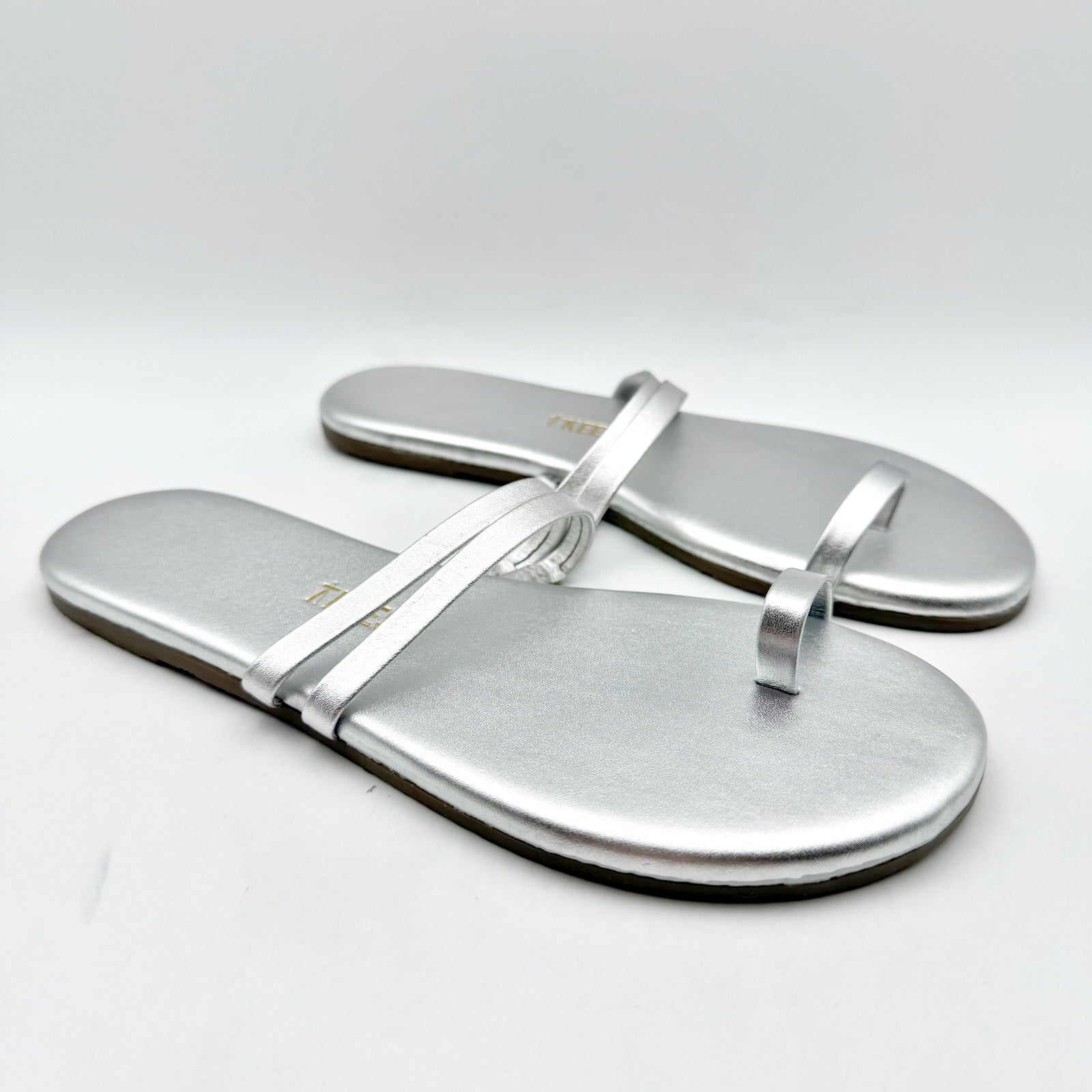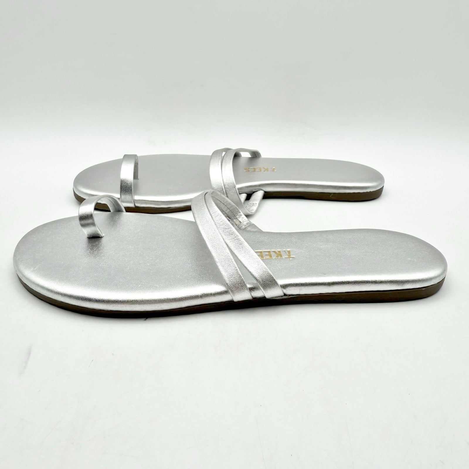 TKEES Womens Leah Flat Sandals US 5 EU 36 Silver Slip On NWOB