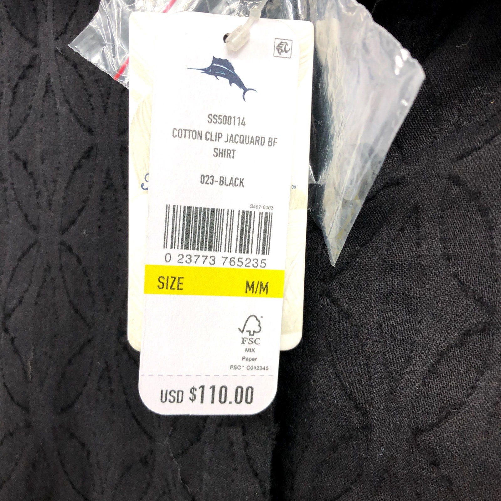 TOMMY BAHAMA Boyfriend Shirt Swim Cover Up Medium Black Cotton Clip Jacquard NWT