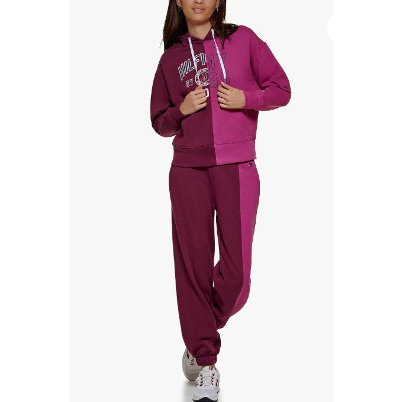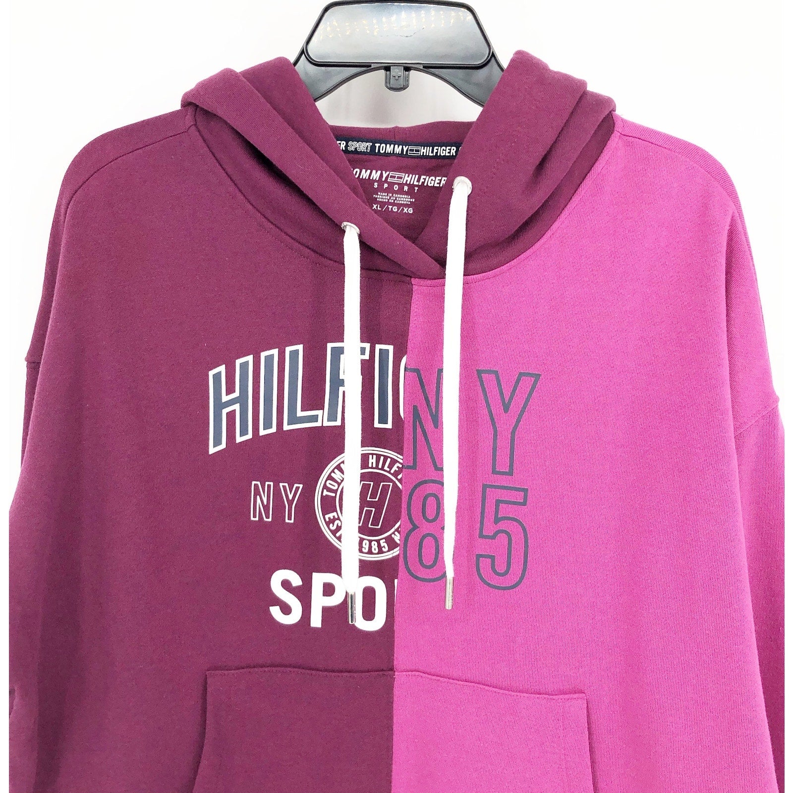 TOMMY HILFIGER SPORT Women's Colorblock Split Logo Hoodie XL Purple Crewneck NWT