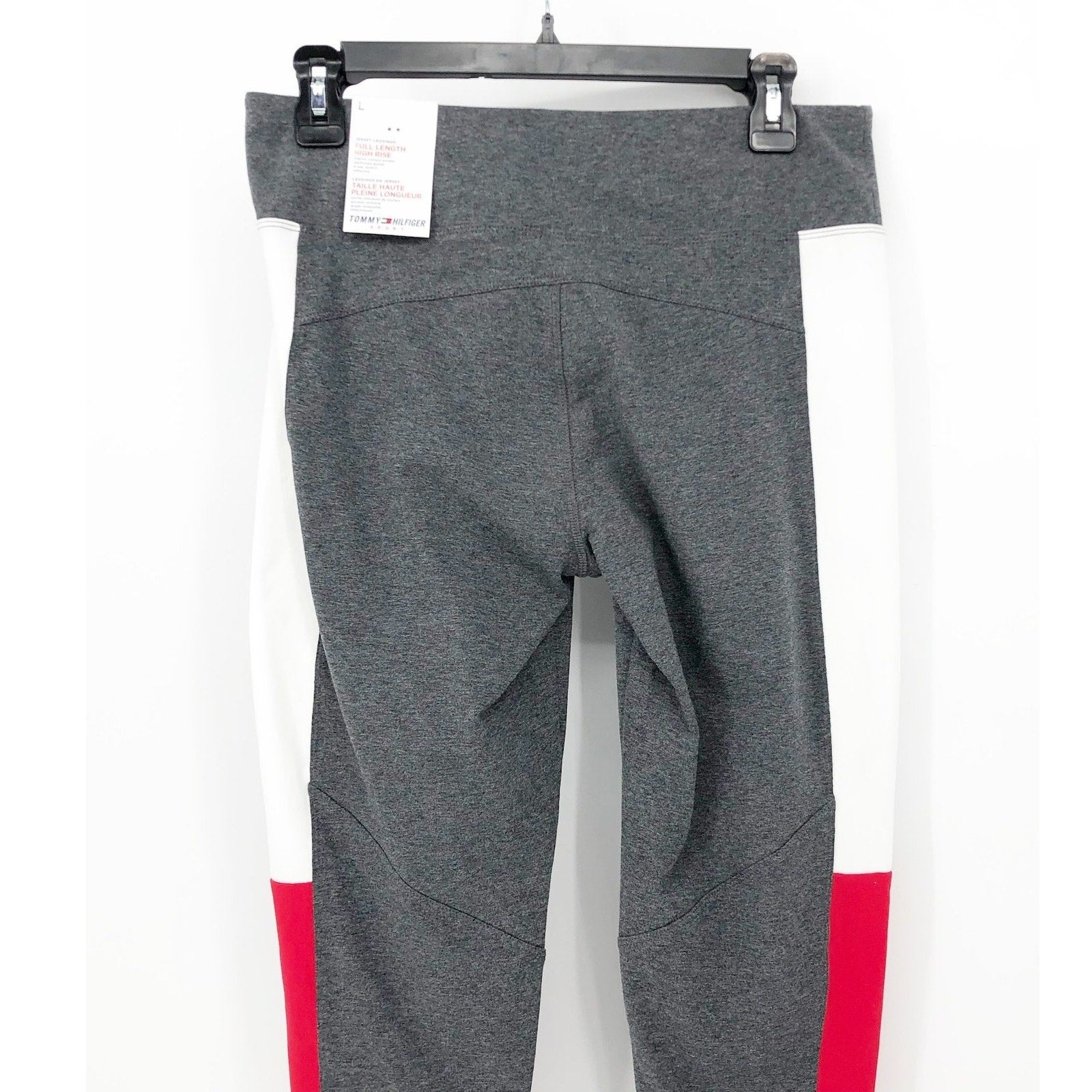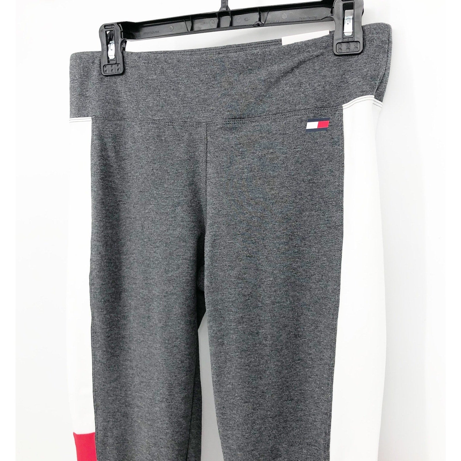 TOMMY HILFIGER SPORT Women's Performance Leggings Large Gray Flag Blocked NWT