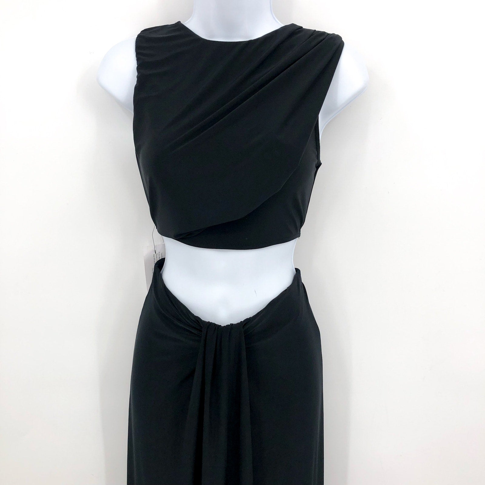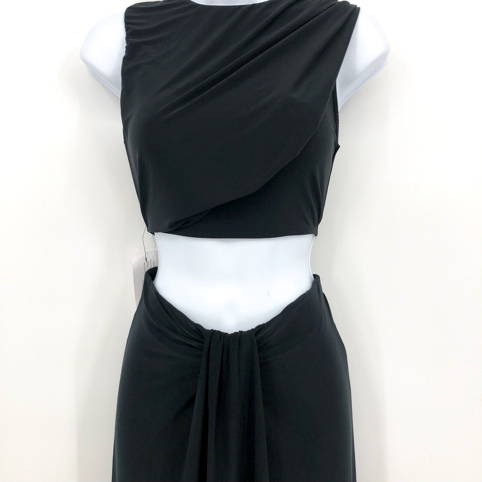 TOPSHOP Women's Jersey Draped Midi Dress Small 4-6 Black Sleeveless Cut Out NWT