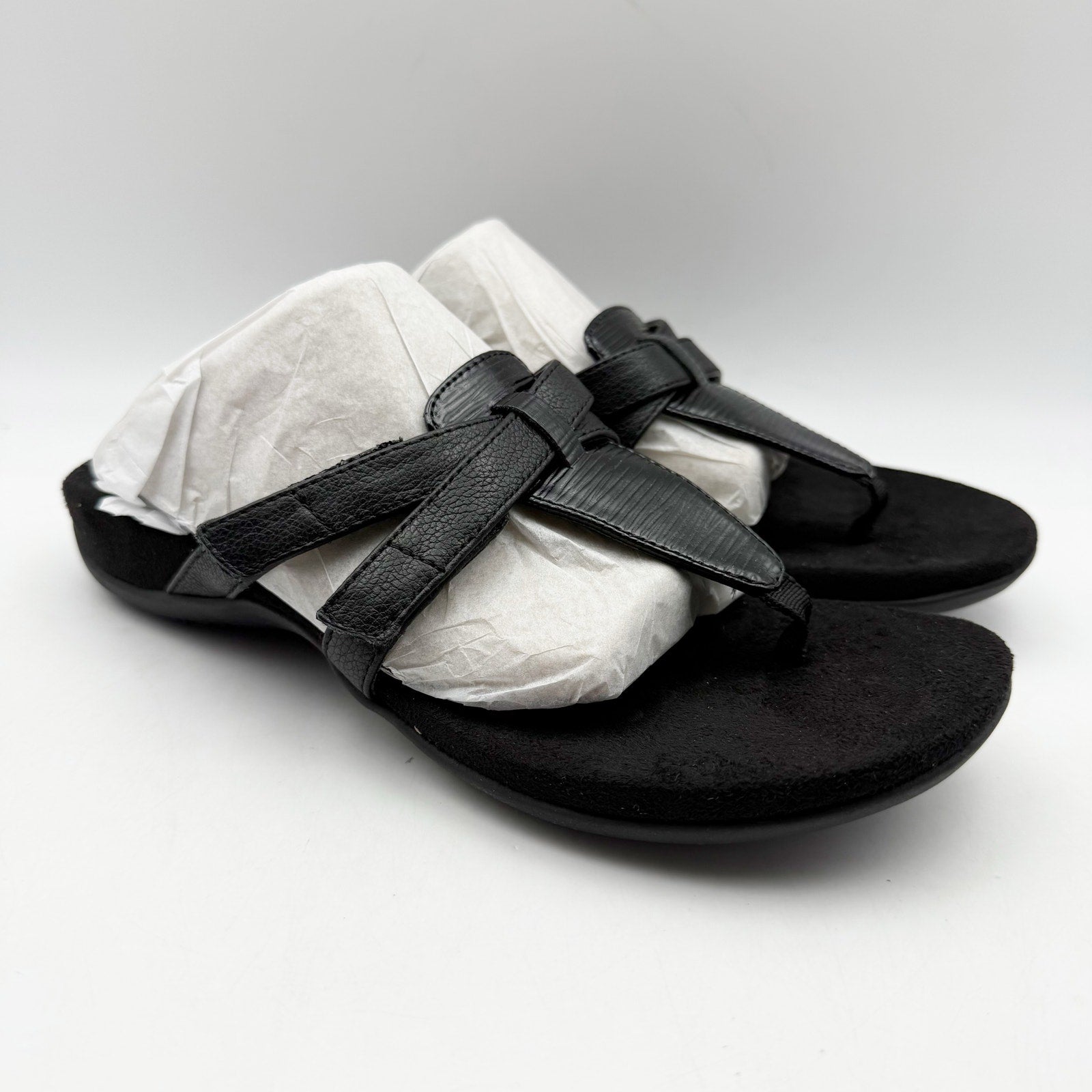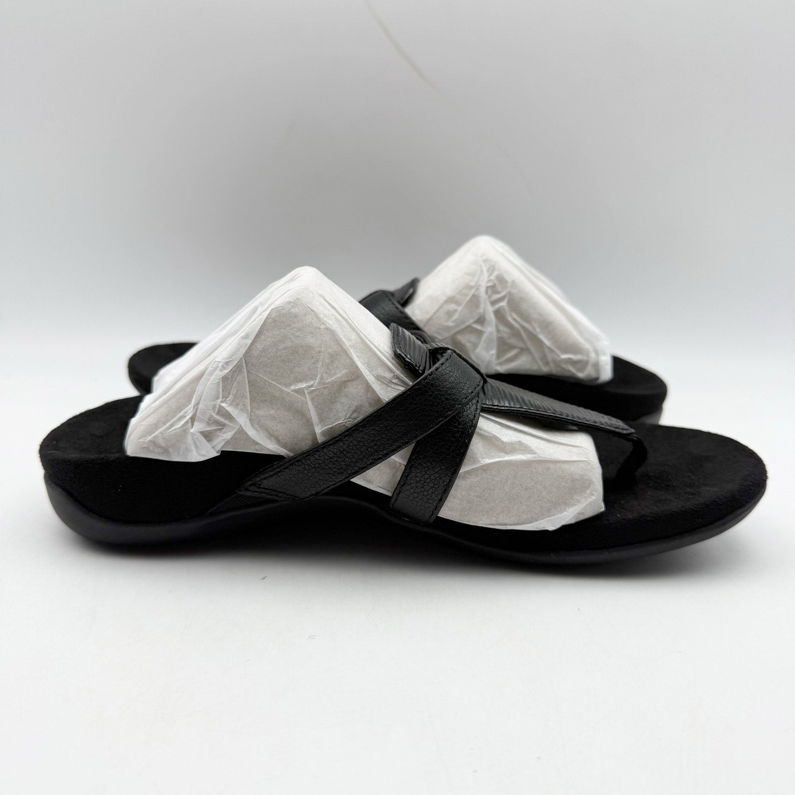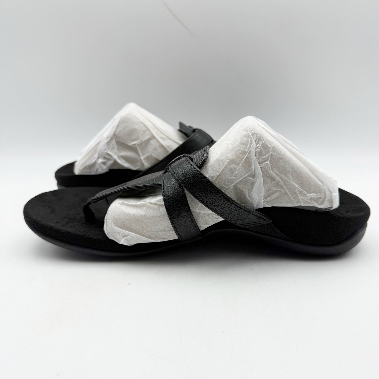 Vionic Womens Karley Thong Sandals US 6 EU 36 Black Leather Slip On NIB