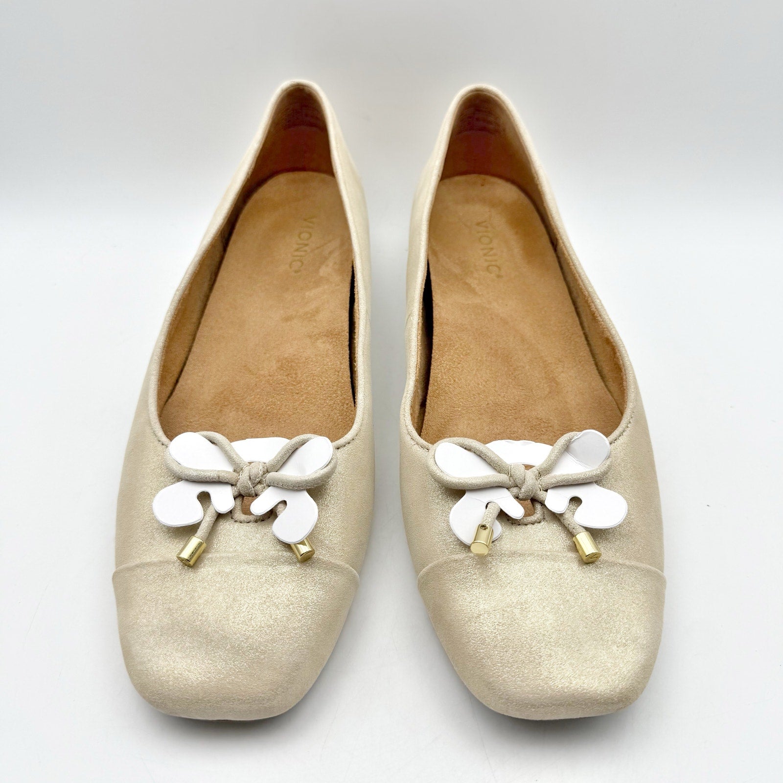 VIONIC Womens Klara Flats US 13 M EU 45 Gold Metal Leather