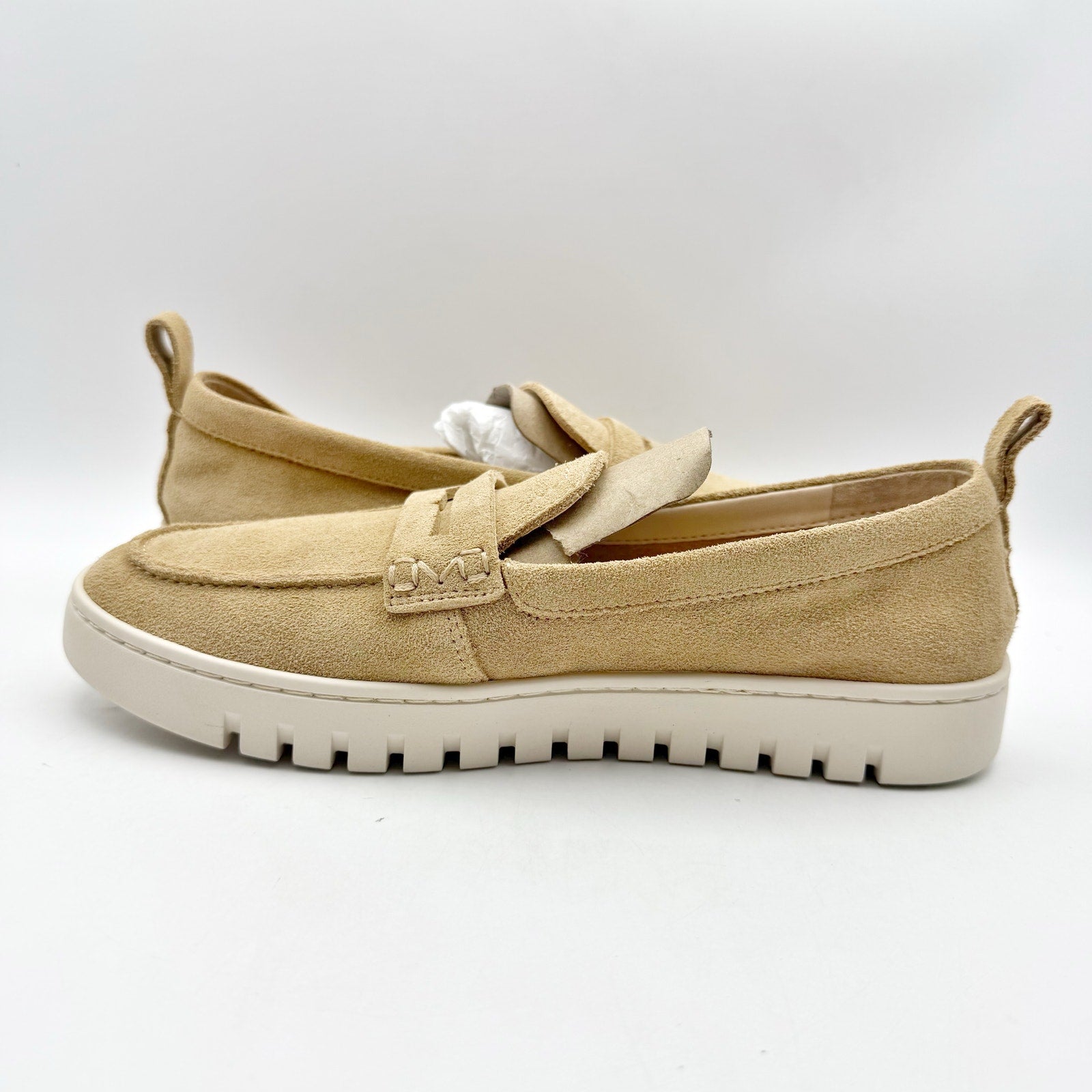 VIONIC Womens Uptown Loafers US 7 Wide Sand Tan Suede Slip On NIB