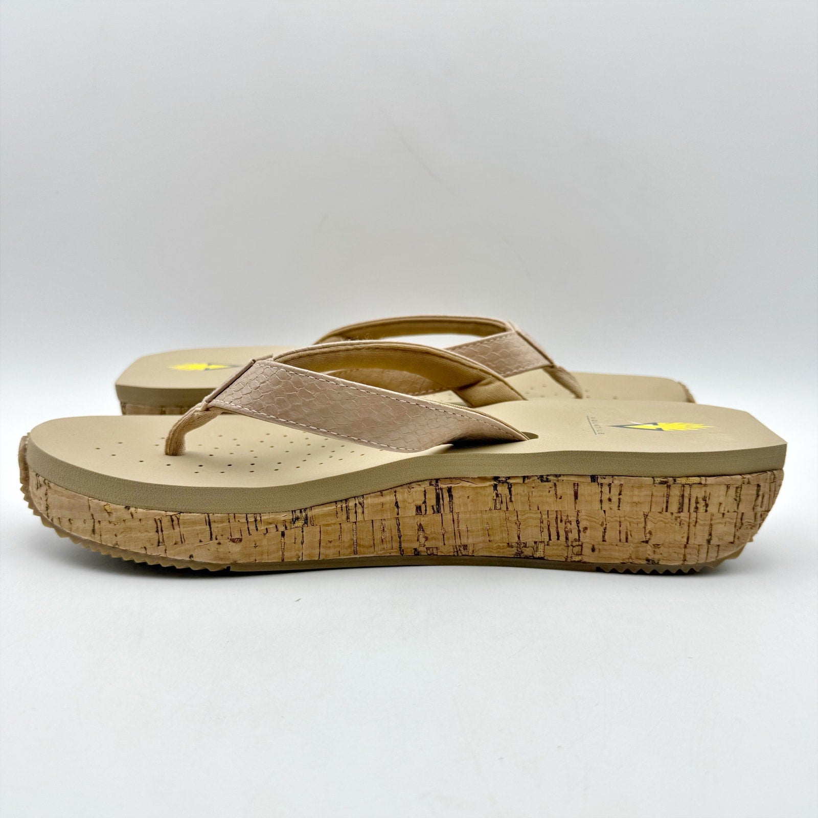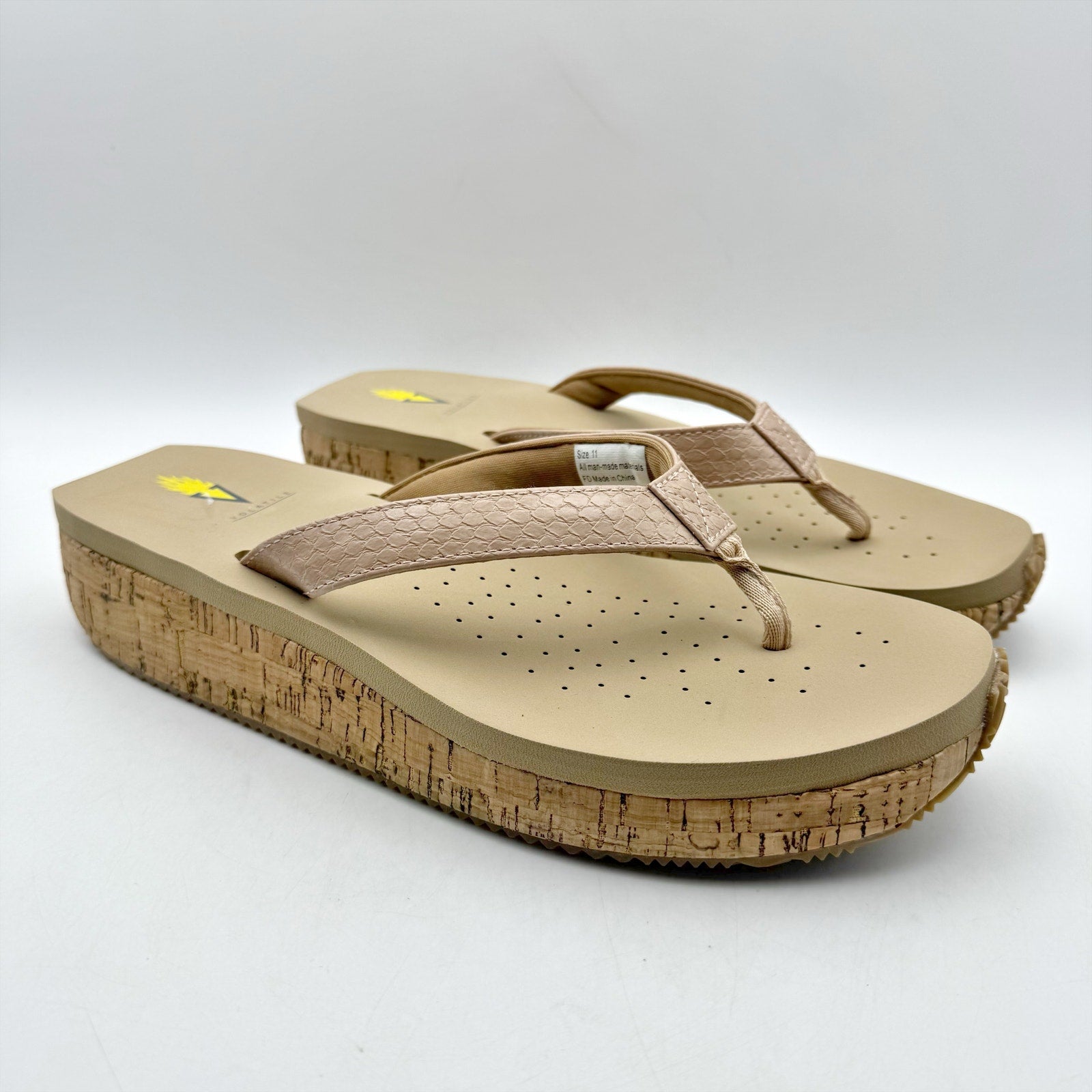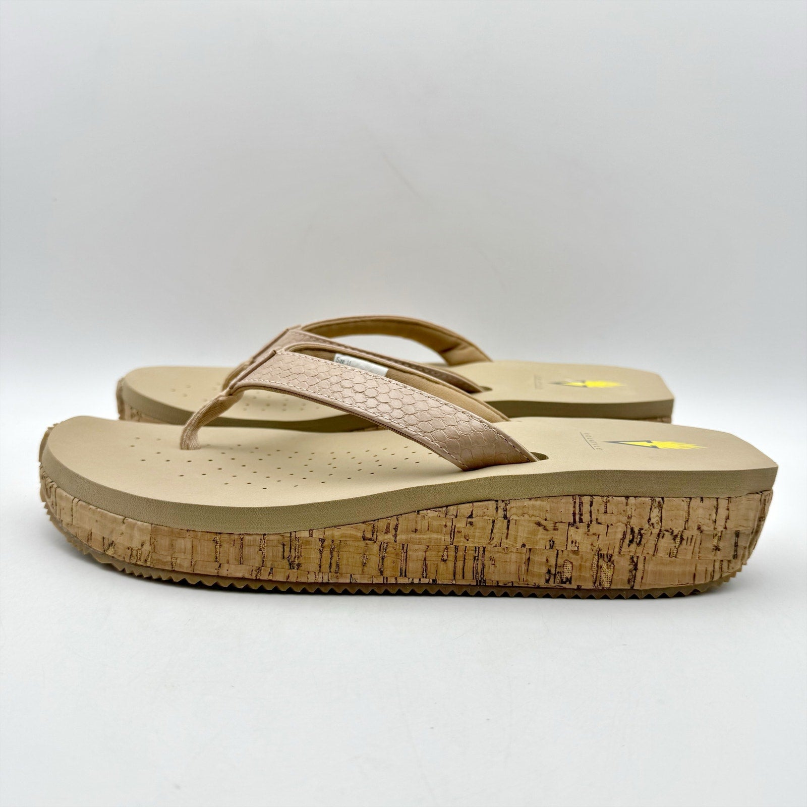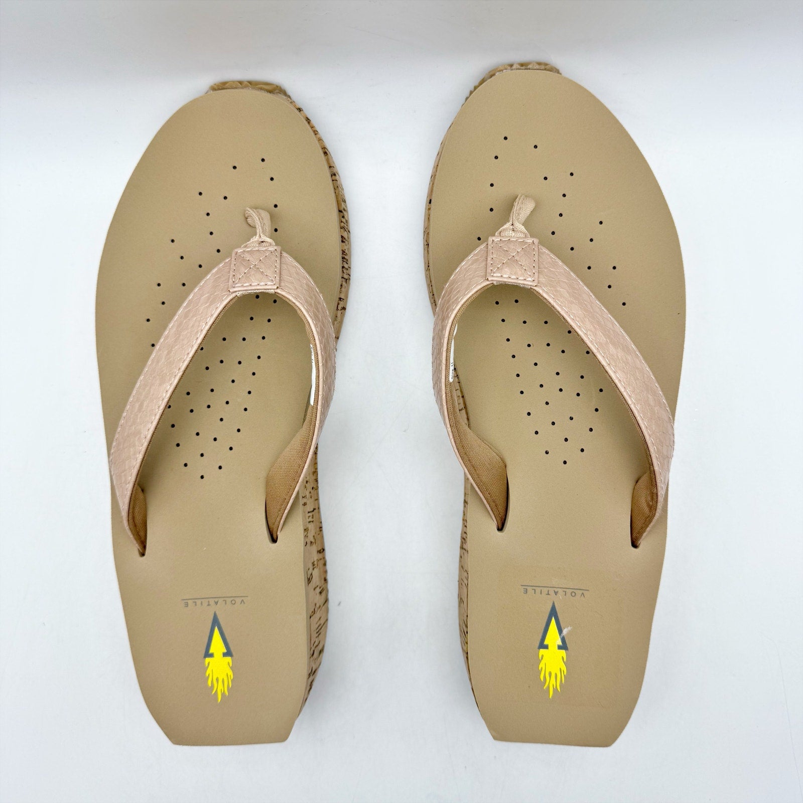 Volatile Womens Neville Wedge Sandal US 11 M Nude Snake Vegan Leather NWOB