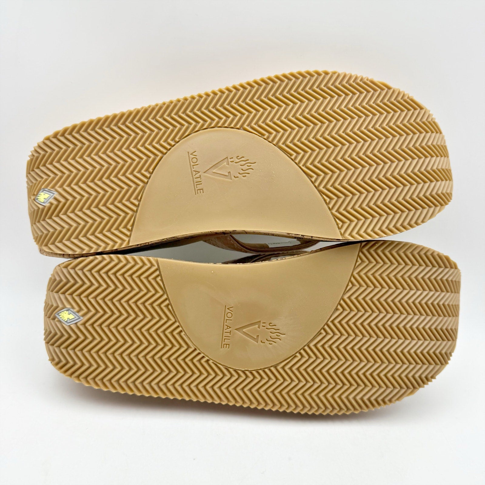 The Neville thong wedge sandal by Volatile is to give a modest lift in height with the comfortable 1 1/2” wedge. They feature Volatile’s signature ultra comfort EVA insole for all day comfort, padded textile lining that rests gently on the skin, and nonskid rubber traction outsoles to keep feet grounded on all surfaces.