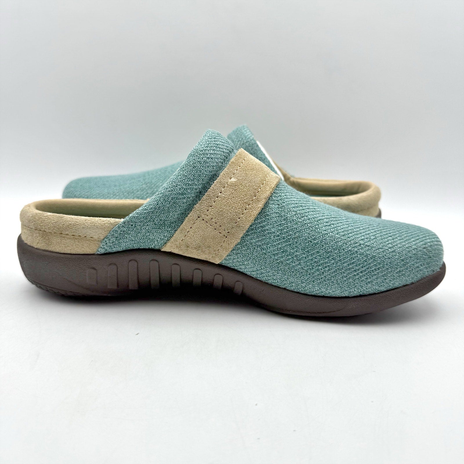 Combining textured canvas and soft genuine suede, the Aria slip-on is beautifully framed with a little extra collar padding, a wide functional strap, and a slightly raised heel zone to cradle the foot step after step.
