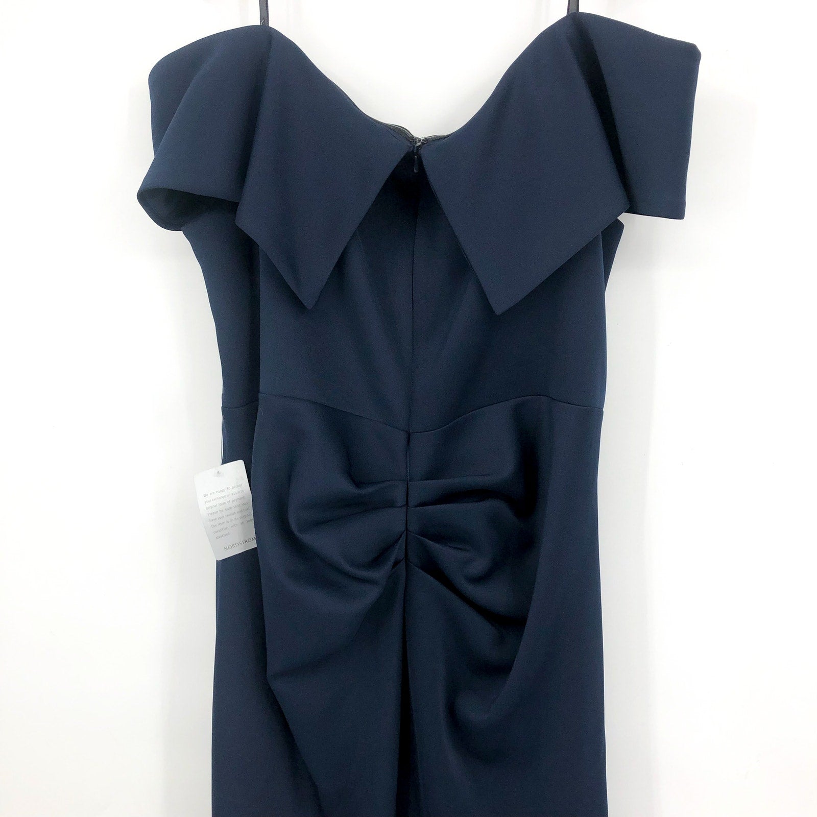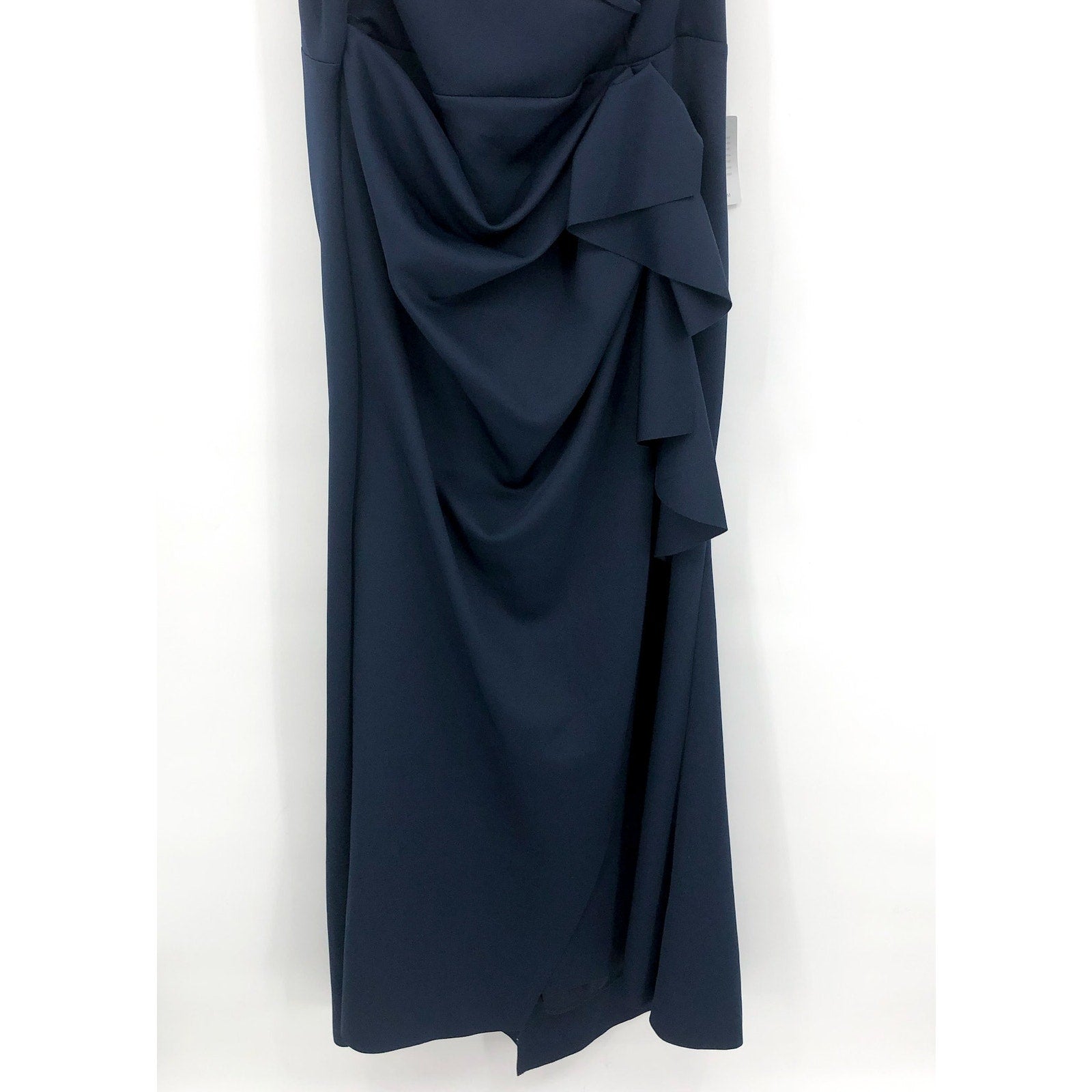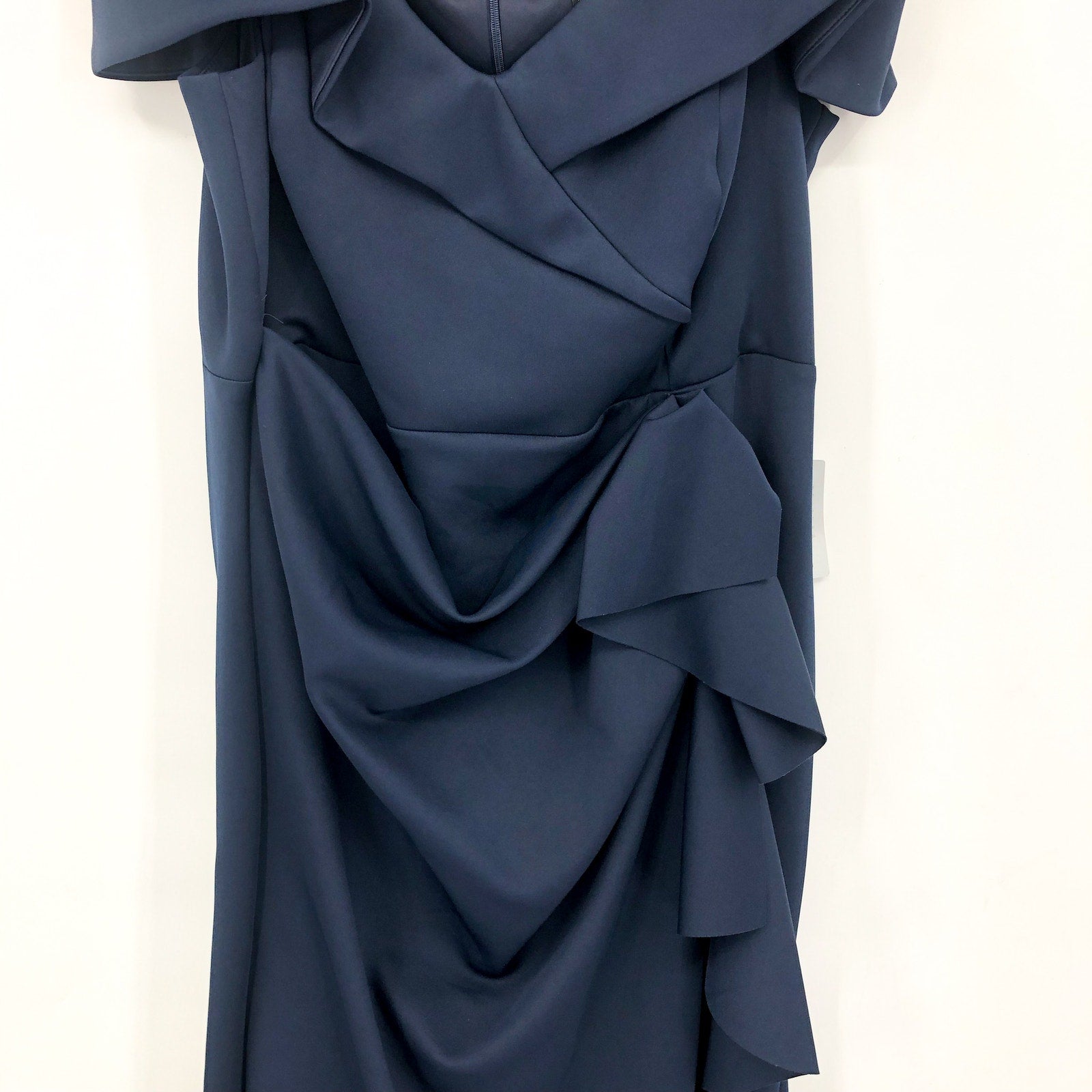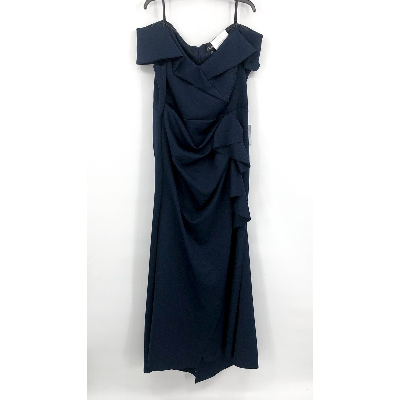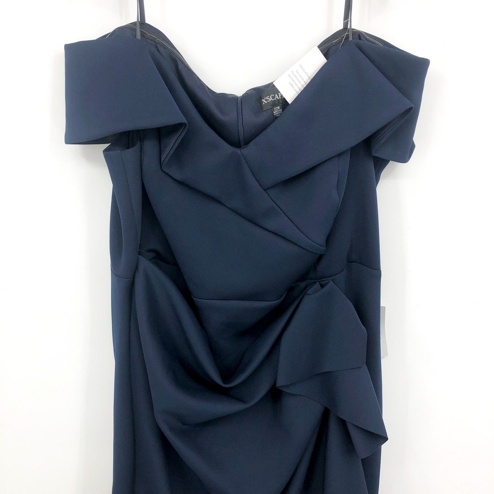 XSCAPE Patti Long Off the Shoulder Scuba Crepe Dress 22W Blue Midnight NWT
