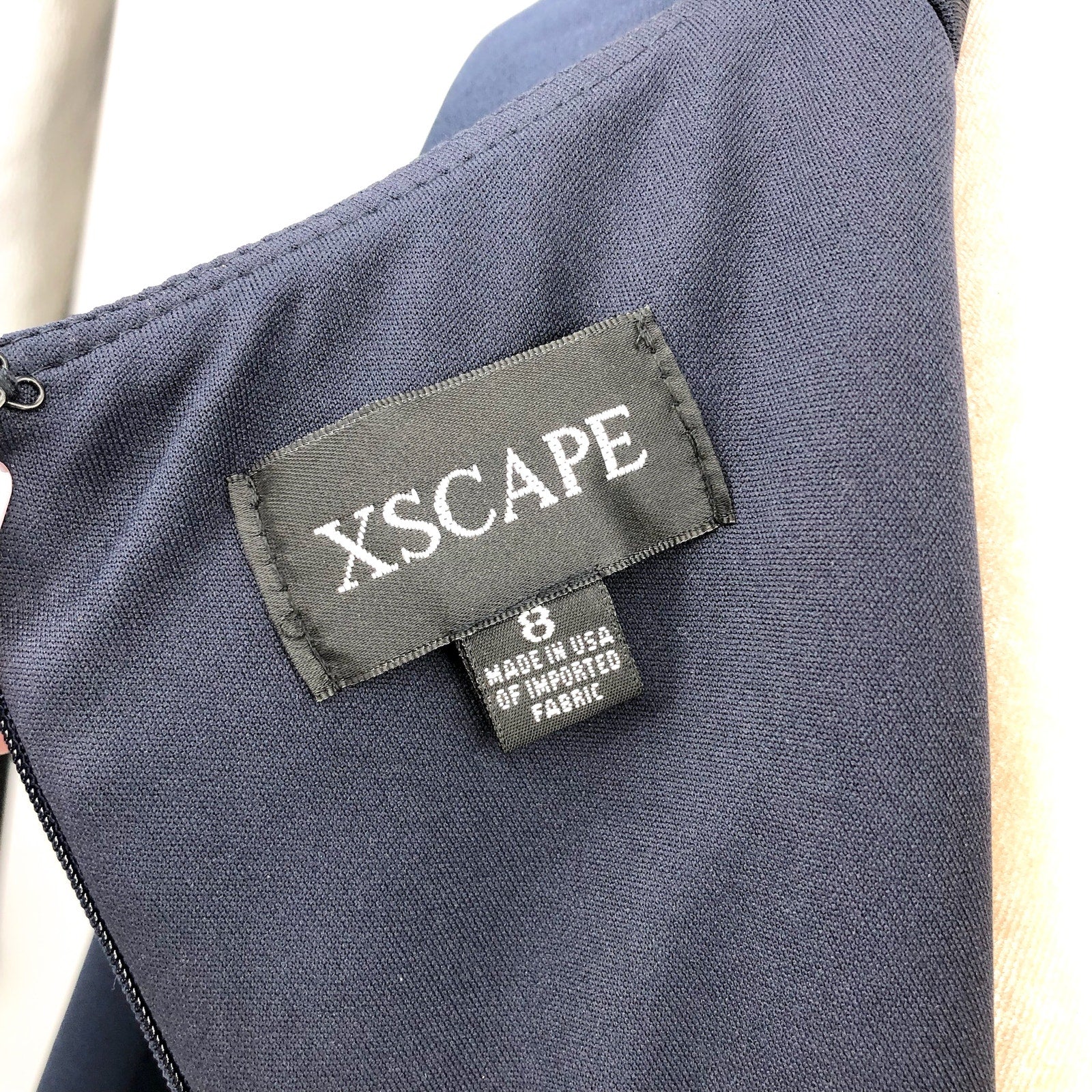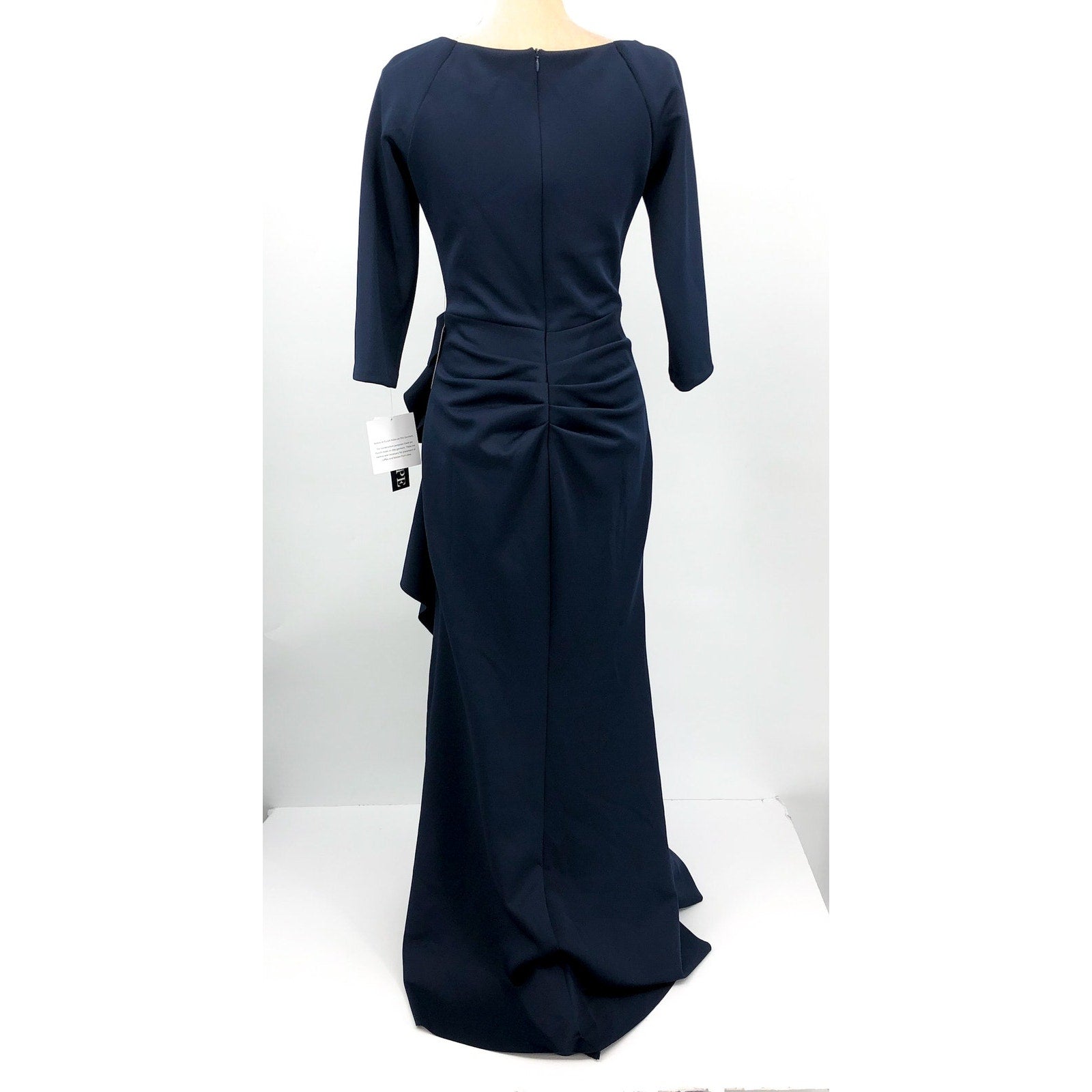 XSCAPE Women's Ruched Scuba Ruffle Gown Size 8 Midnight Blue 3/4 Sleeves NWT